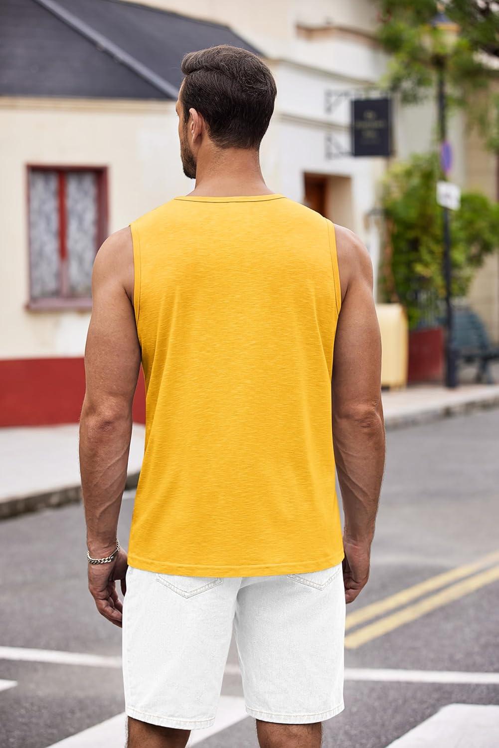 COOFANDY Men’s 3 Pack Workout Tank Tops Gym Sleeveless Shirts V Neck Bodybuilding Muscle Tee Shirt(Yellowblue)