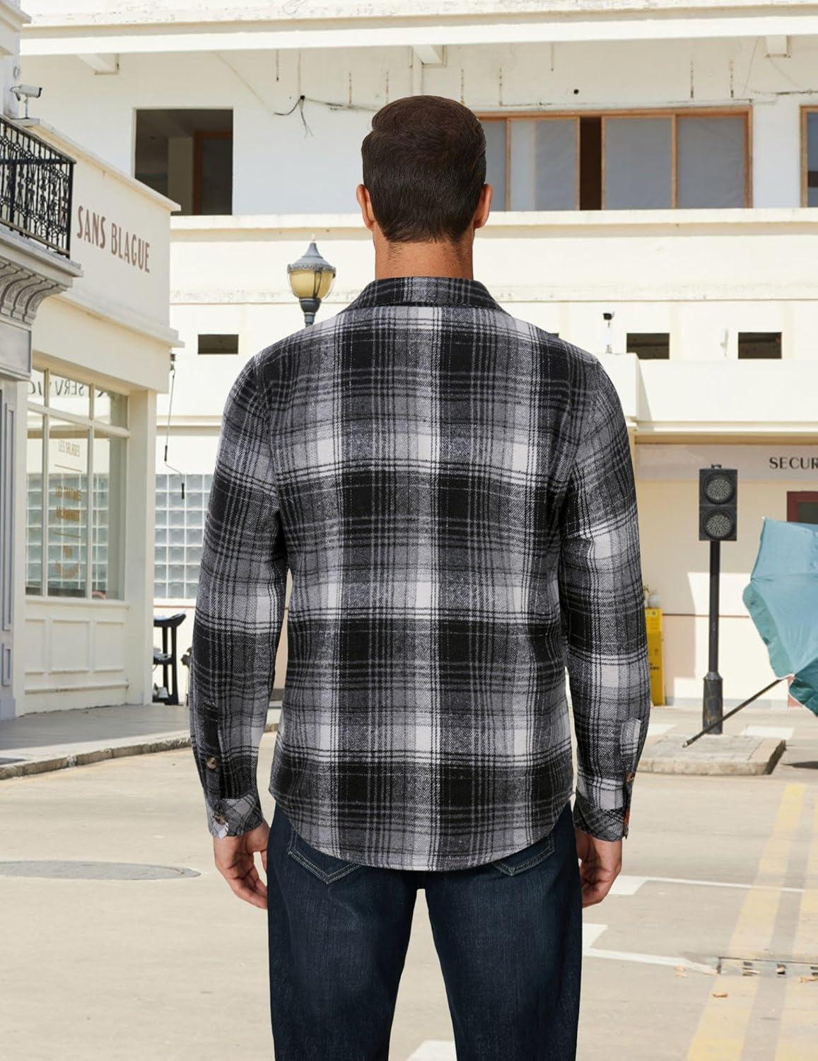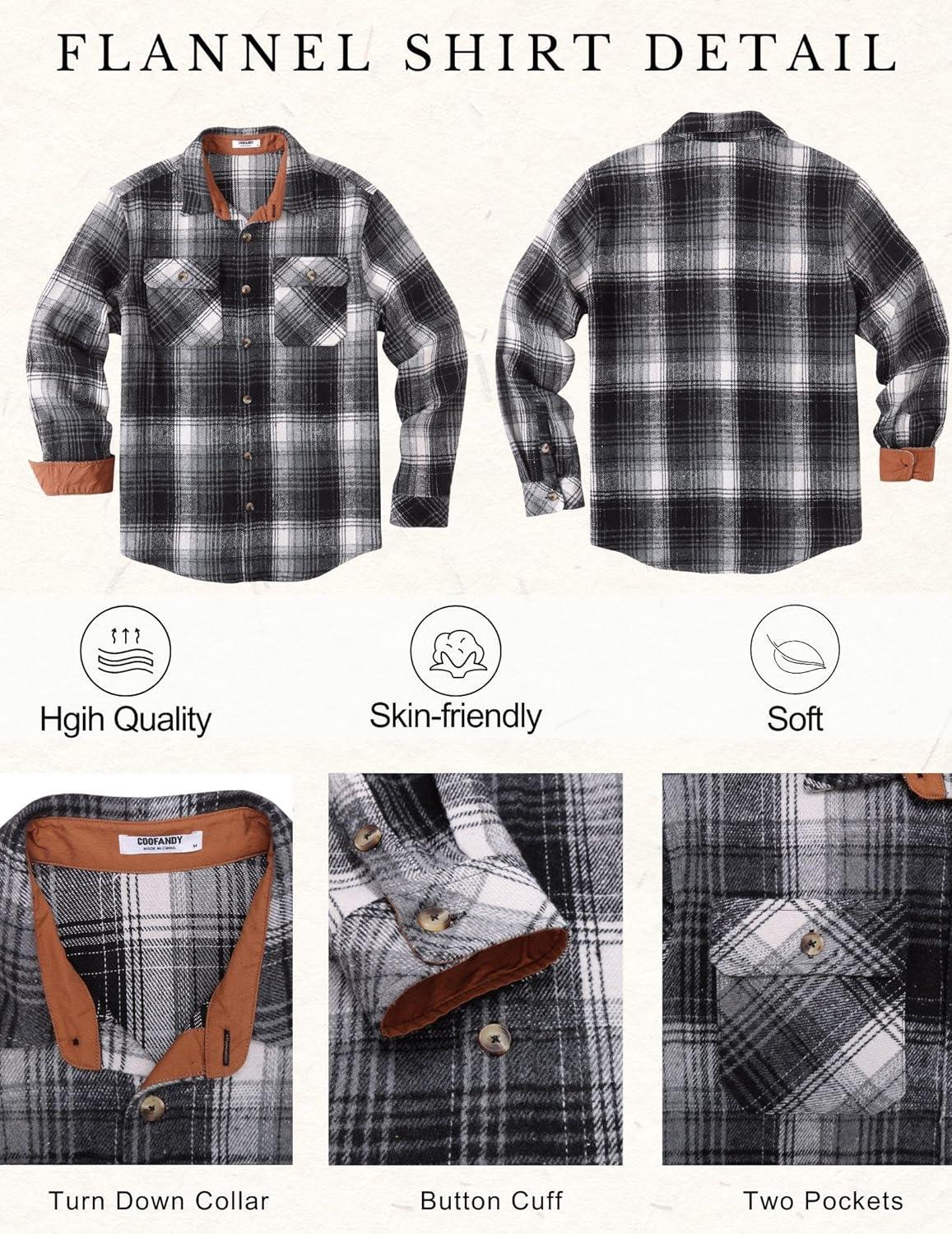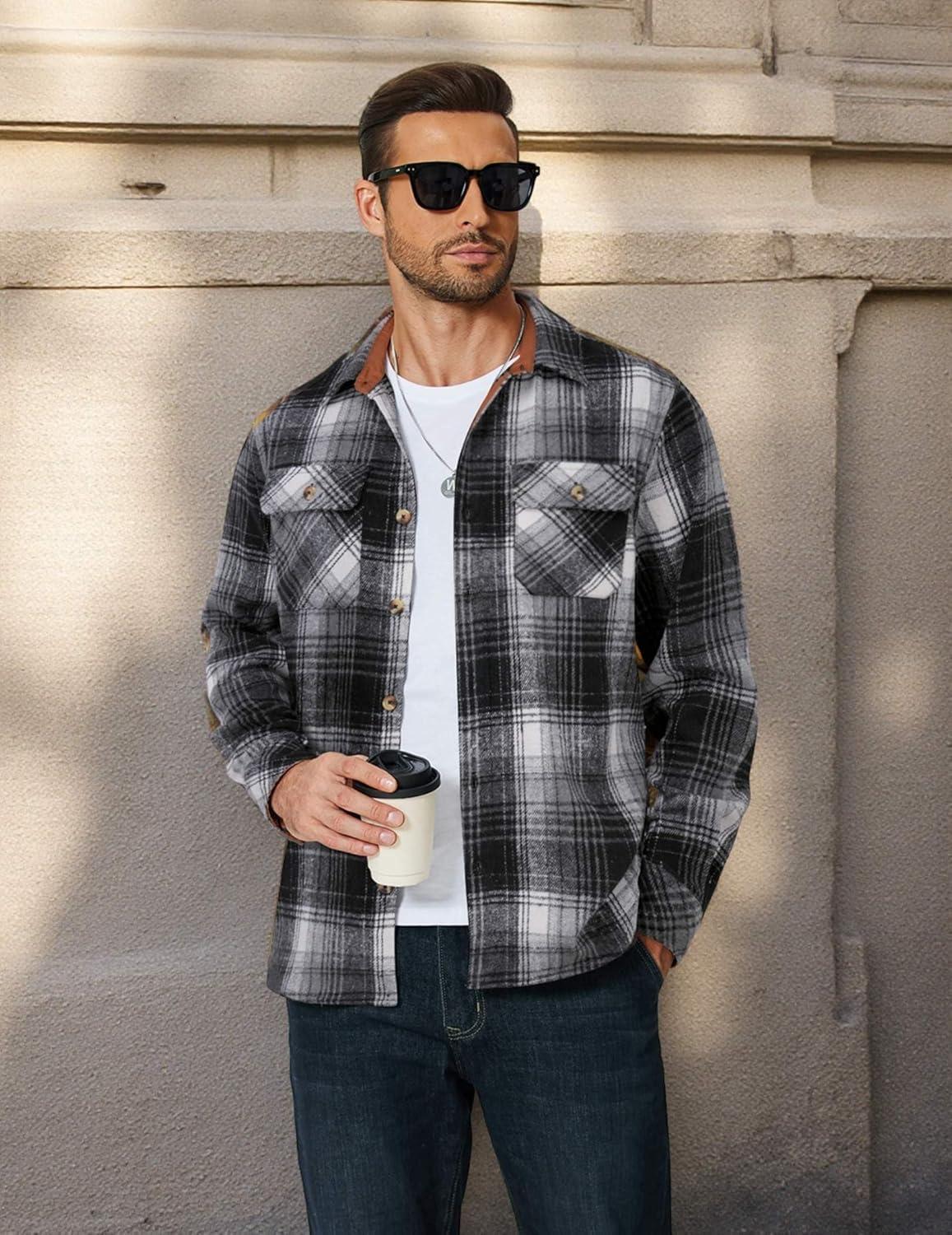 COOFANDY Men’s Long Sleeve Flannel Shirts Jacket Fashion Plaid Jackets Casual Button Down Shirt with Pockets(Black)