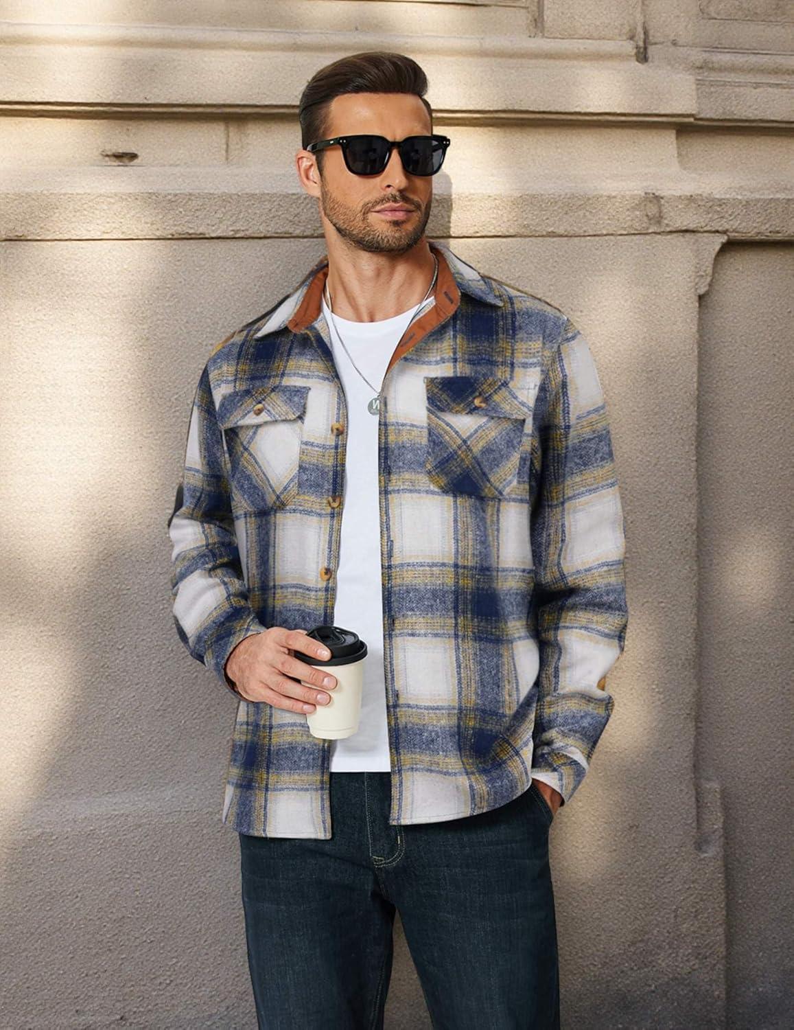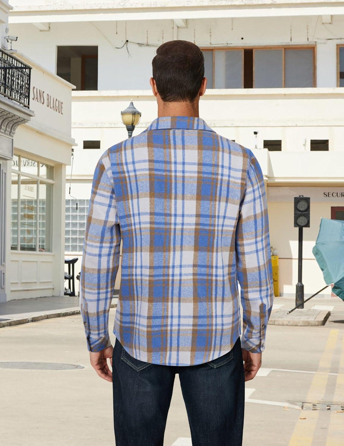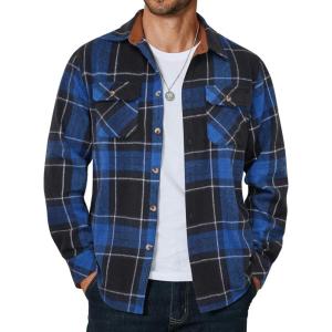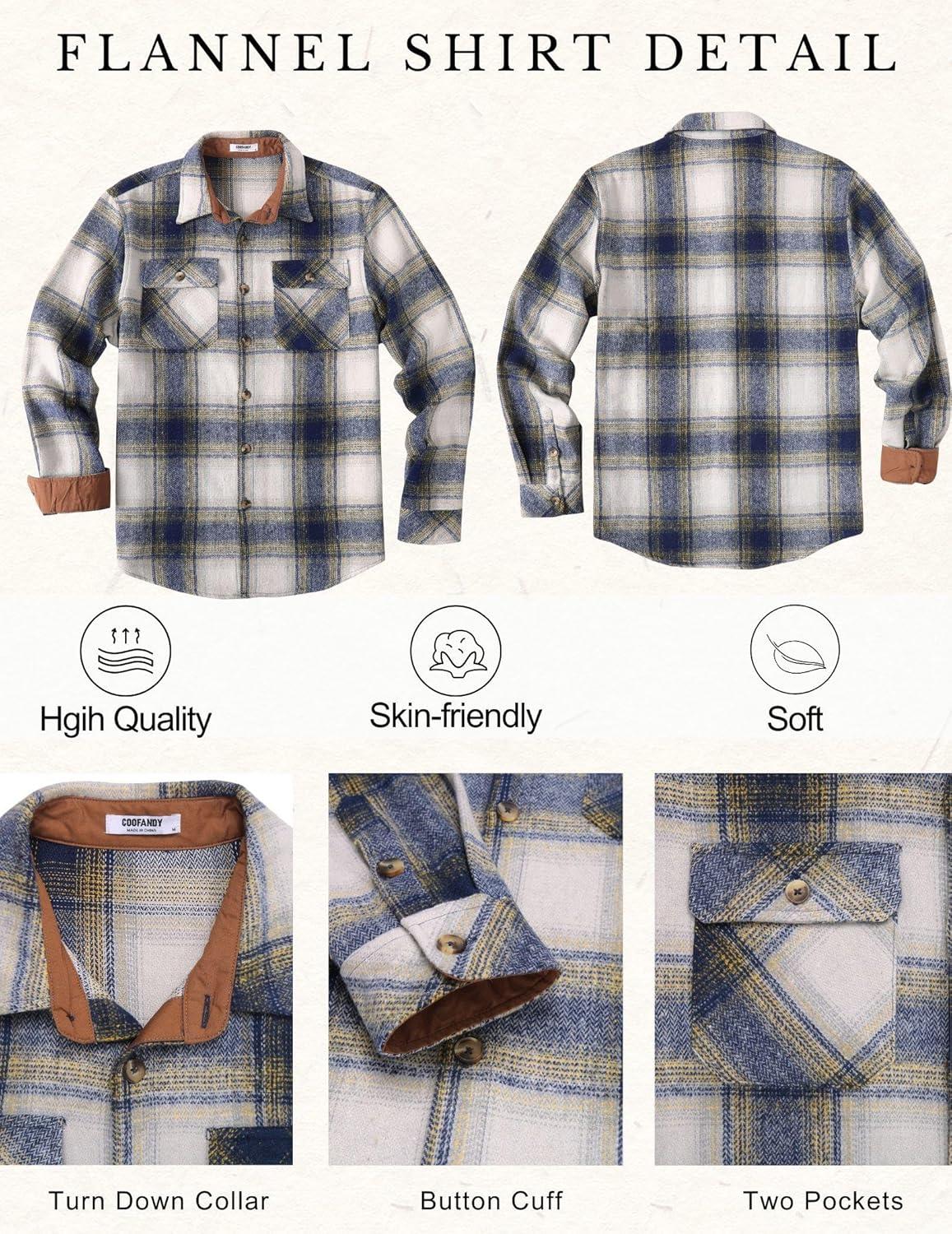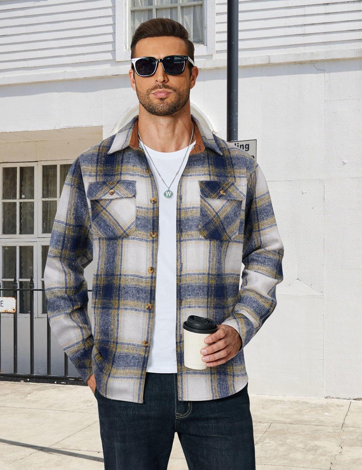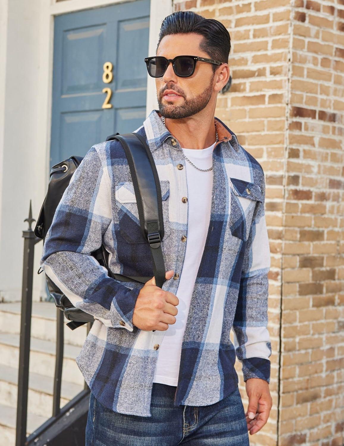 COOFANDY Men’s Long Sleeve Flannel Shirts Jacket Fashion Plaid Jackets Casual Button Down Shirt with Pockets(Blue)