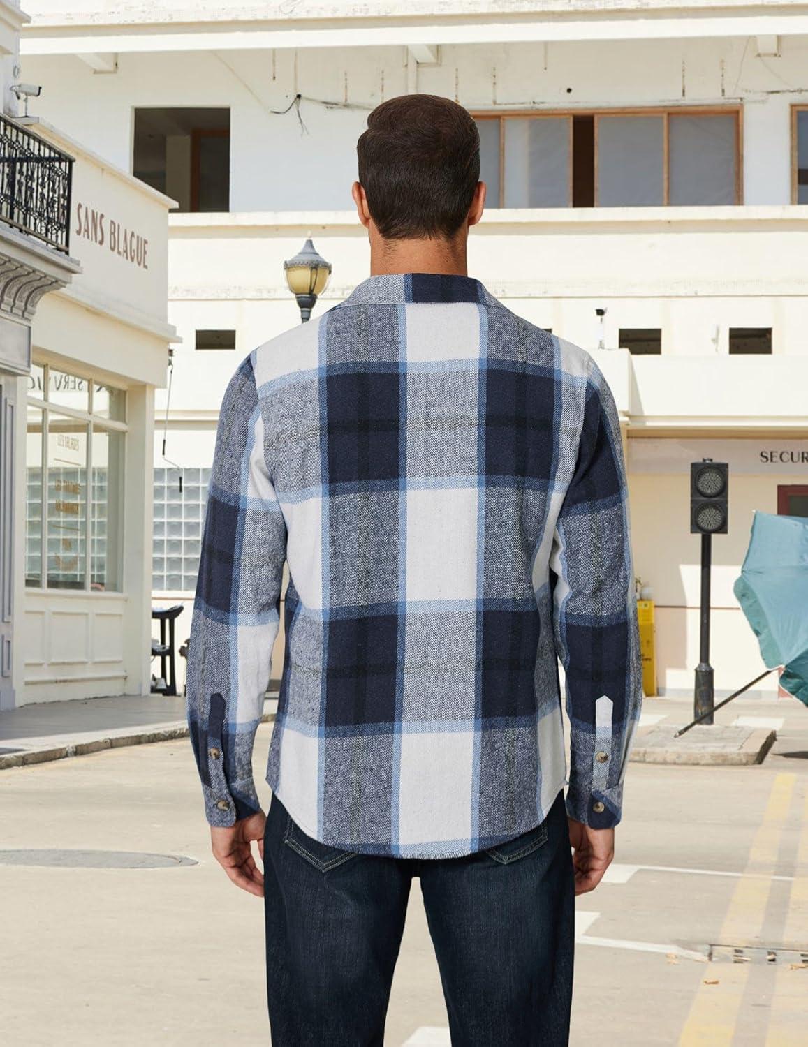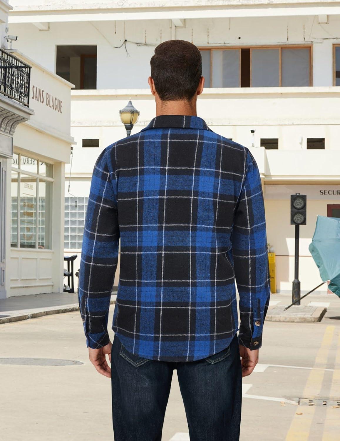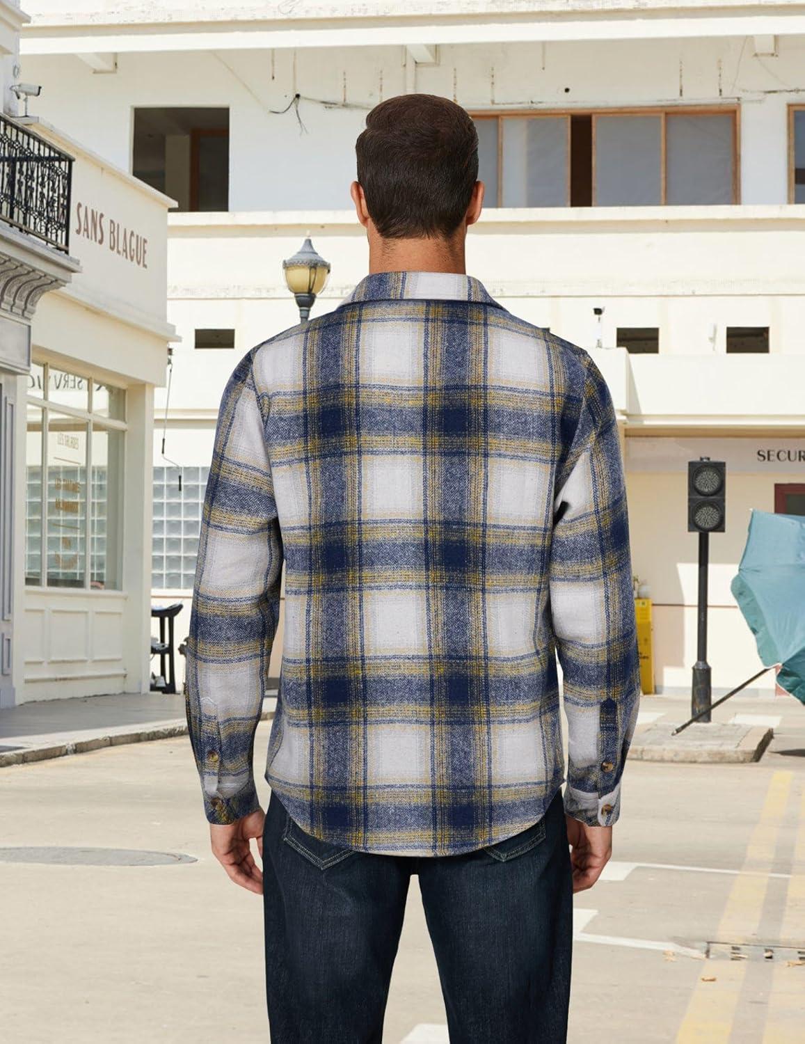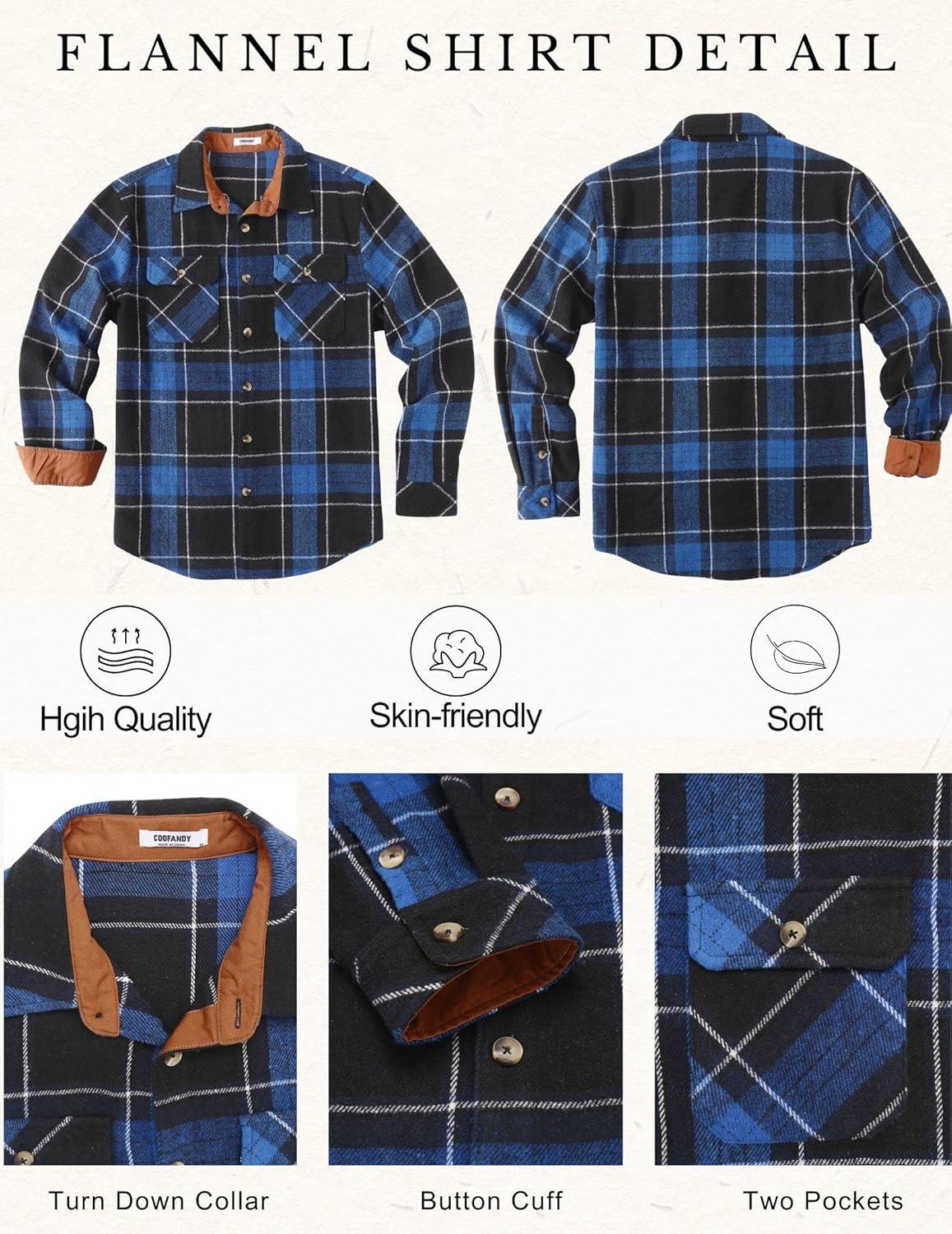 COOFANDY Men’s Long Sleeve Flannel Shirts Jacket Fashion Plaid Jackets Casual Button Down Shirt with Pockets(Blue)