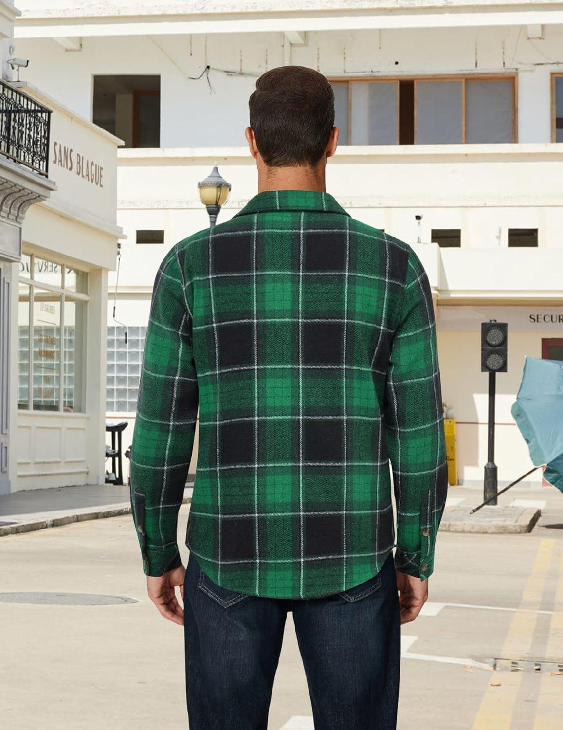 COOFANDY Men’s Long Sleeve Flannel Shirts Jacket Fashion Plaid Jackets Casual Button Down Shirt with Pockets(Green)