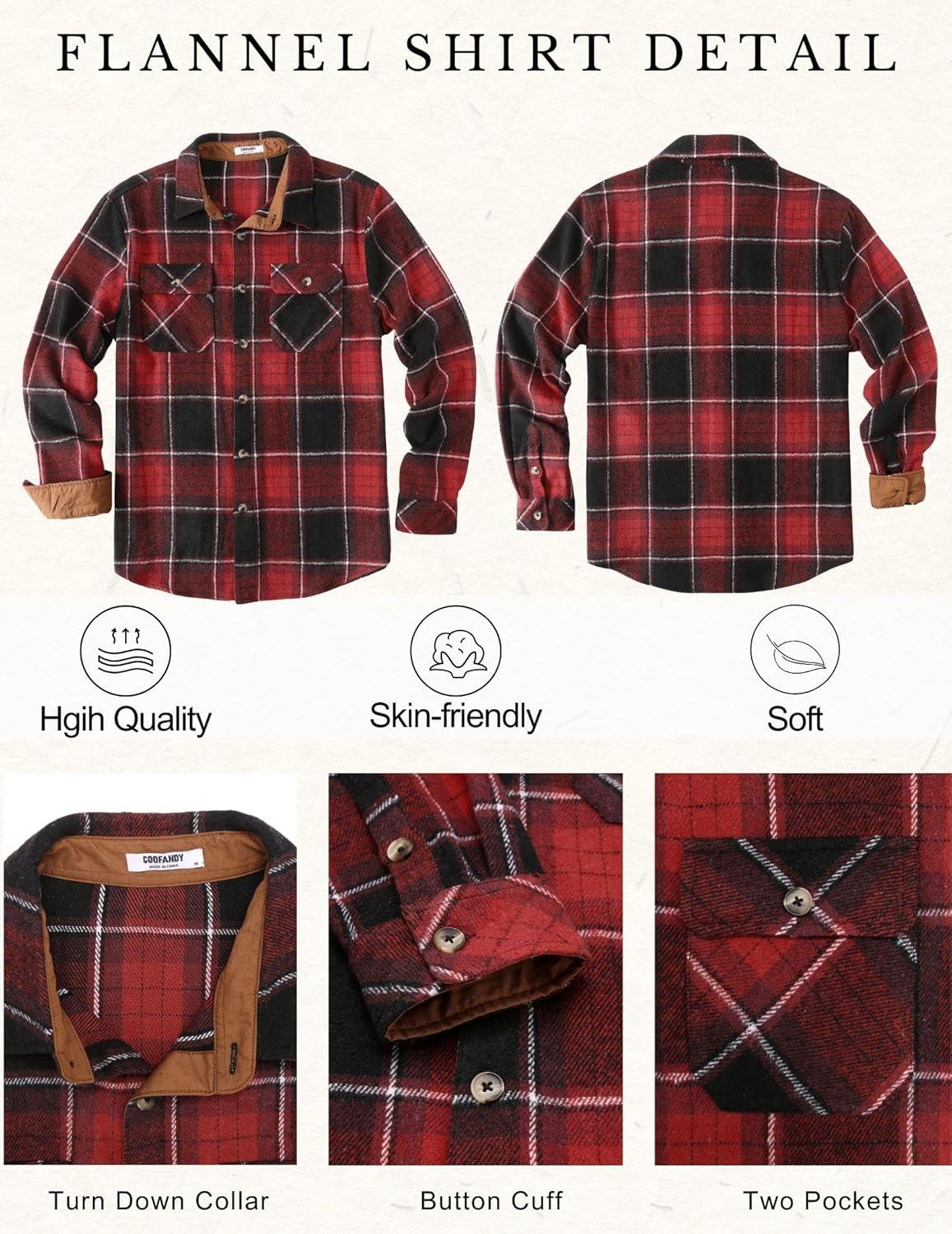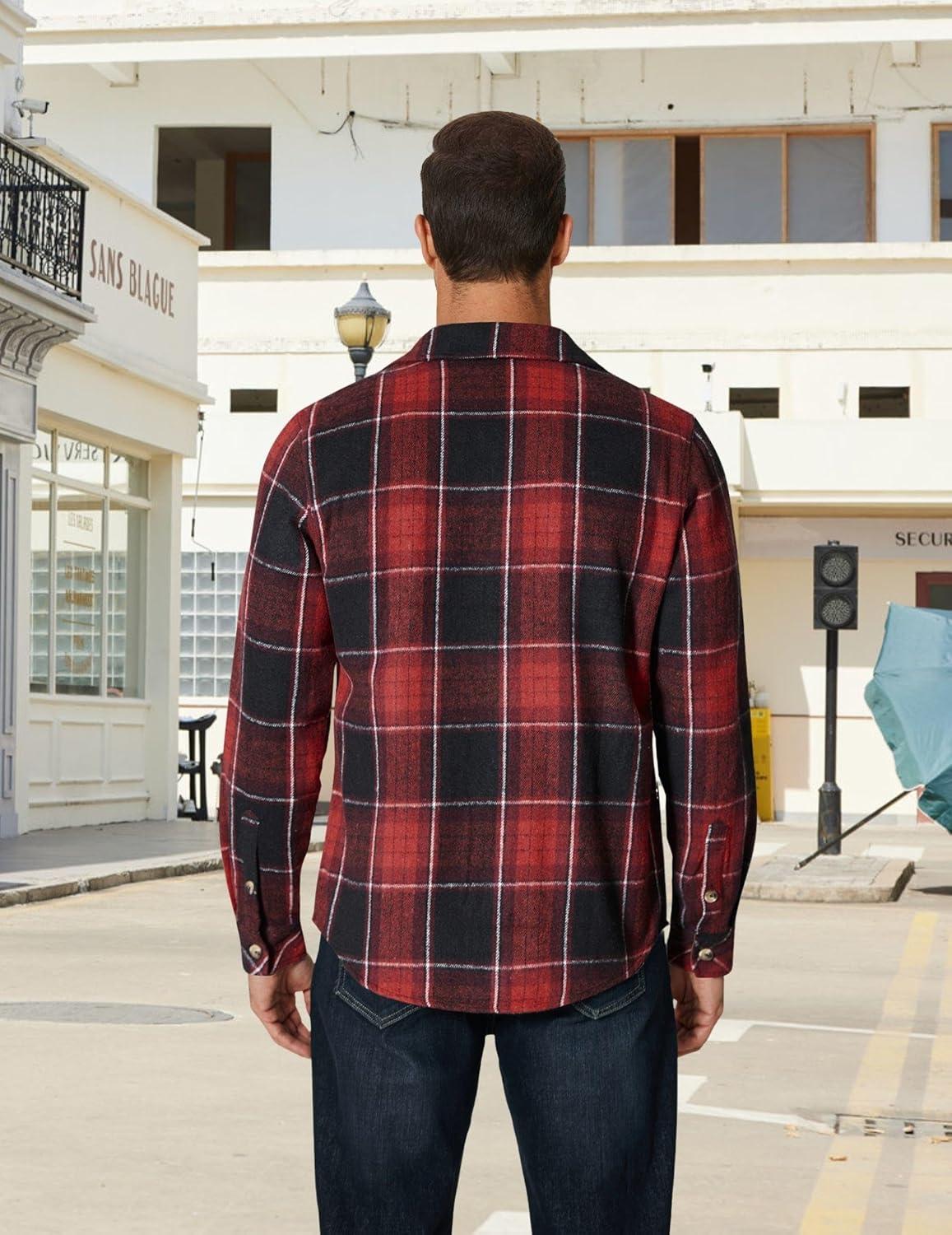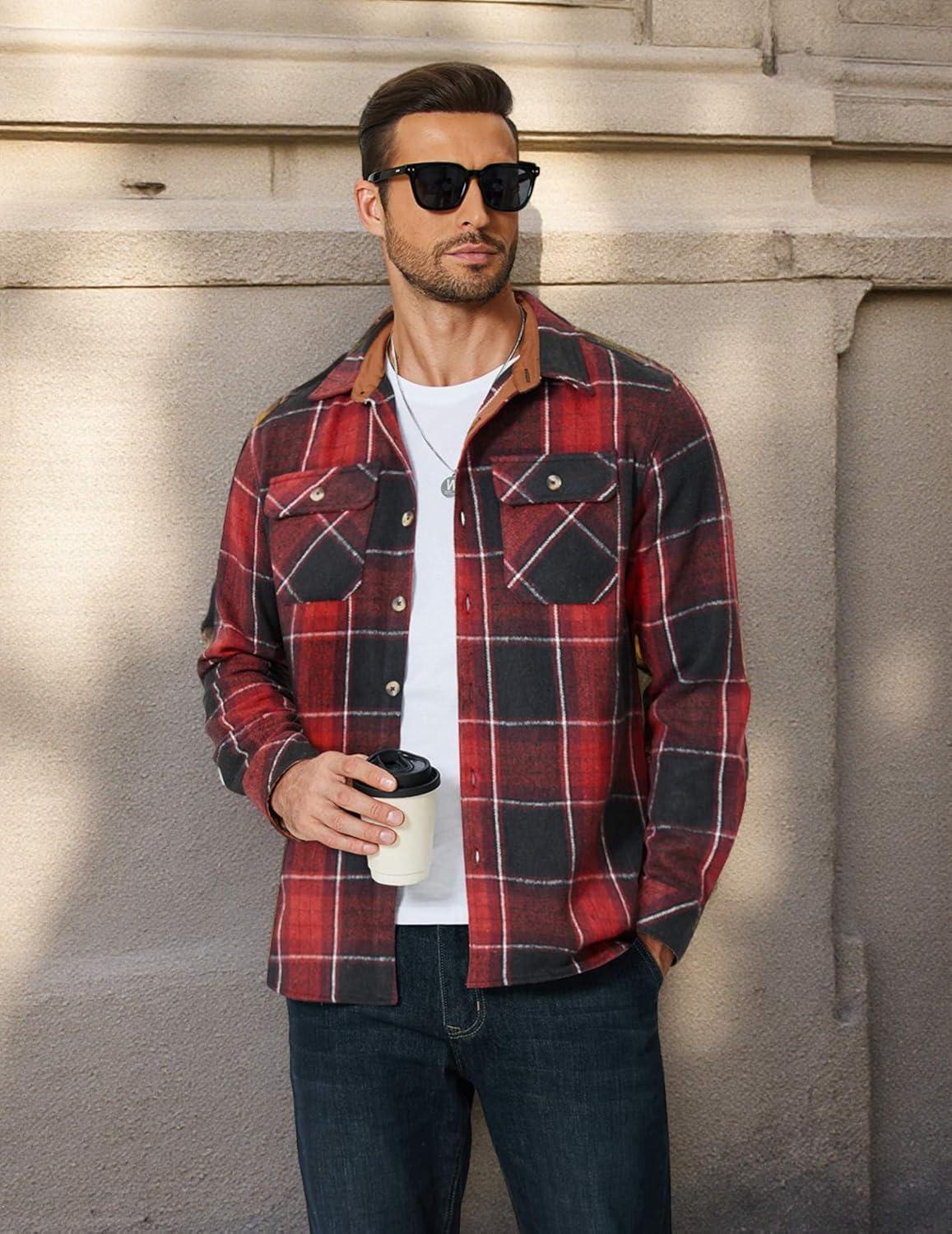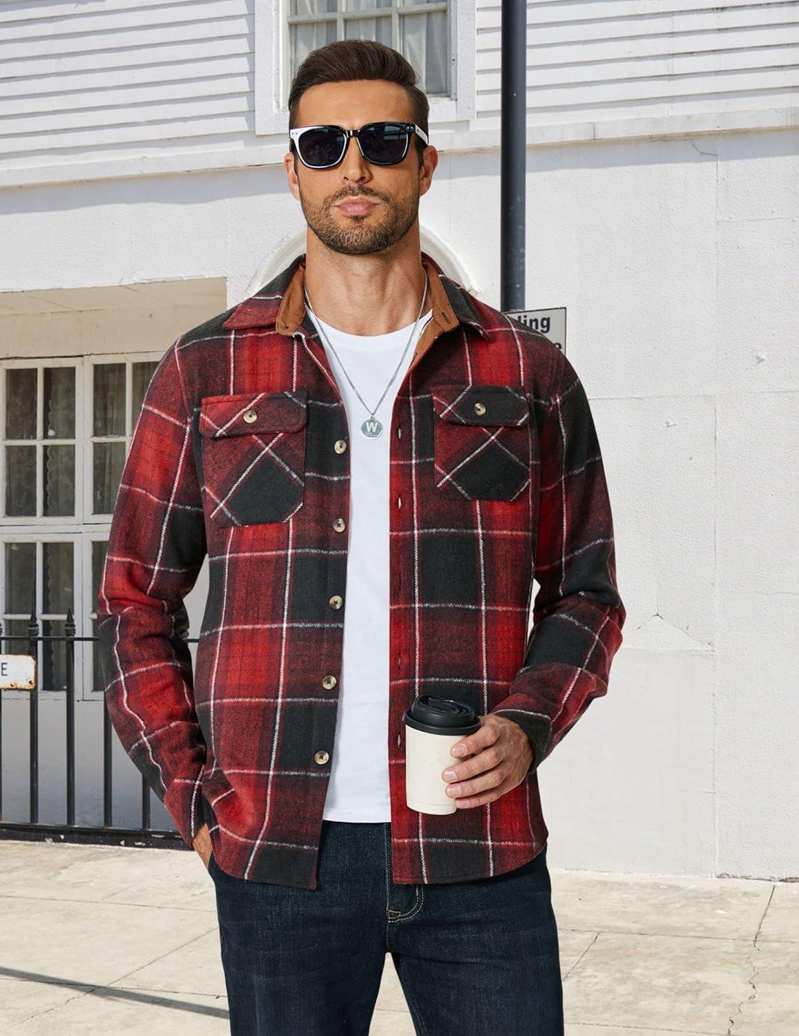 COOFANDY Men’s Long Sleeve Flannel Shirts Jacket Fashion Plaid Jackets Casual Button Down Shirt with Pockets(Black Red)