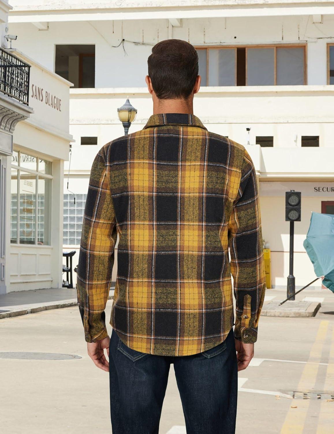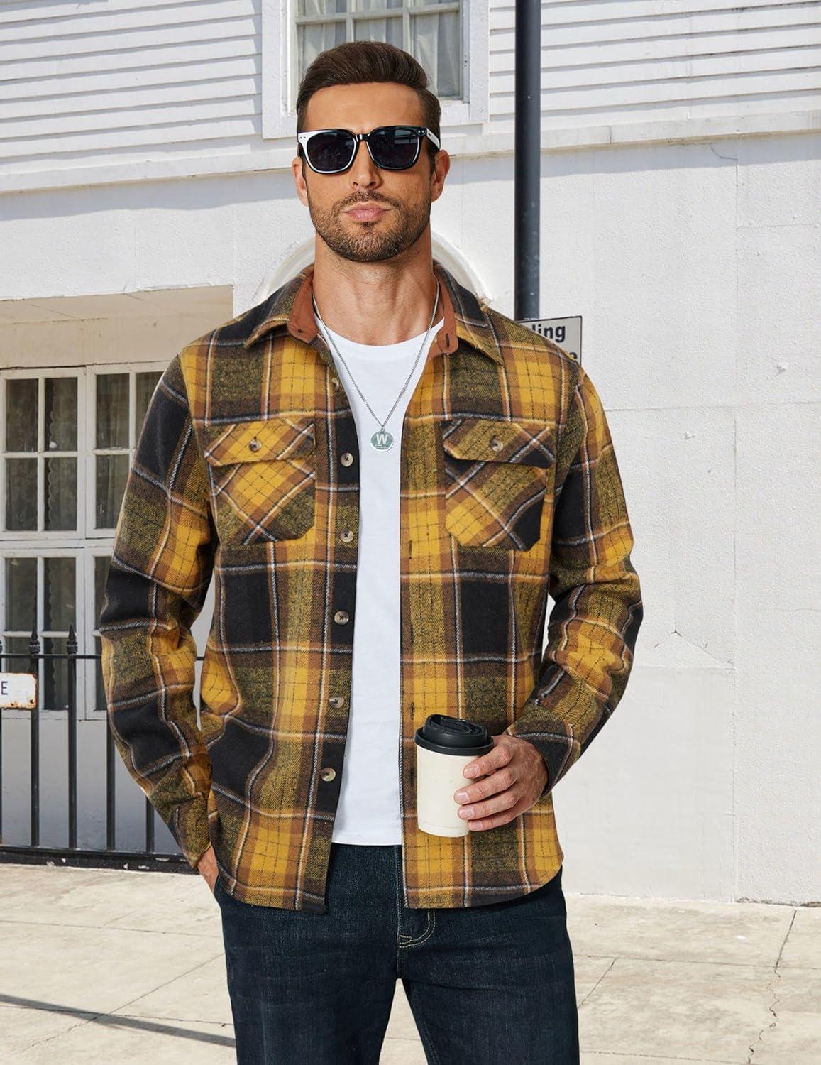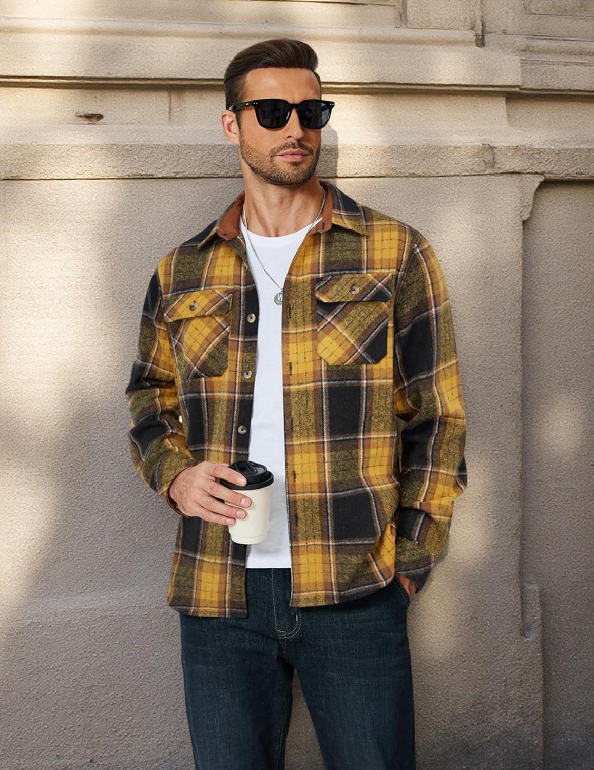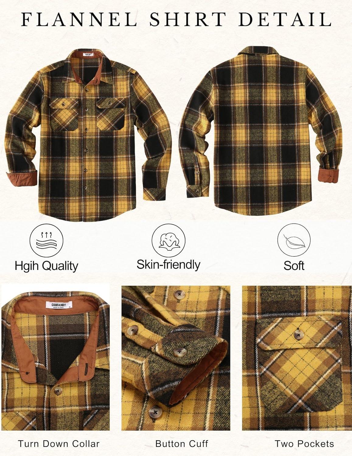 COOFANDY Men’s Long Sleeve Flannel Shirts Jacket Fashion Plaid Jackets Casual Button Down Shirt with Pockets(Black Yellow)