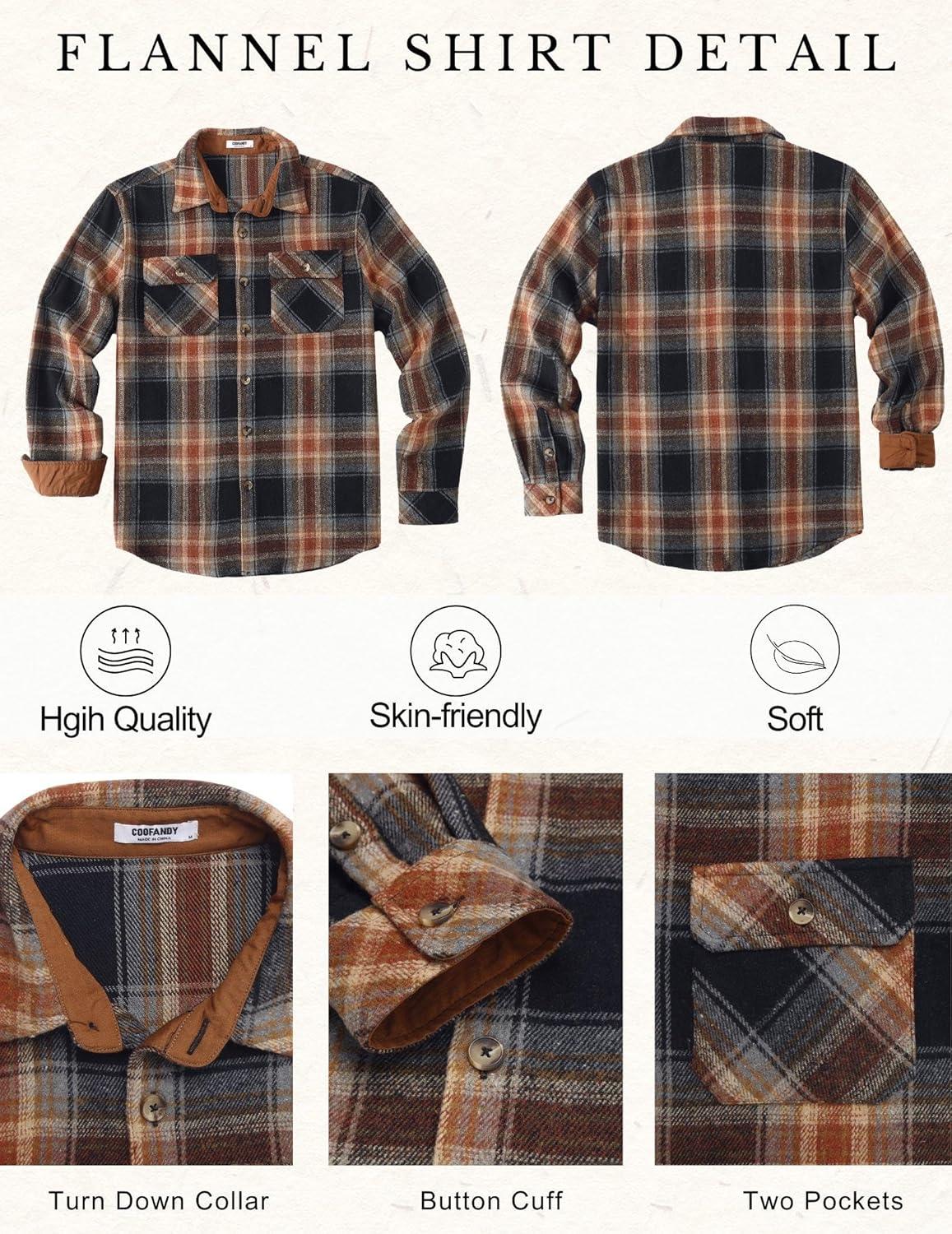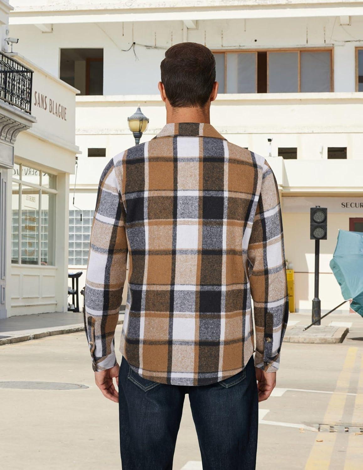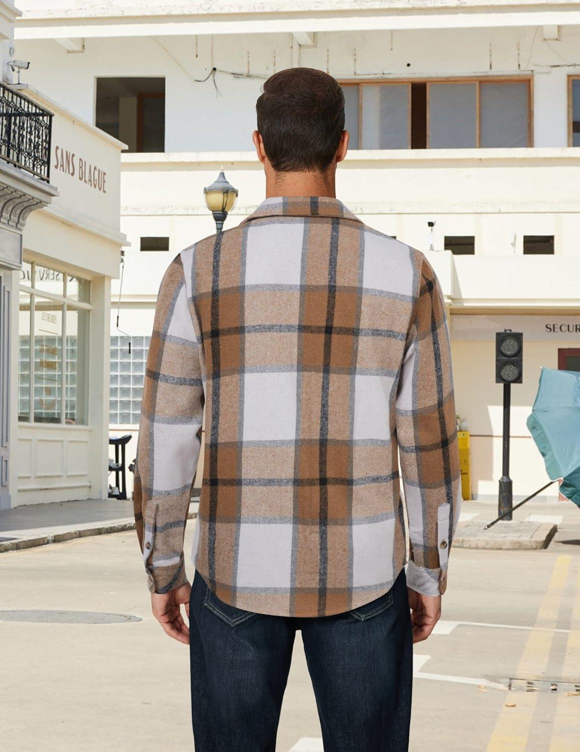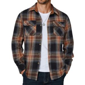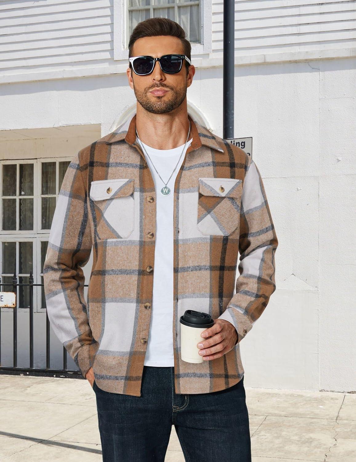 COOFANDY Men’s Long Sleeve Flannel Shirts Jacket Fashion Plaid Jackets Casual Button Down Shirt with Pockets(Brown)