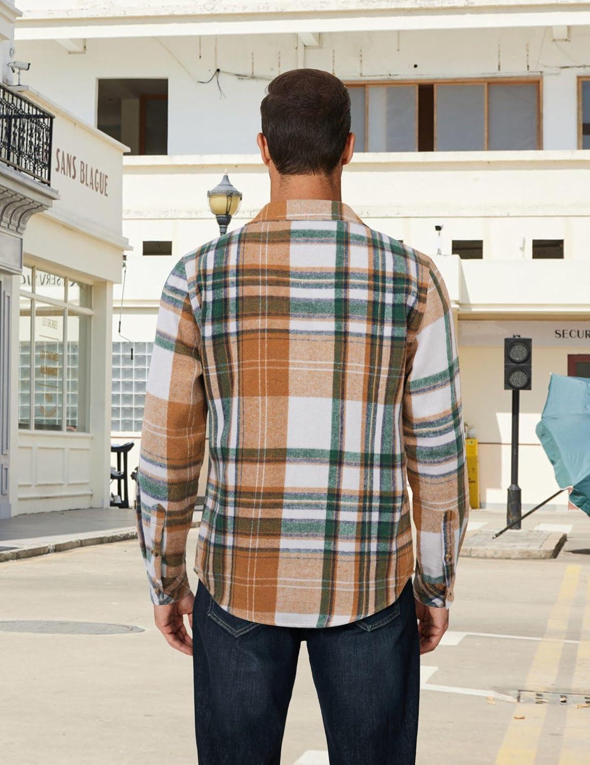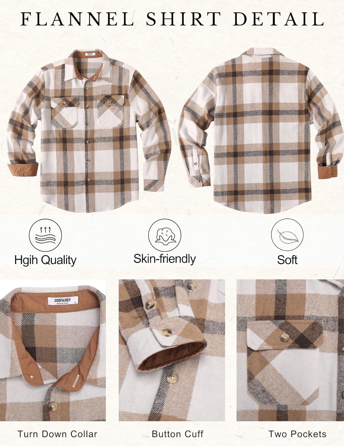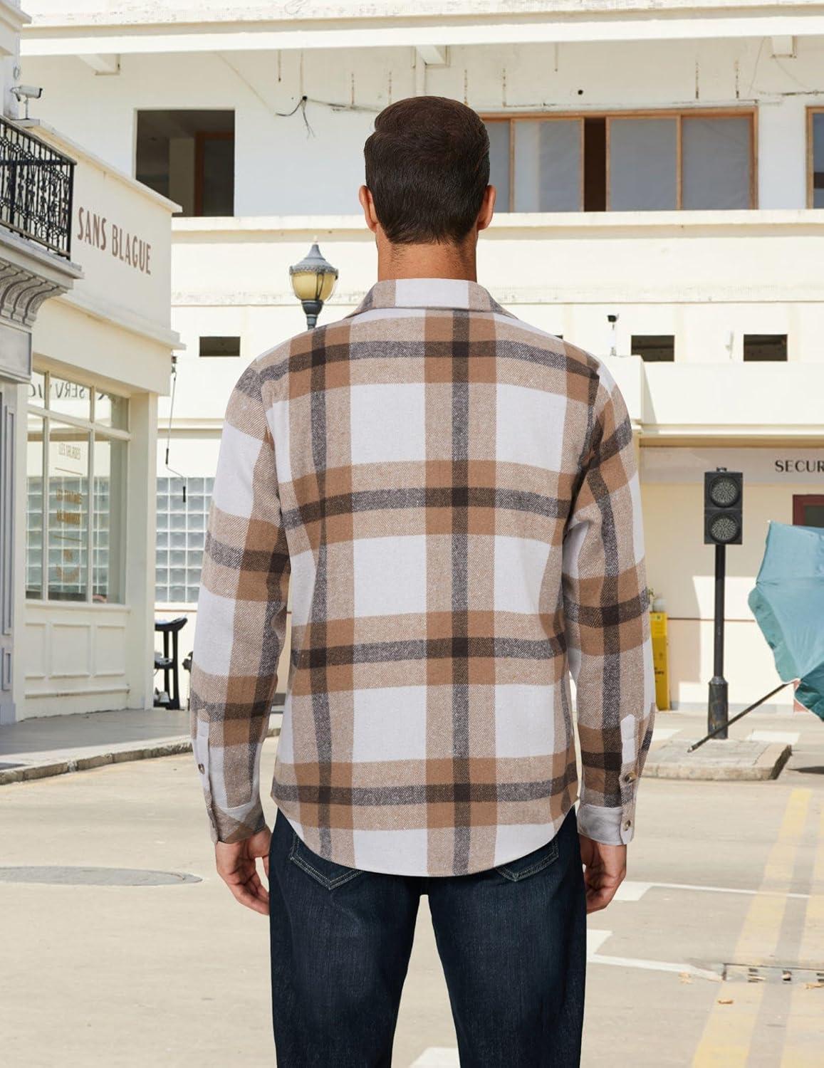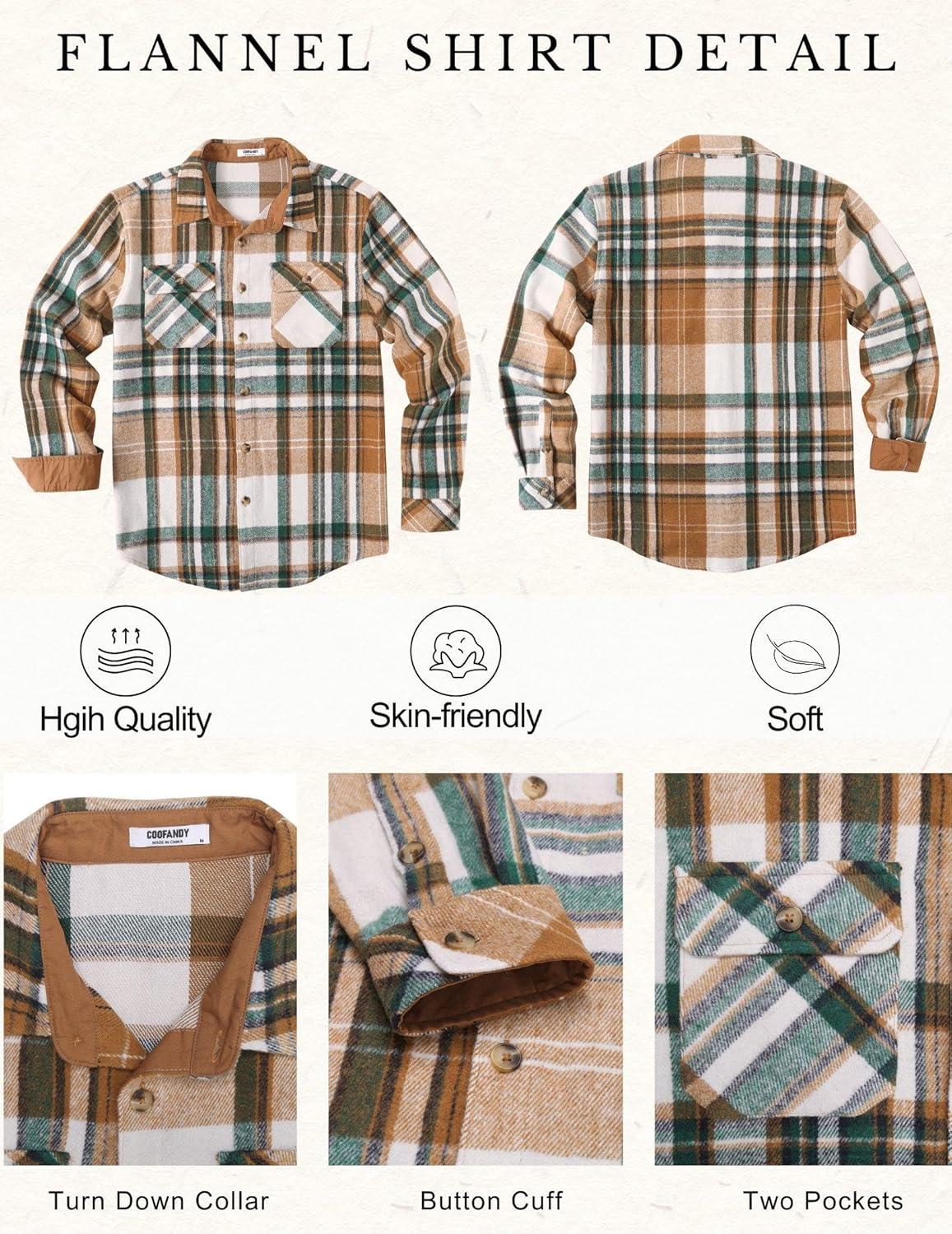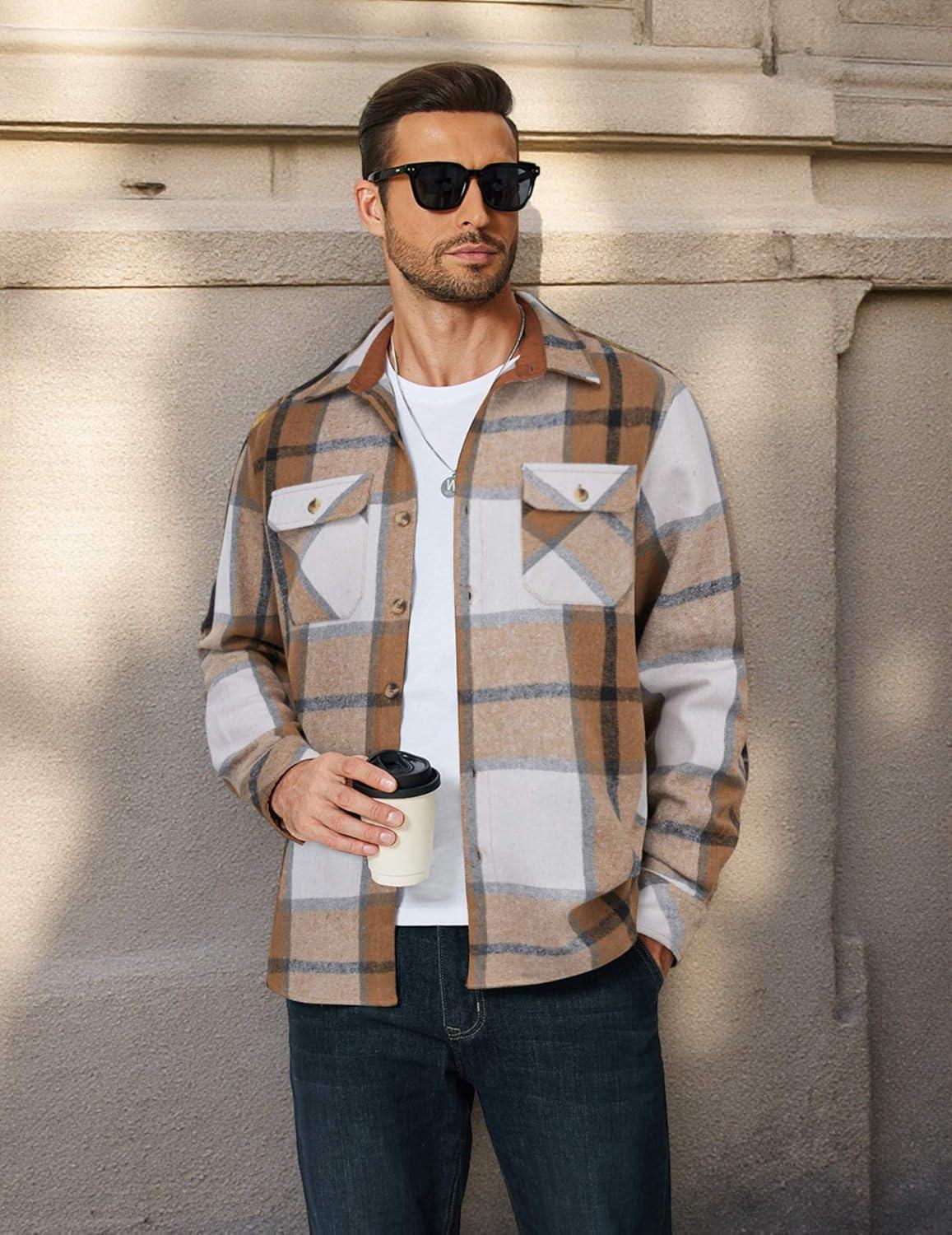 COOFANDY Men’s Long Sleeve Flannel Shirts Jacket Fashion Plaid Jackets Casual Button Down Shirt with Pockets(Khaki)