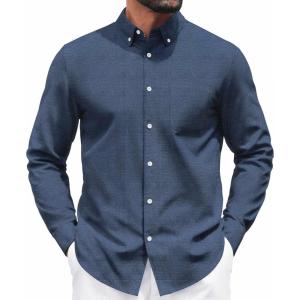 • COOFANDY Mens Long Sleeve Button Down Shirt Casual Untucked Shirts for Men Oxford Dress Shirts(Denim Blue)