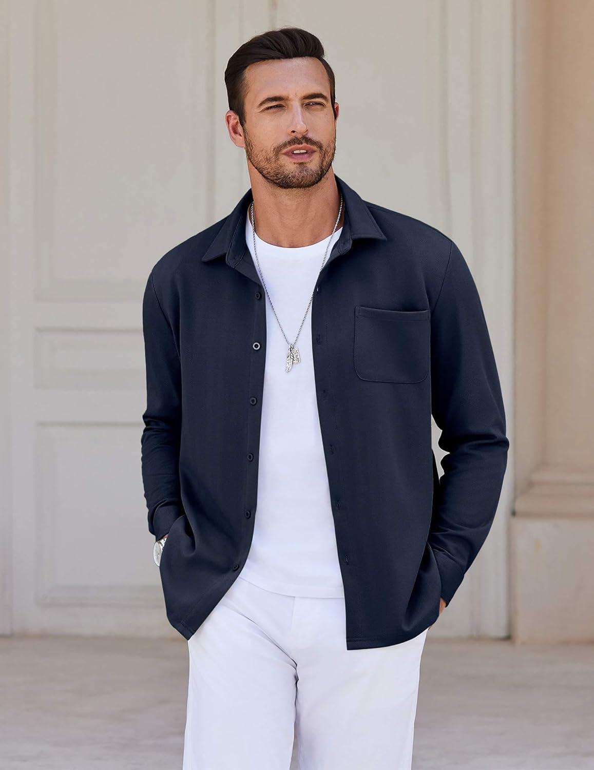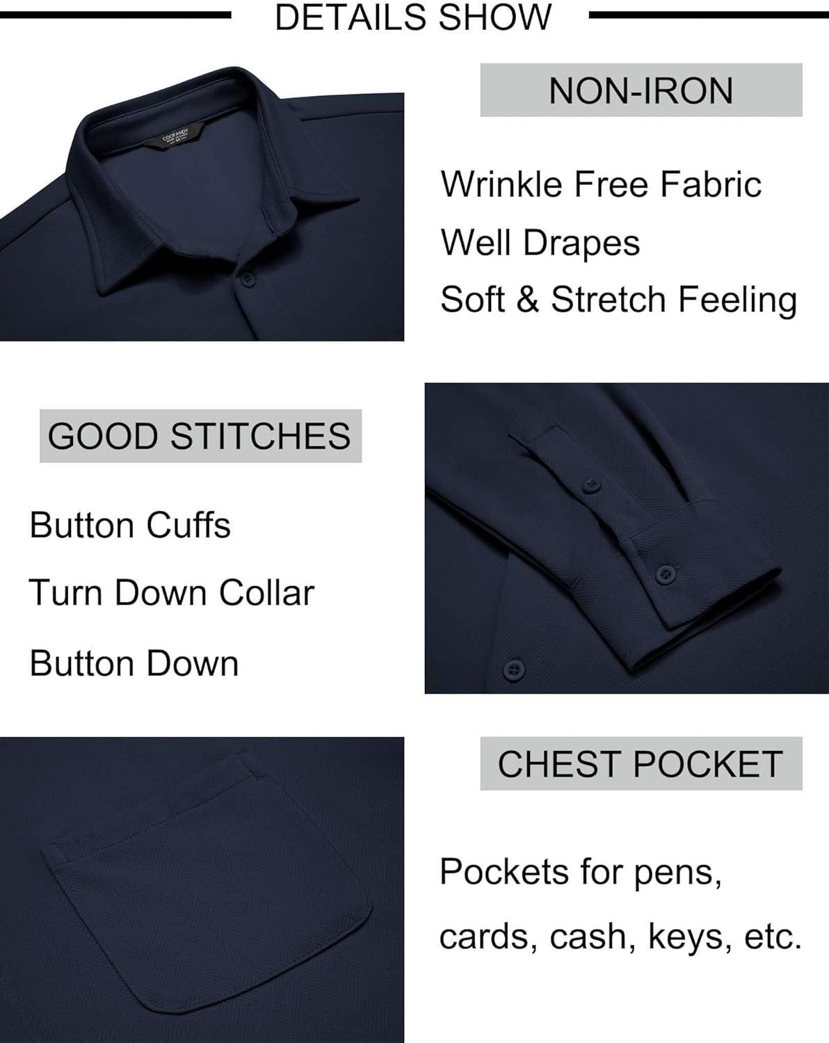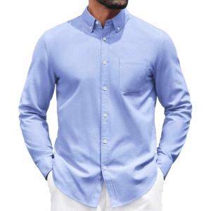 • COOFANDY Mens Long Sleeve Button Down Shirt Casual Untucked Shirts for Men Oxford Dress Shirts(Blue)