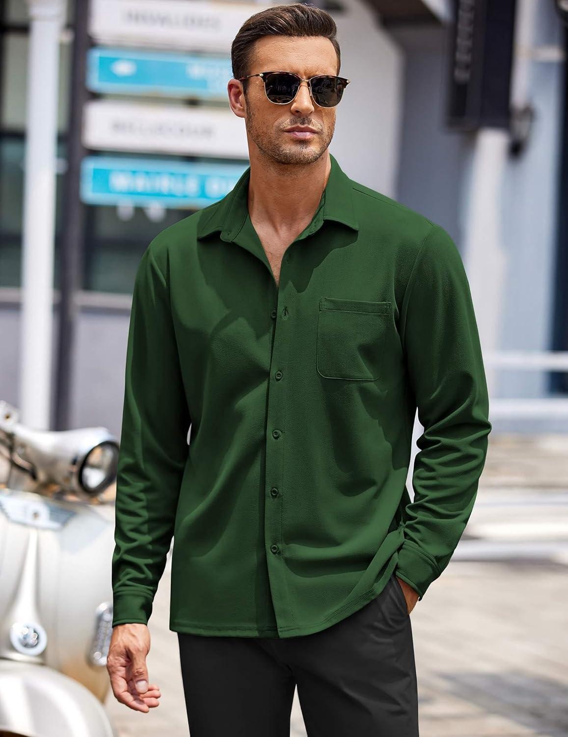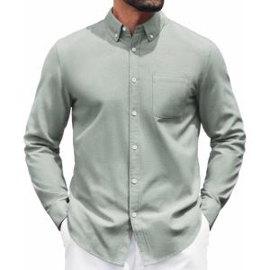 • COOFANDY Mens Long Sleeve Button Down Shirt Casual Untucked Shirts for Men Oxford Dress Shirts(Light Green)