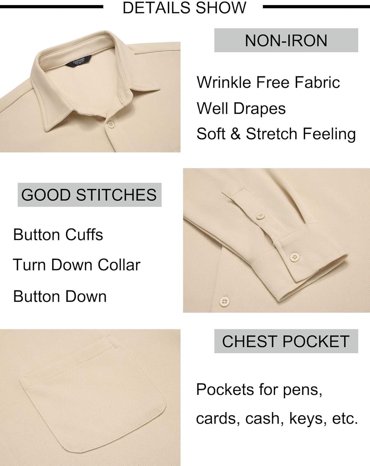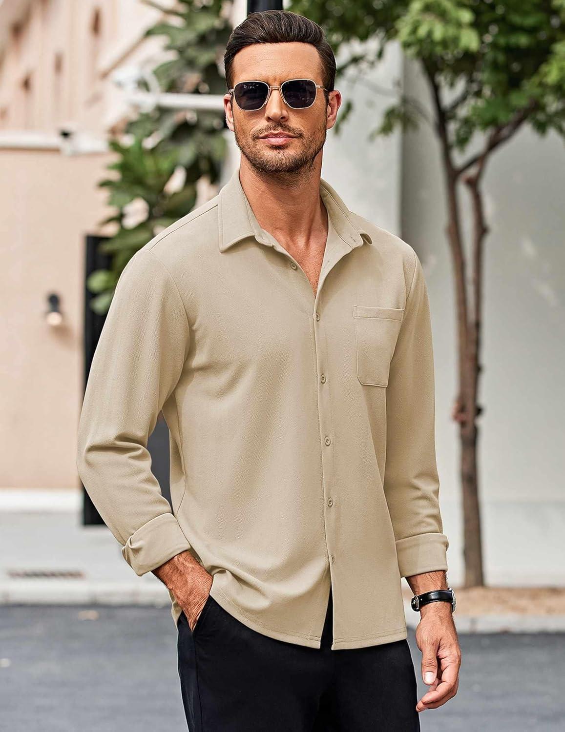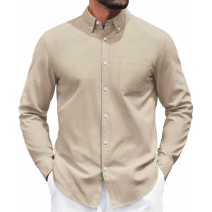 • COOFANDY Mens Long Sleeve Button Down Shirt Casual Untucked Shirts for Men Oxford Dress Shirts(Light Khaki)