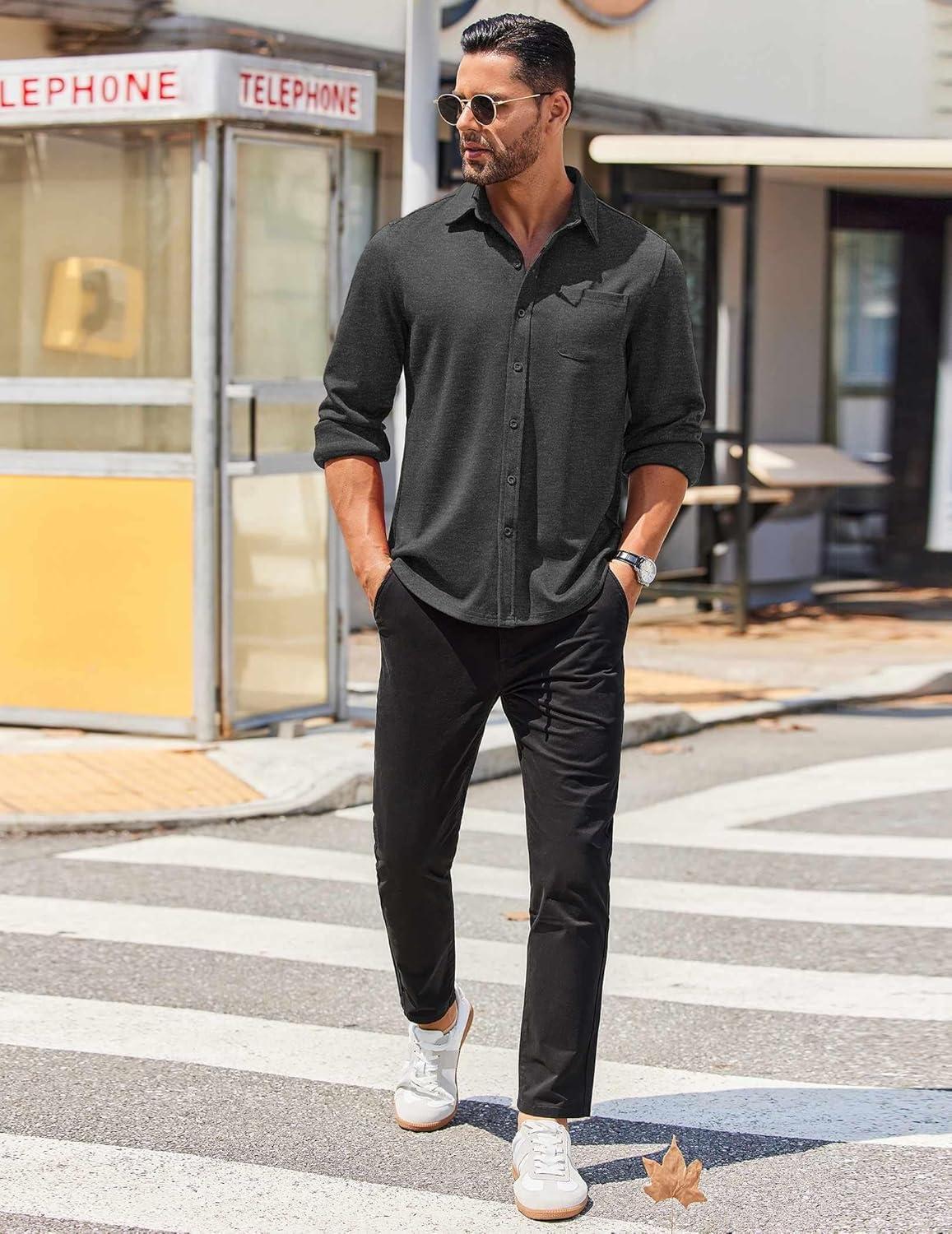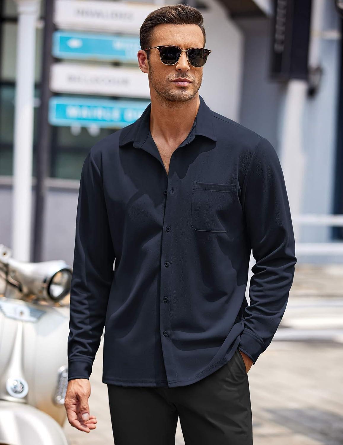 • COOFANDY Mens Long Sleeve Button Down Shirt Casual Untucked Shirts for Men Oxford Dress Shirts(Black)