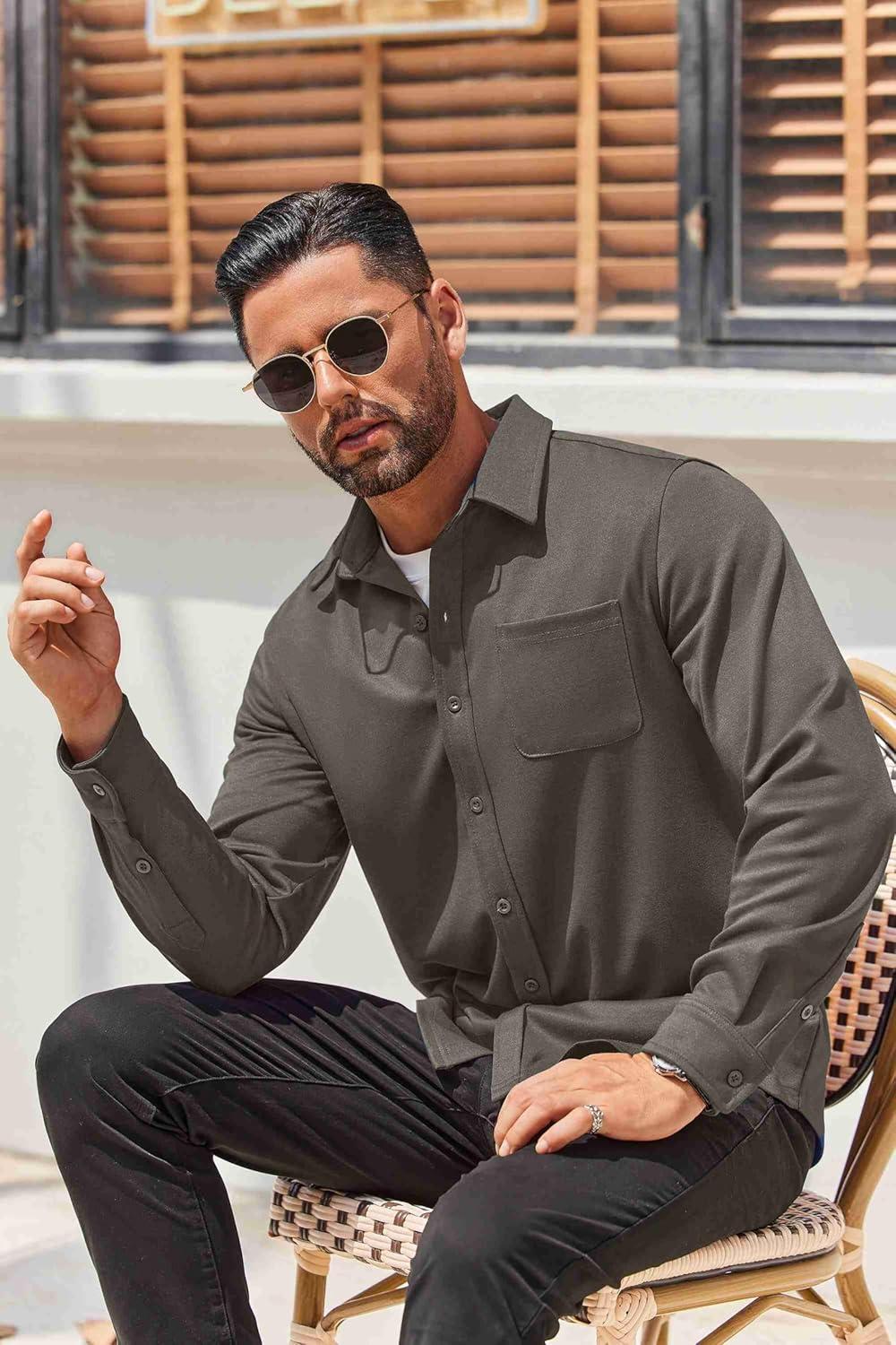 COOFANDY Mens Long Sleeve Button Down Shirt Casual Untucked Shirts for Men Oxford Dress Shirts(Gray)