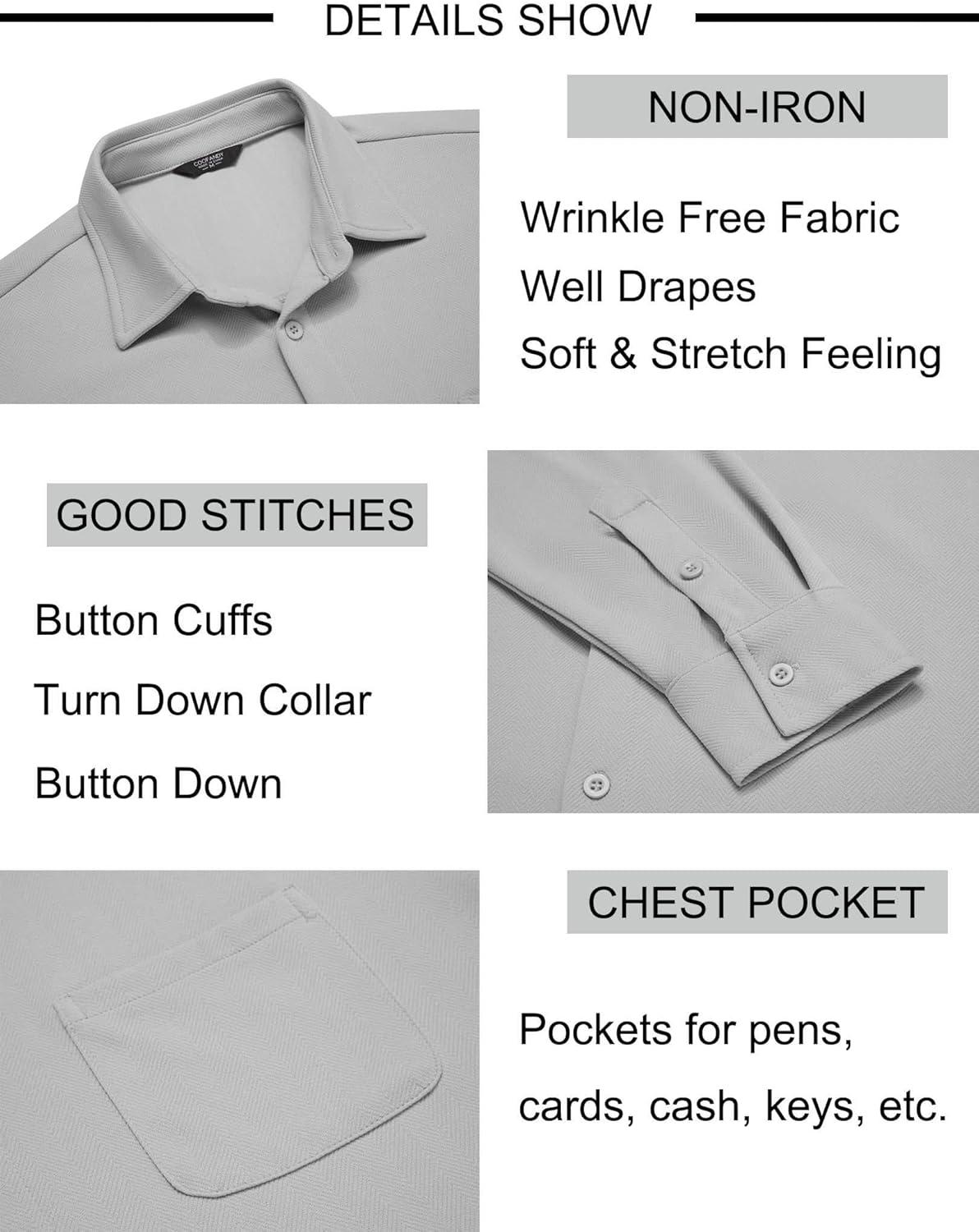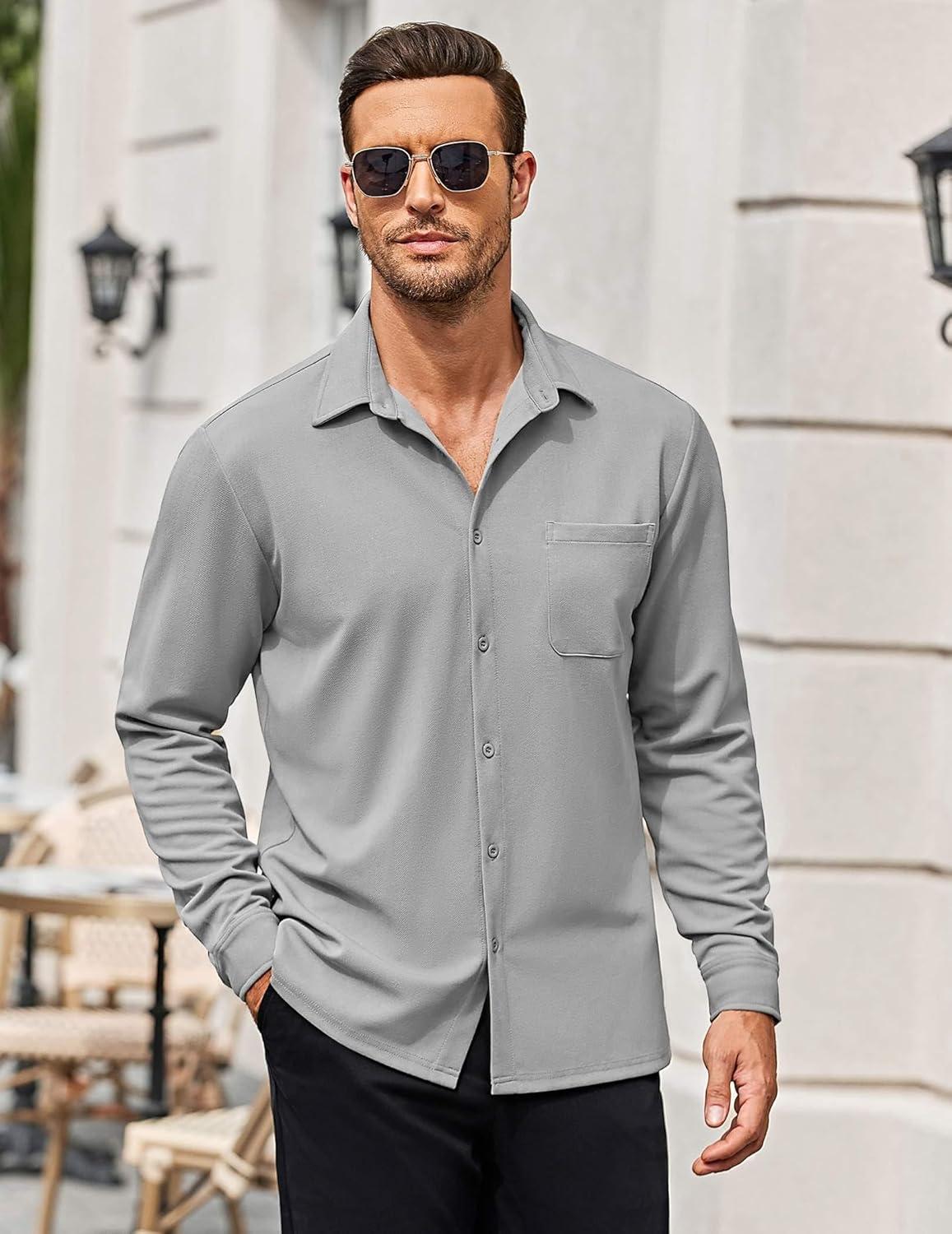 • COOFANDY Mens Long Sleeve Button Down Shirt Casual Untucked Shirts for Men Oxford Dress Shirts(Light Gray)