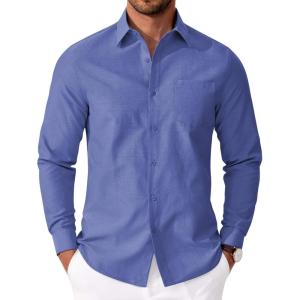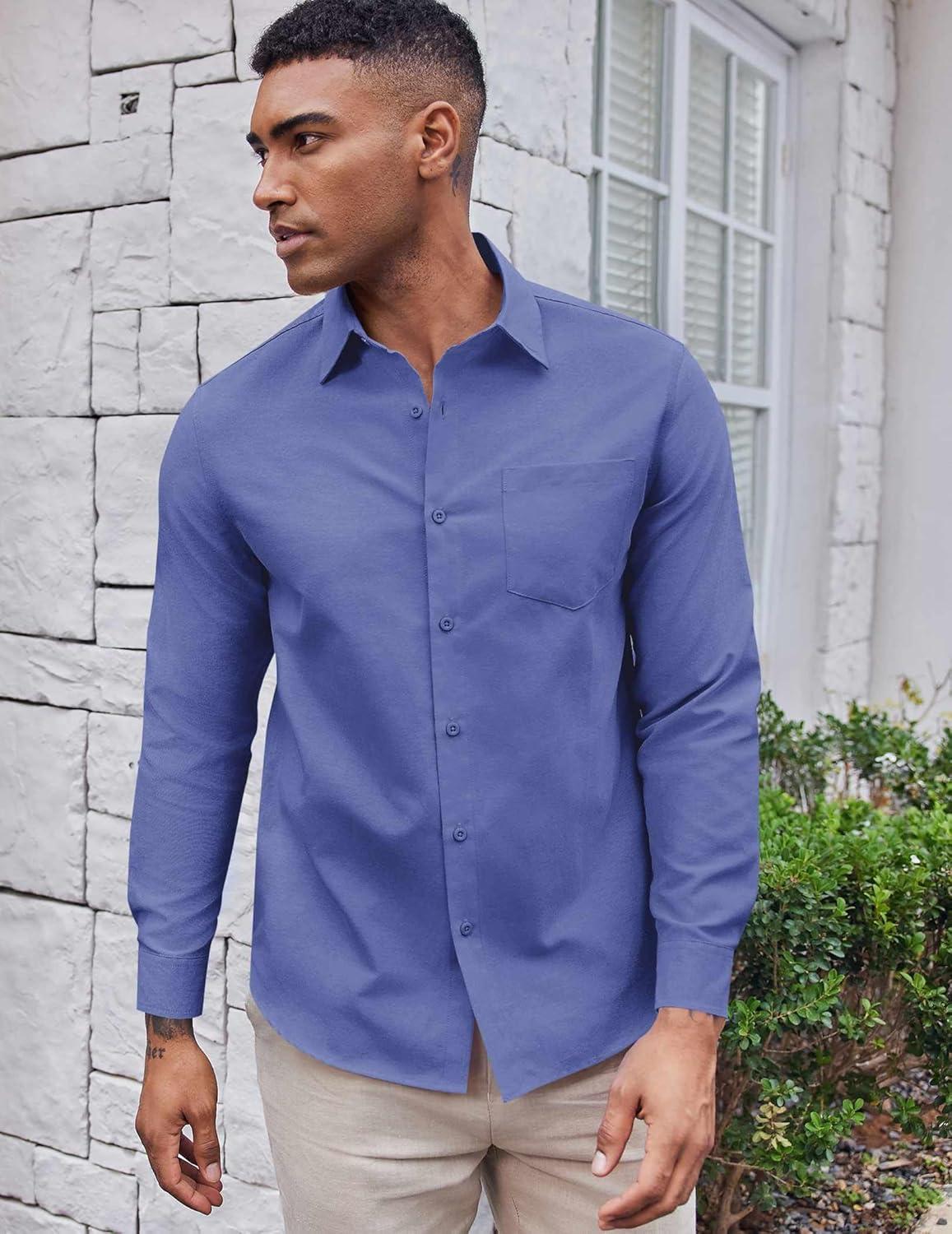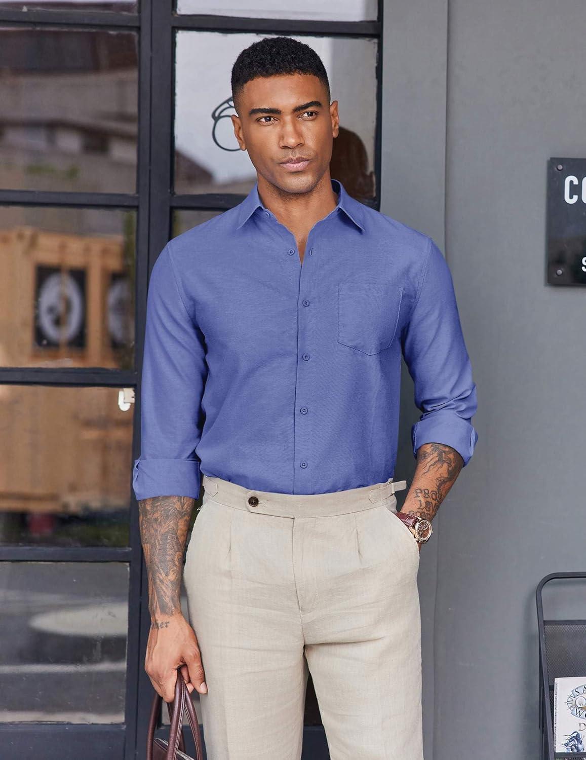 COOFANDY Mens Oxford Shirt Long Sleeve Casual Button Down Shirts Soild Dress Shirts with Pocket(Royal Azure)