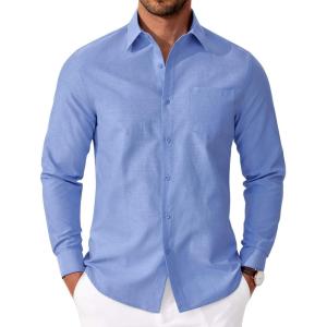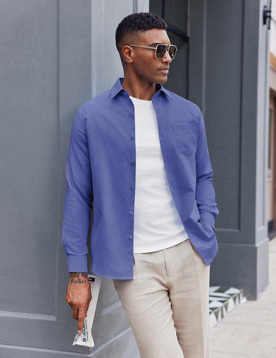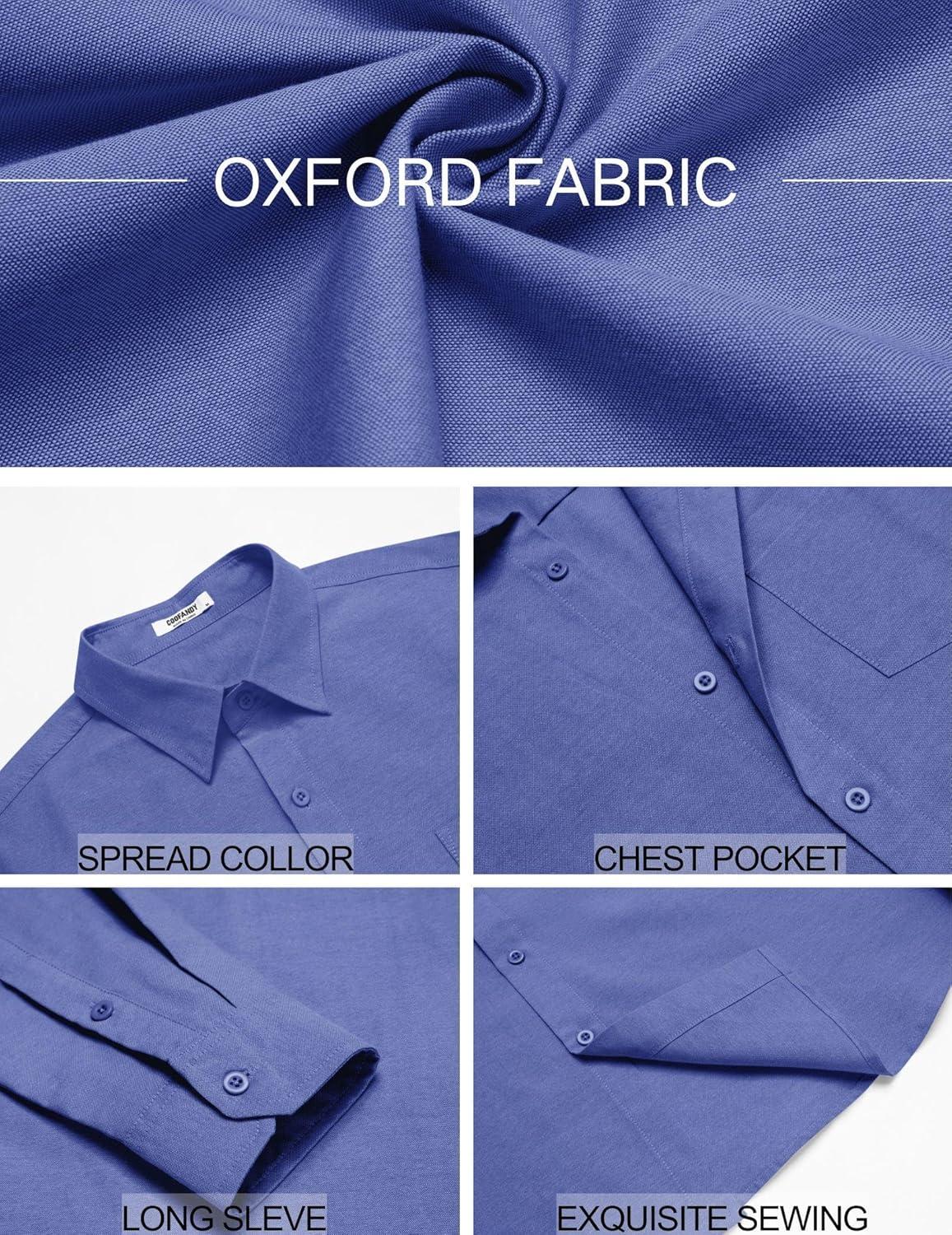 COOFANDY Mens Oxford Shirt Long Sleeve Casual Button Down Shirts Soild Dress Shirts with Pocket(Blue)