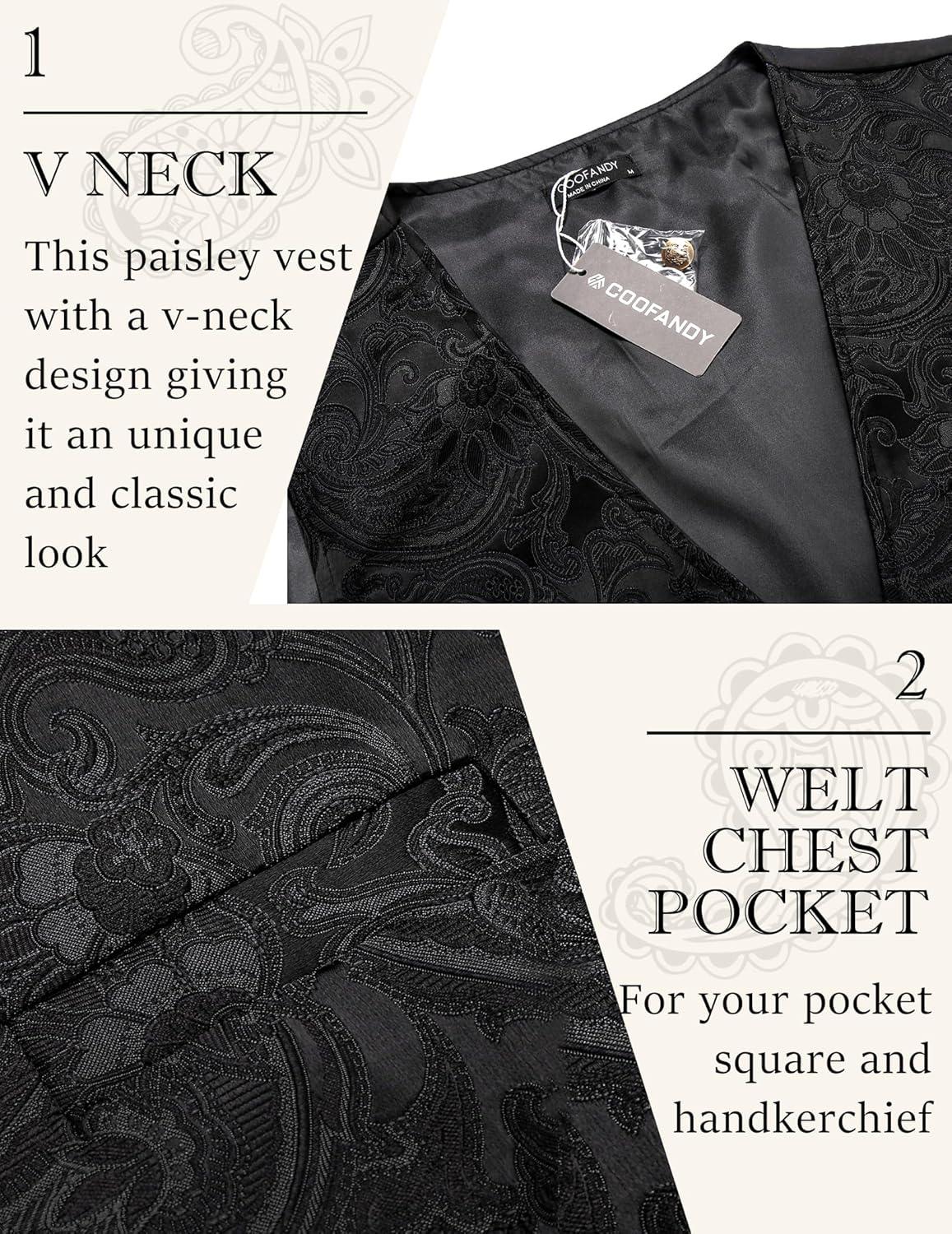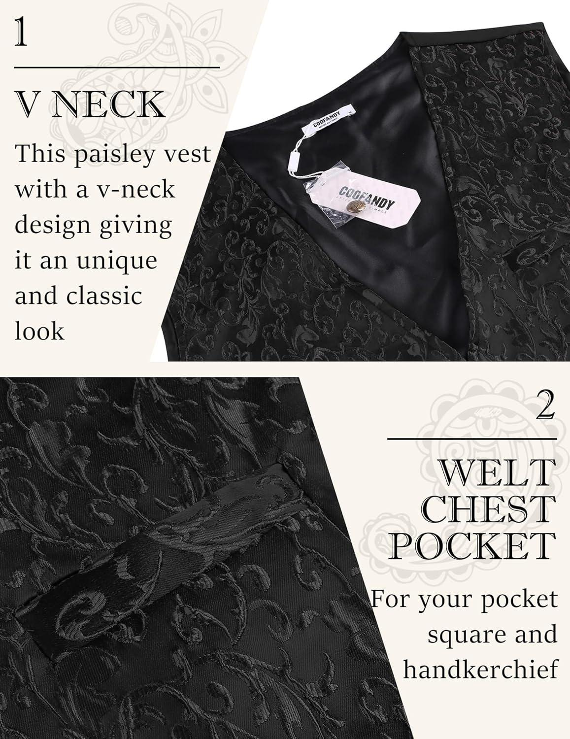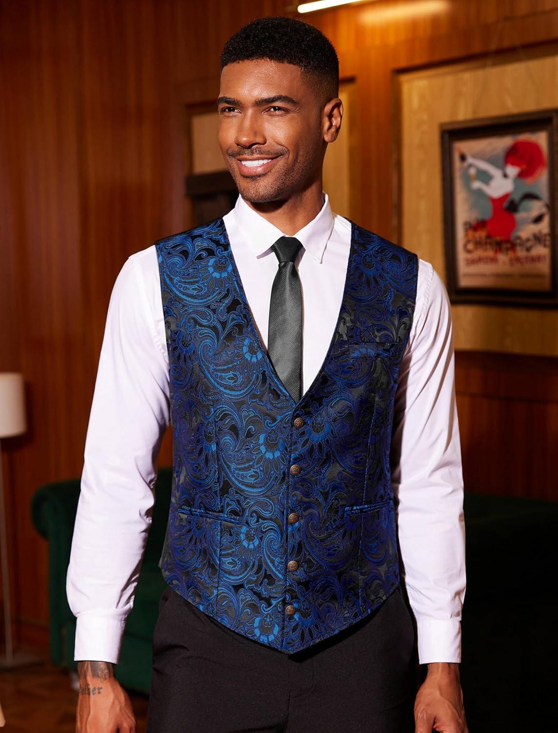 COOFANDY Mens Paisley Tuxedo Vest Victorian Steampunk Gothic Suit Vest Slim Fit V-Neck Waistcoat(Black)