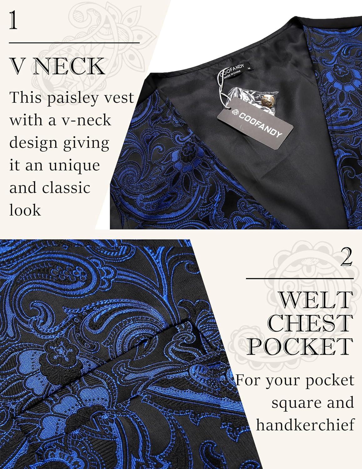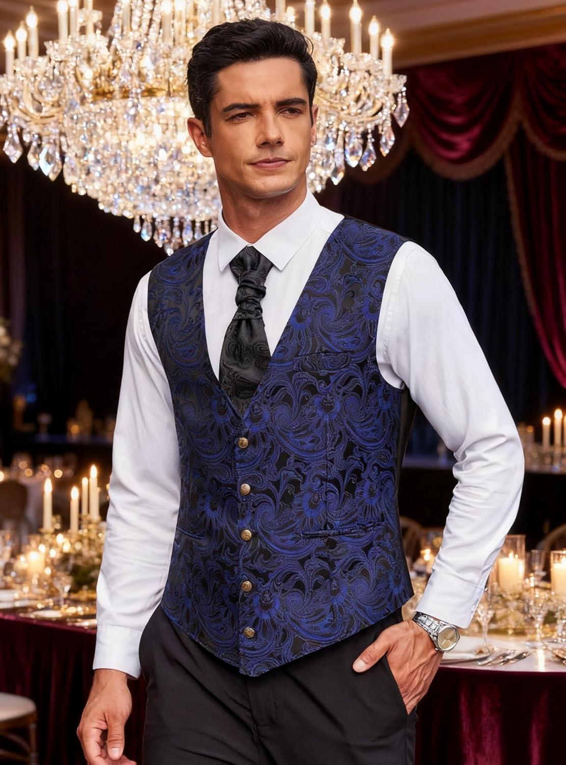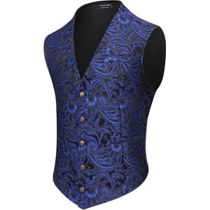 COOFANDY Mens Paisley Tuxedo Vest Victorian Steampunk Gothic Suit Vest Slim Fit V-Neck Waistcoat(Blue)