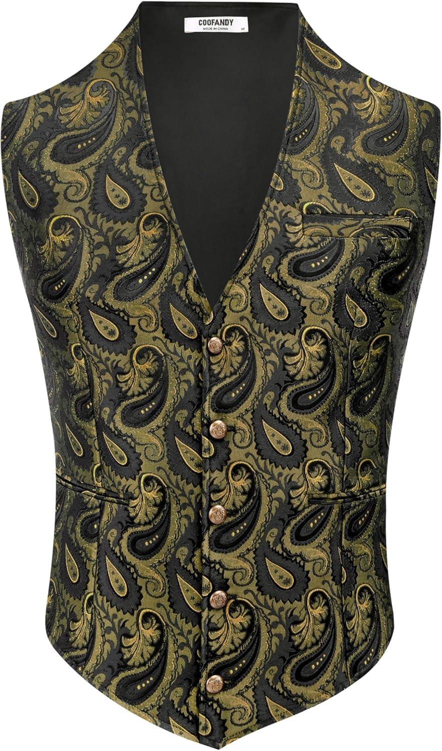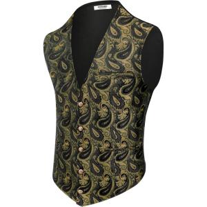 COOFANDY Mens Paisley Tuxedo Vest Victorian Steampunk Gothic Suit Vest Slim Fit V-Neck Waistcoat(Golden Paisley)