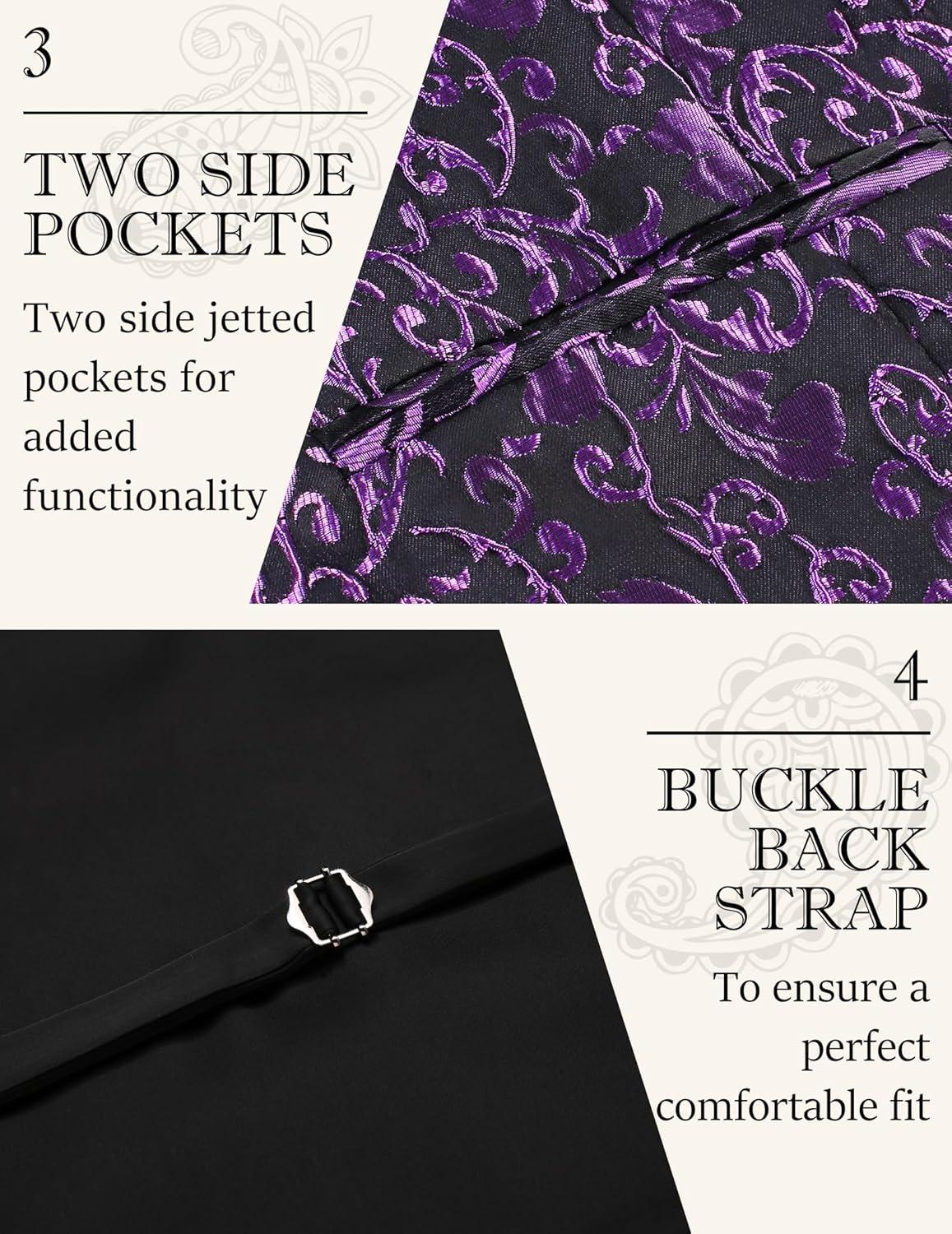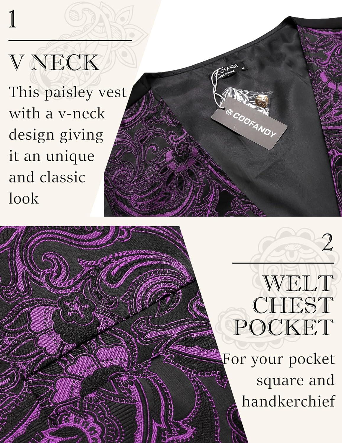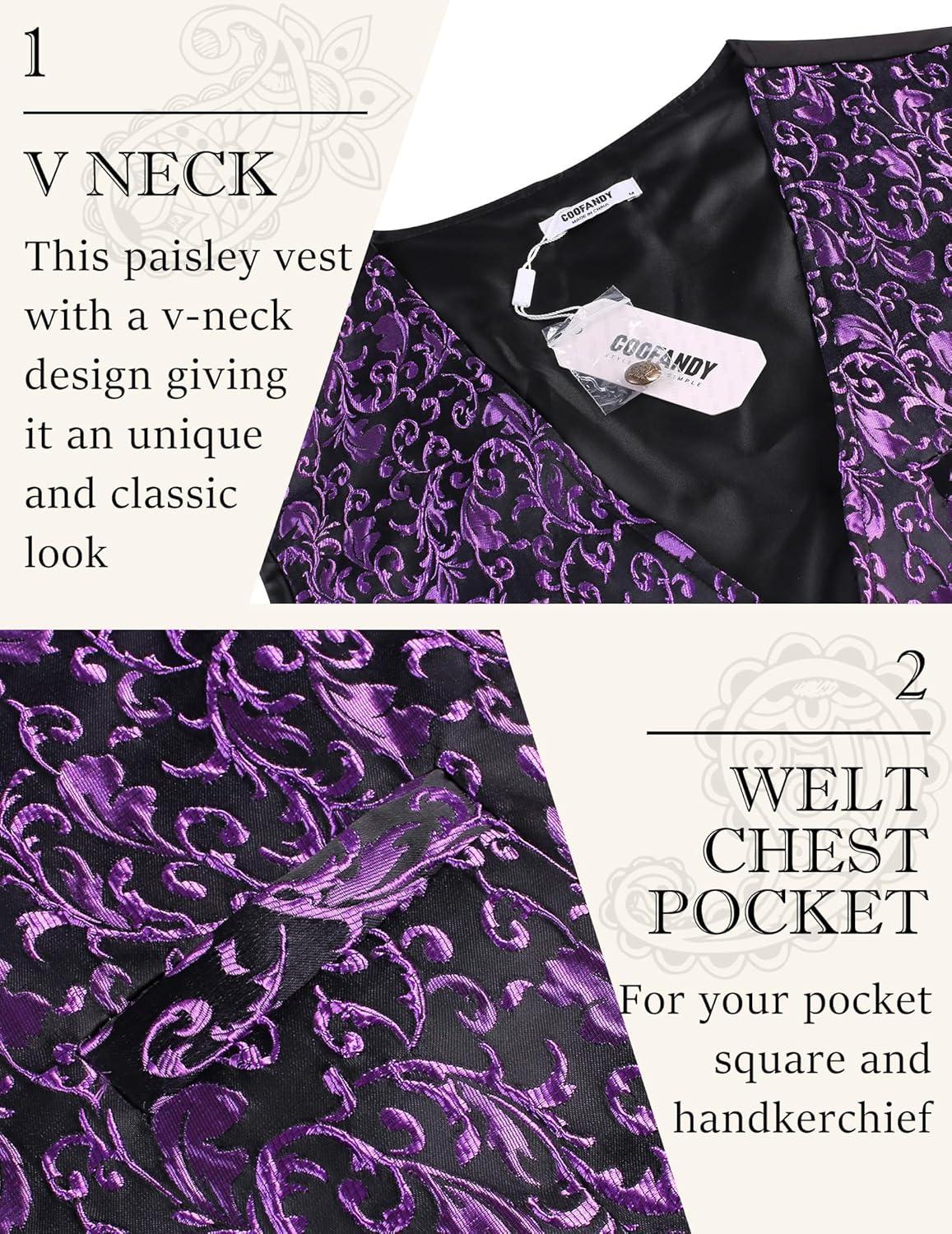 COOFANDY Mens Paisley Tuxedo Vest Victorian Steampunk Gothic Suit Vest Slim Fit V-Neck Waistcoat(Purple)