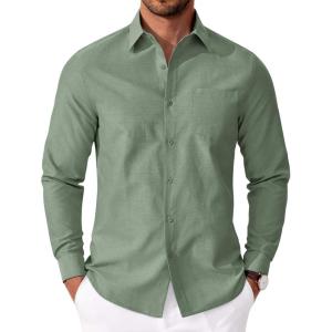 COOFANDY Mens Oxford Shirt Long Sleeve Casual Button Down Shirts Soild Dress Shirts with Pocket(Green)
