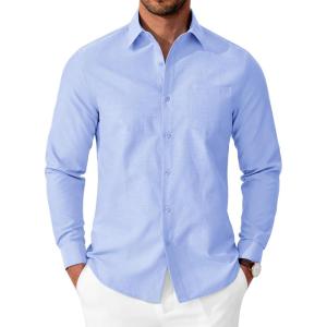 COOFANDY Mens Oxford Shirt Long Sleeve Casual Button Down Shirts Soild Dress Shirts with Pocket(Light Blue)