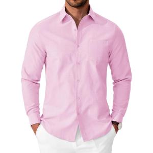 COOFANDY Mens Oxford Shirt Long Sleeve Casual Button Down Shirts Soild Dress Shirts with Pocket(Pink)