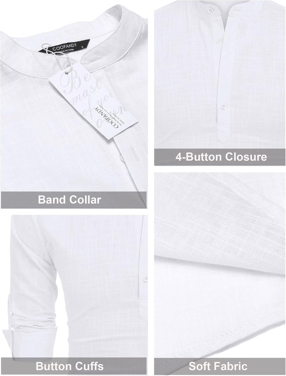 COOFANDY Men’s Cotton Linen Henley T-Shirt Long Sleeve Hippie Casual Beach T-Shirts(01-white)