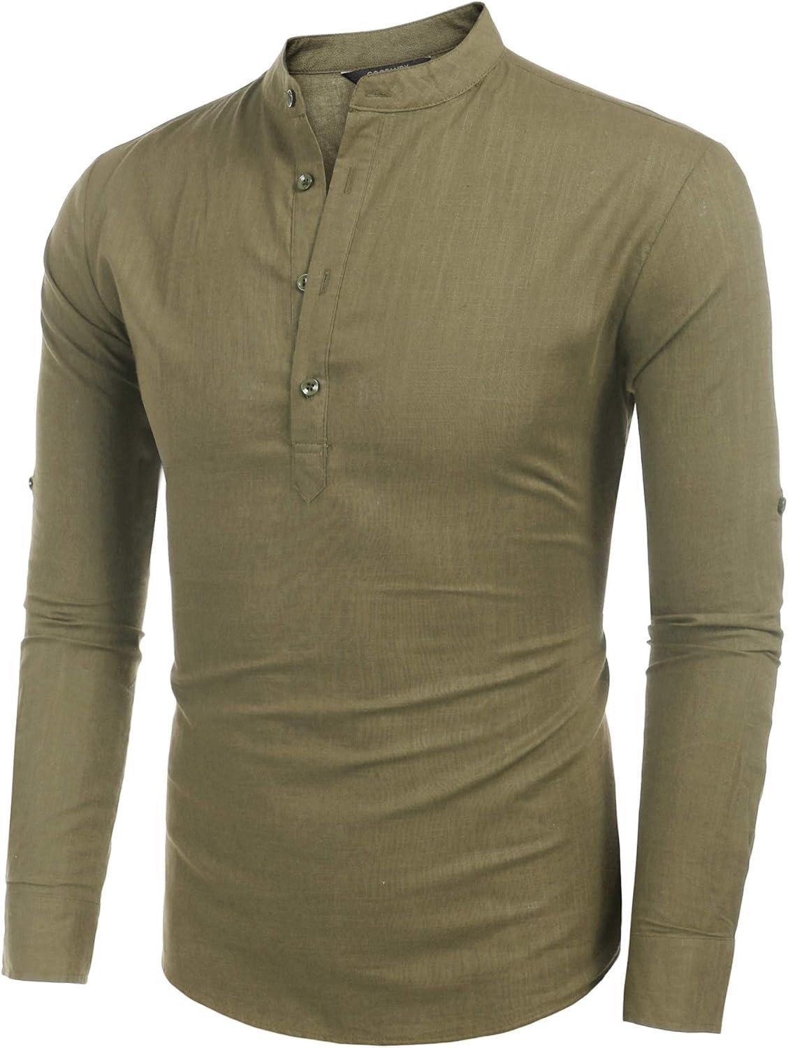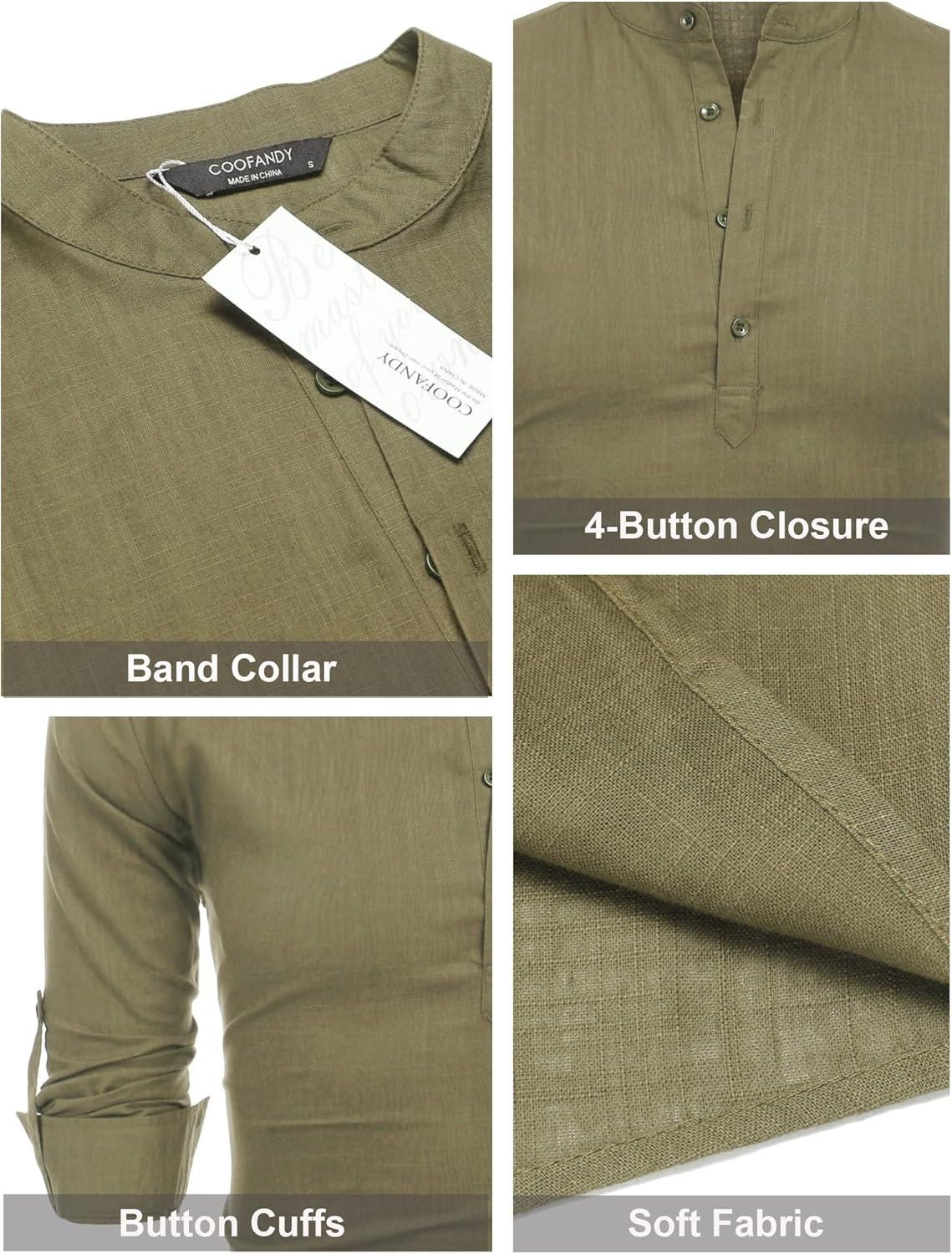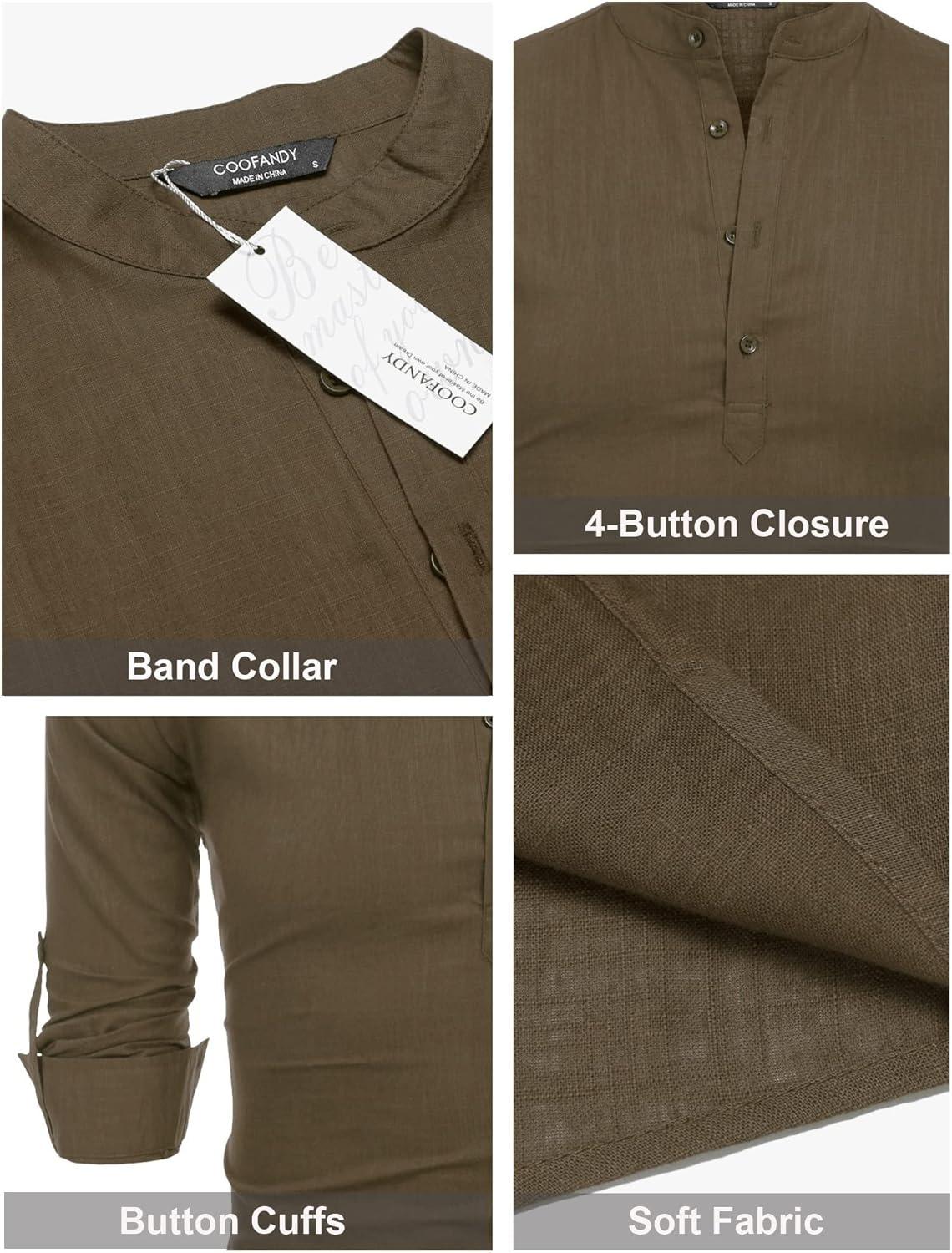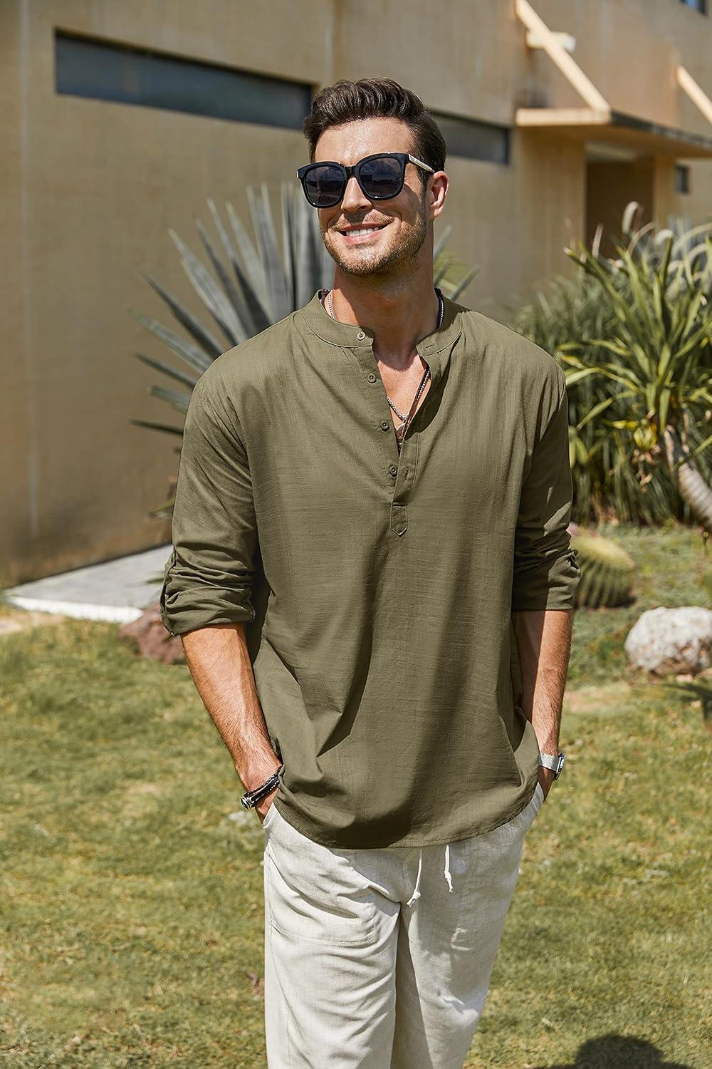 COOFANDY Men’s Cotton Linen Henley T-Shirt Long Sleeve Hippie Casual Beach T-Shirts(Army Green)