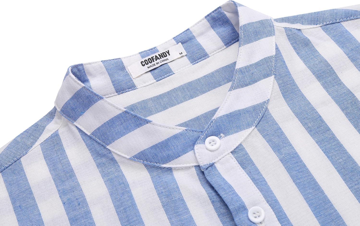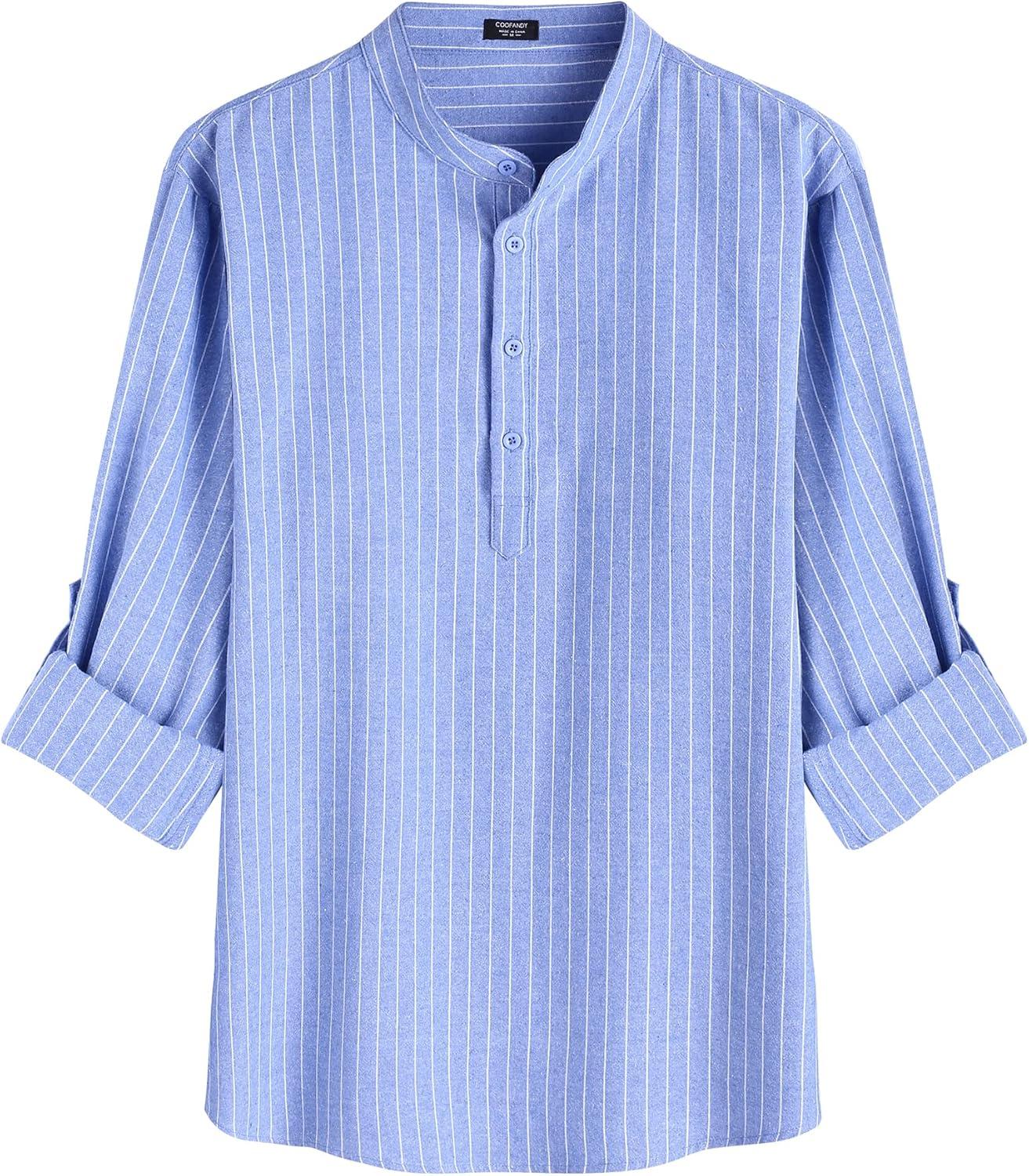 COOFANDY Men’s Cotton Linen Henley T-Shirt Long Sleeve Hippie Casual Beach T-Shirts(Blue Striped)