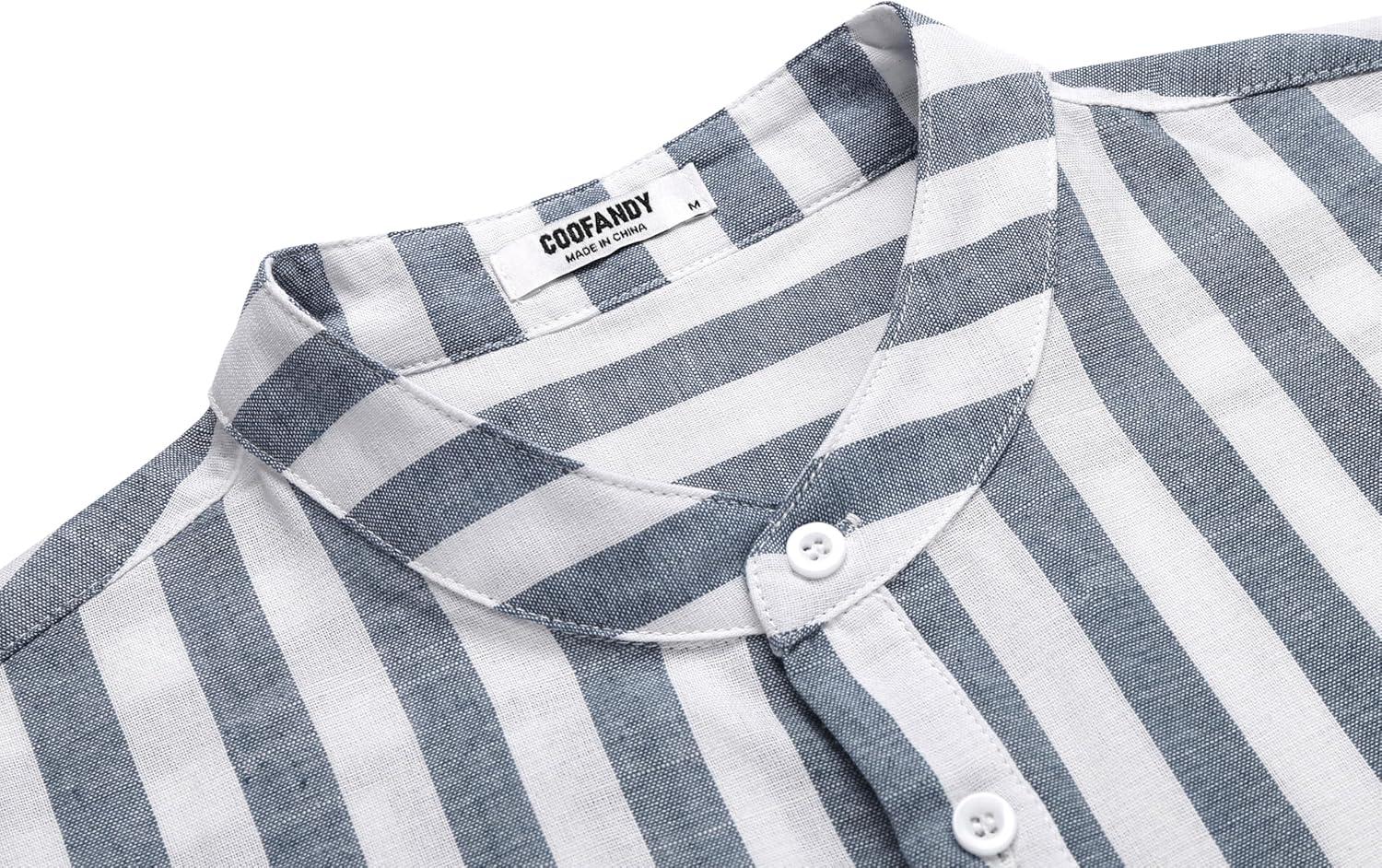 COOFANDY Men’s Cotton Linen Henley T-Shirt Long Sleeve Hippie Casual Beach T-Shirts(Grey Blue Striped)