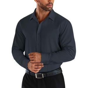 COOFANDY Men’s Business Dress Shirts Wrinkle Free Long Sleeve Regular Fit Dress Shirt Textured Casual Button Down Shirts(Navy Blue)