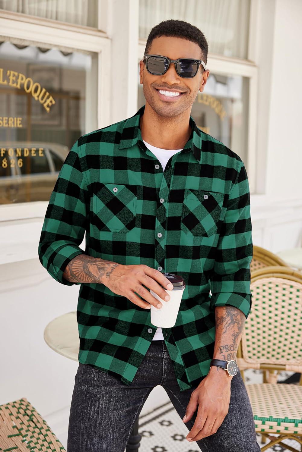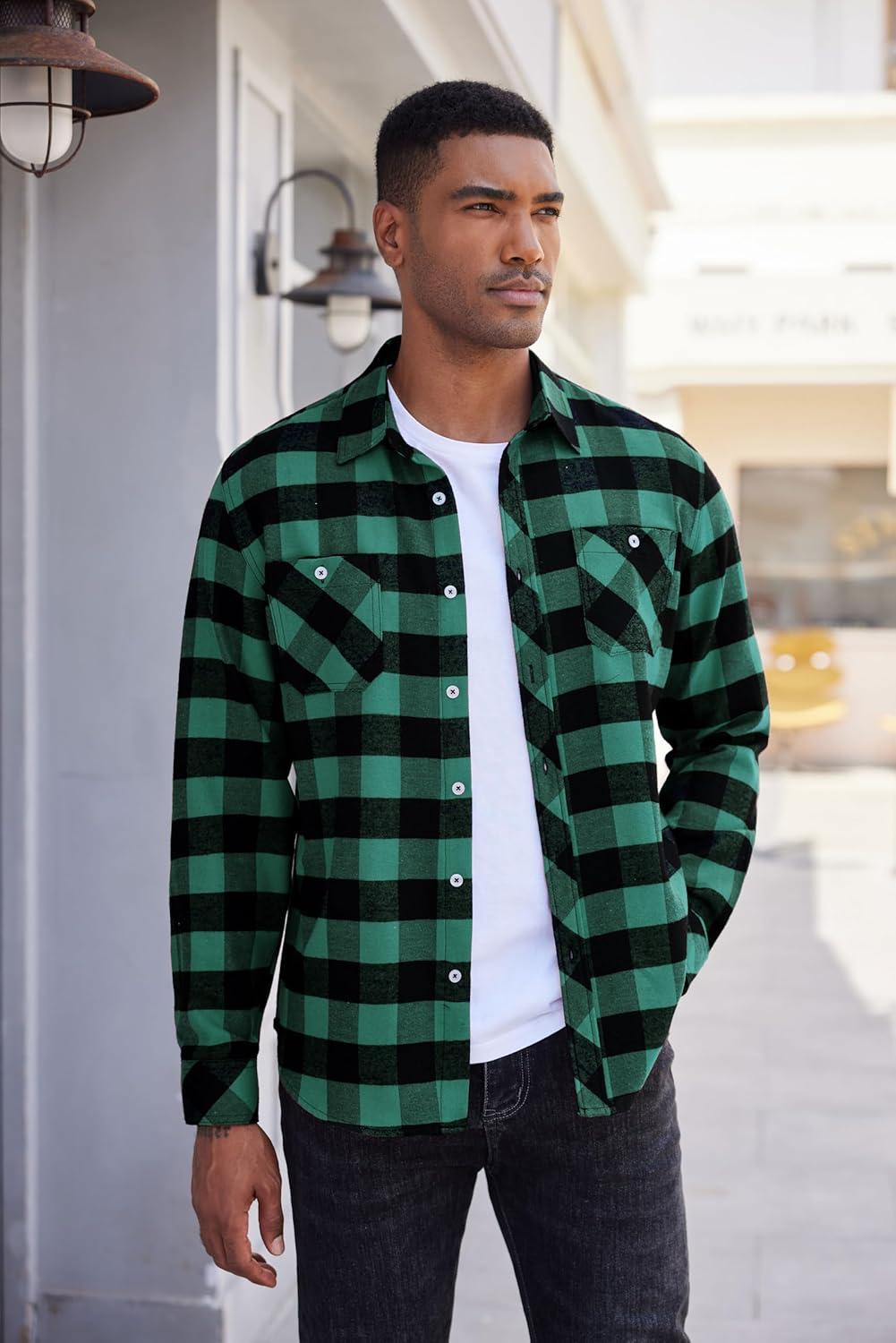 COOFANDY Men’s Flannel Plaid Shirts Long Sleeve Casual Button Down Shirt with Pockets(Green)