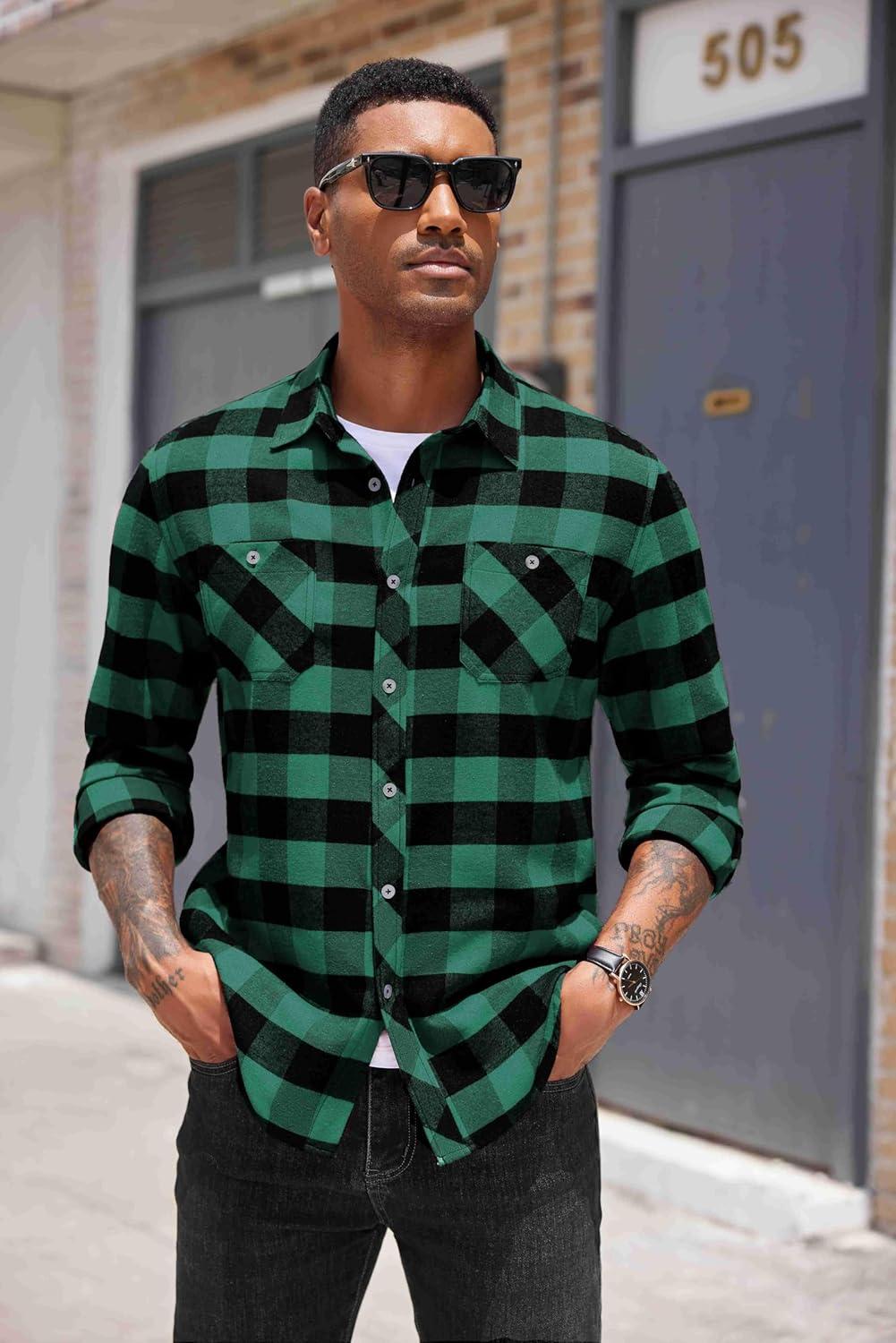 COOFANDY Men’s Flannel Plaid Shirts Long Sleeve Casual Button Down Shirt with Pockets(Green Black)