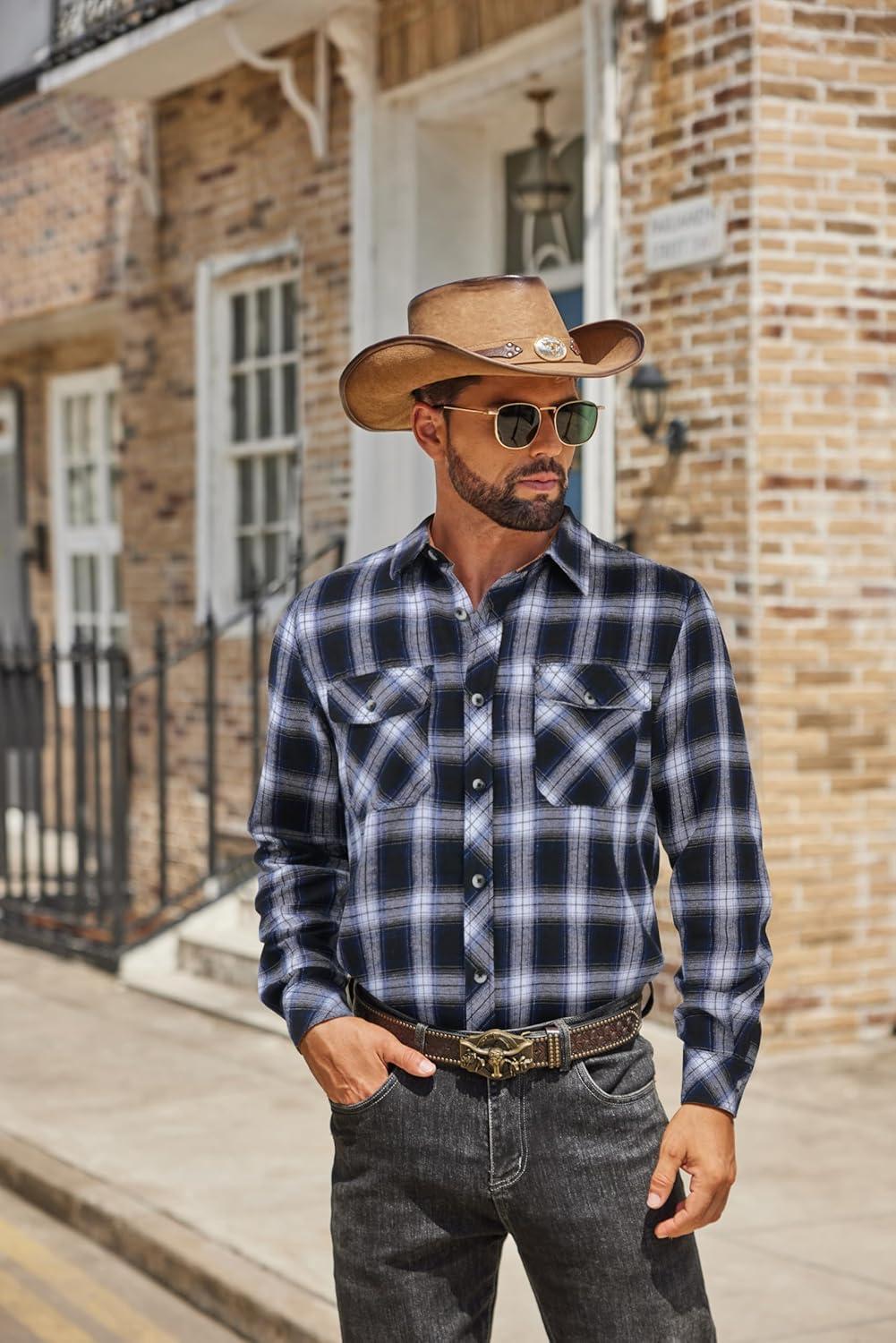 COOFANDY Men’s Flannel Plaid Shirts Long Sleeve Casual Button Down Shirt with Pockets(Blue)