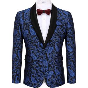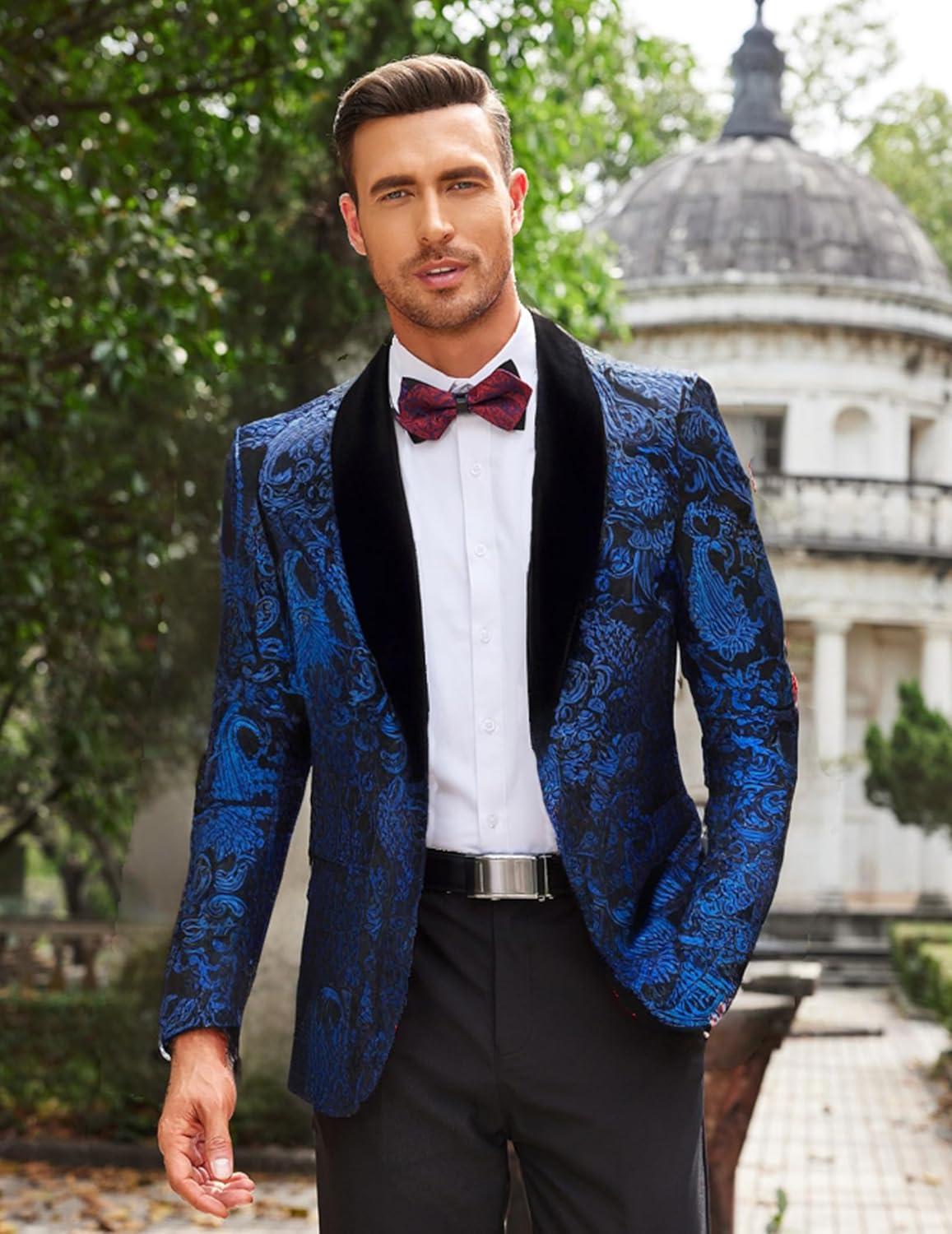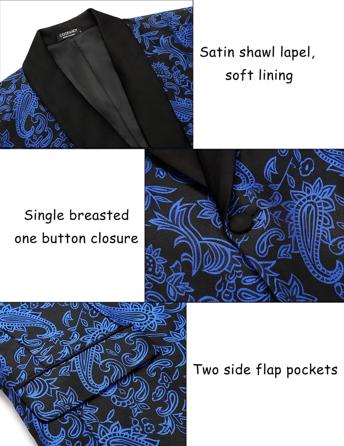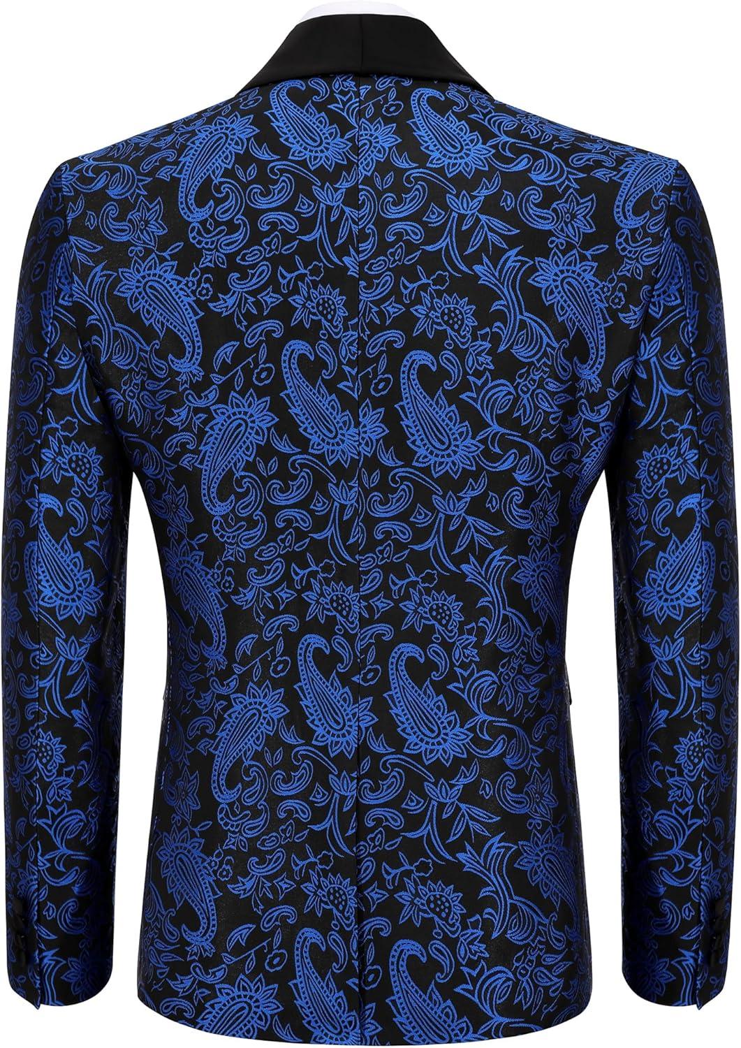 COOFANDY Men’s Floral Tuxedo Jacket Paisley Shawl Lapel Stylish Suit Blazer Jacket for Wedding, Dinner, Party, Prom(Black&blue)