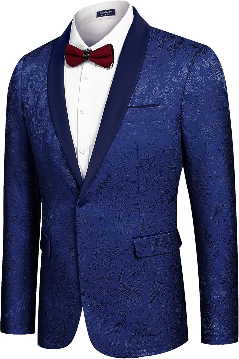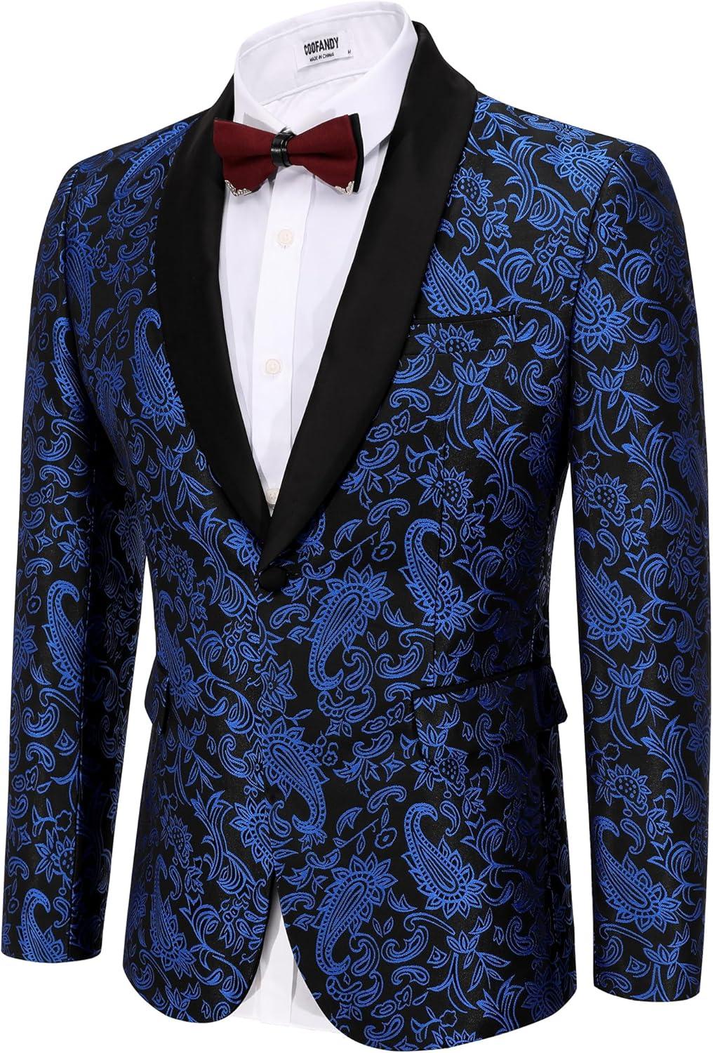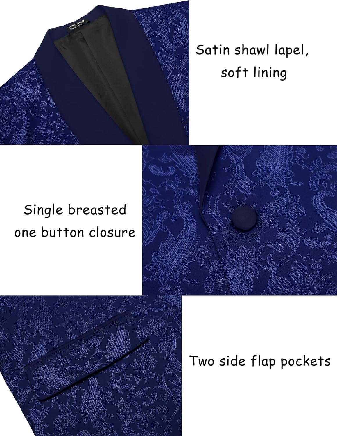 COOFANDY Men’s Floral Tuxedo Jacket Paisley Shawl Lapel Stylish Suit Blazer Jacket for Wedding, Dinner, Party, Prom(Nave Blue)