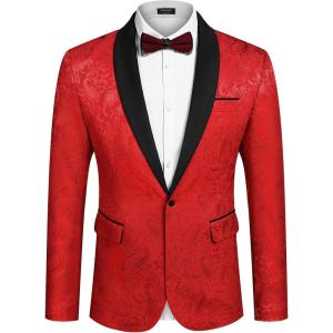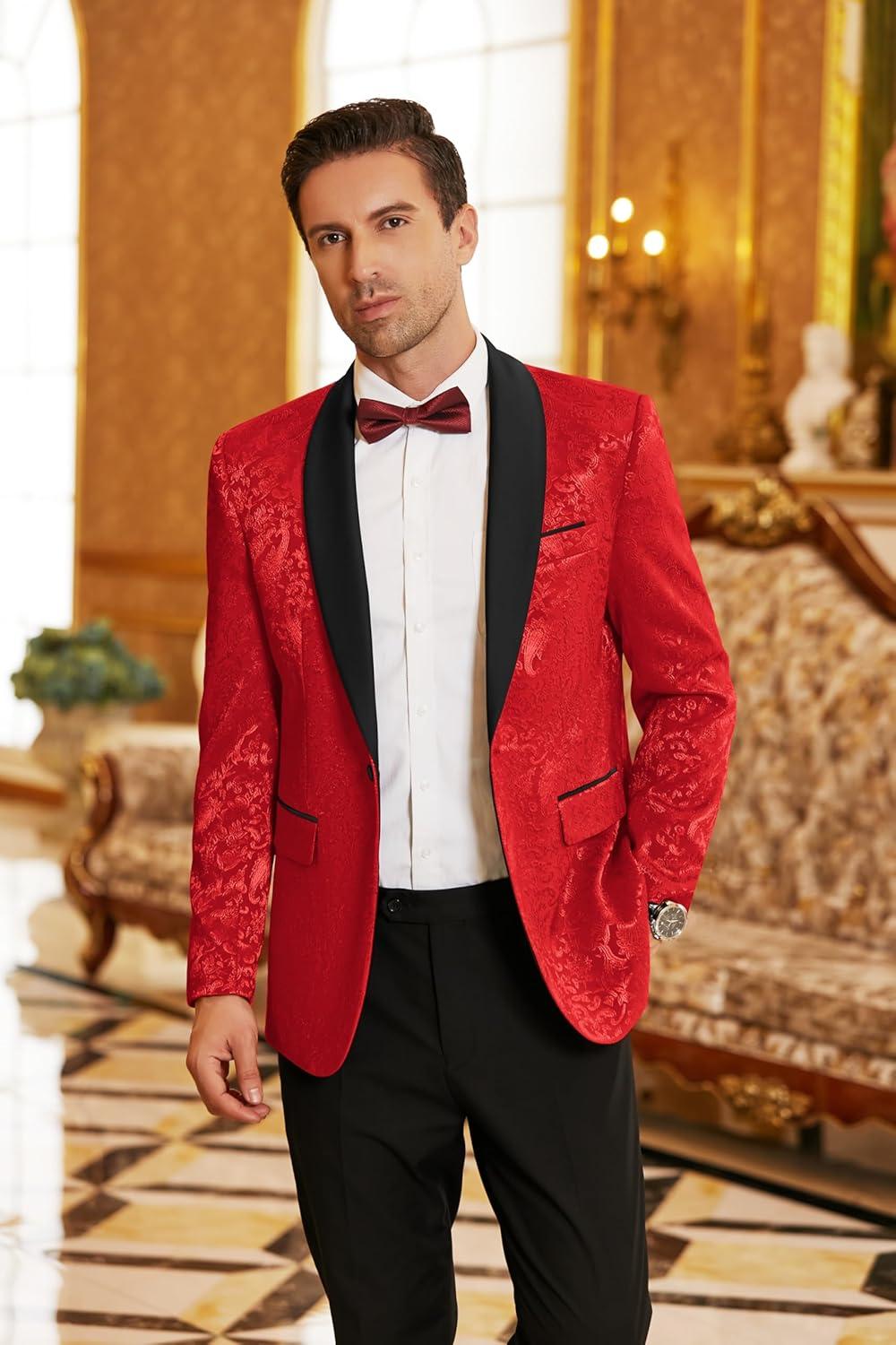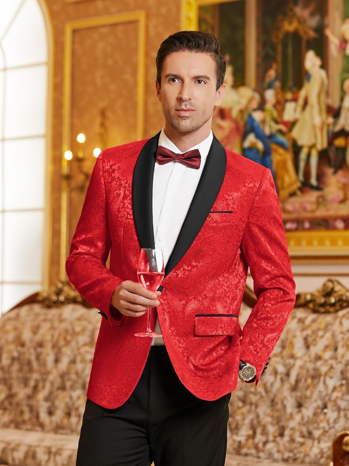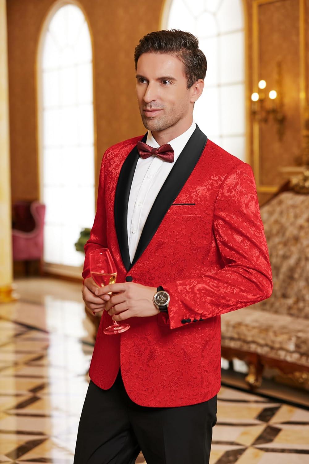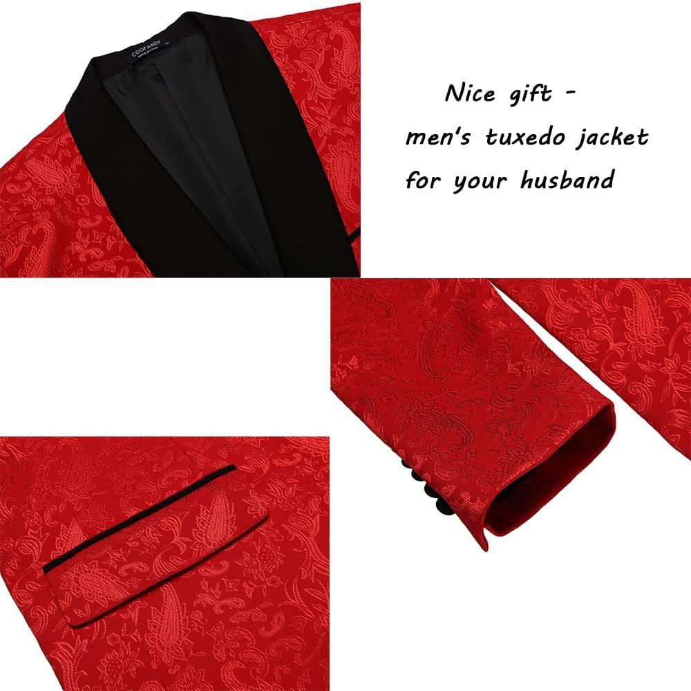 COOFANDY Men’s Floral Tuxedo Jacket Paisley Shawl Lapel Stylish Suit Blazer Jacket for Wedding, Dinner, Party, Prom(Red)