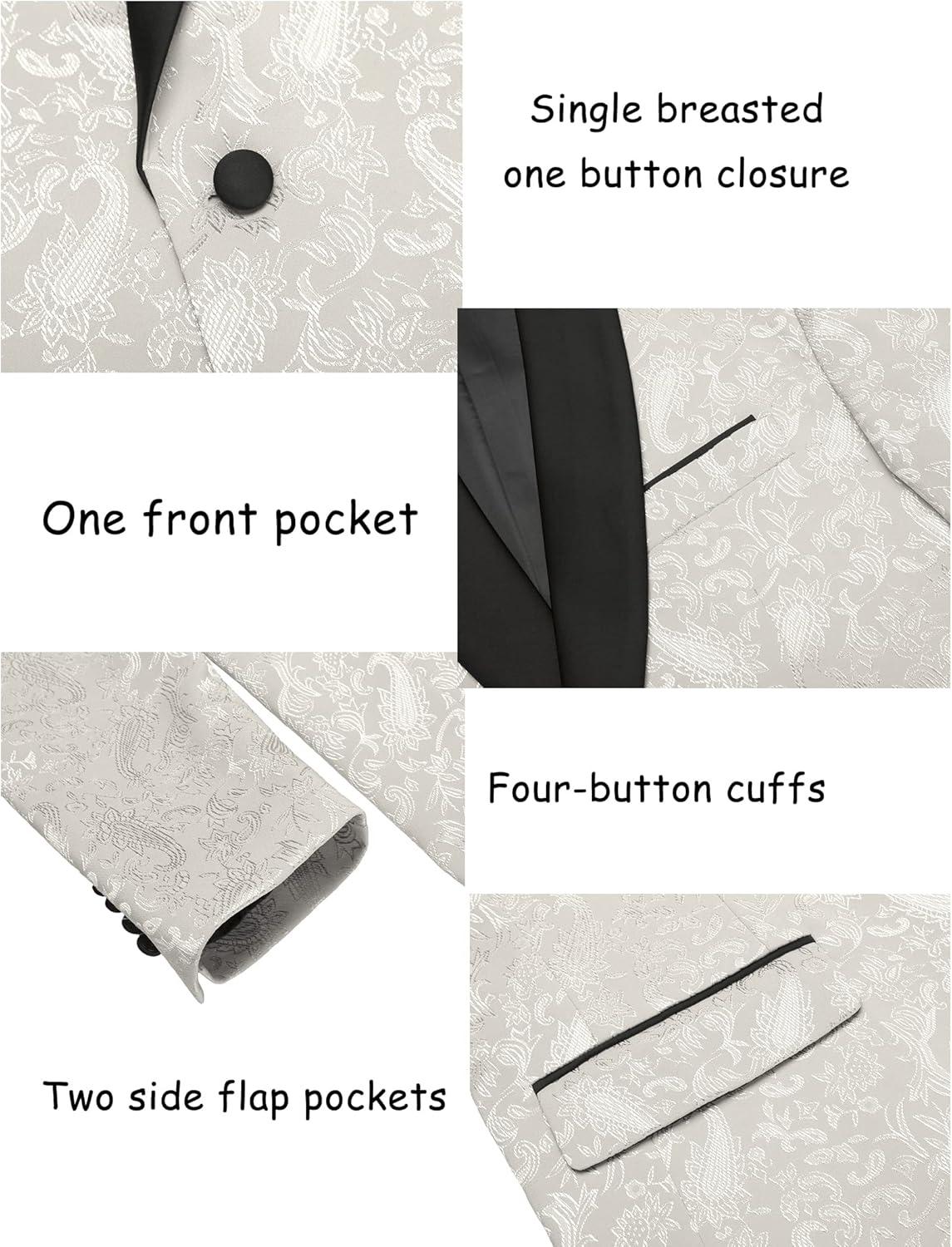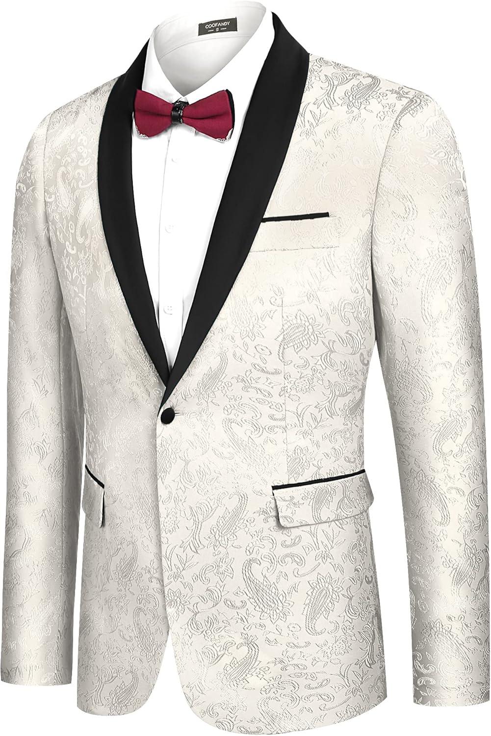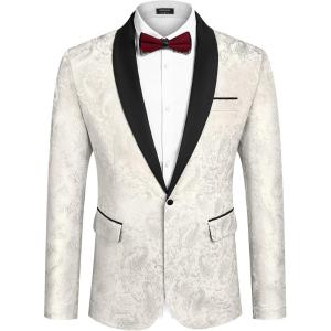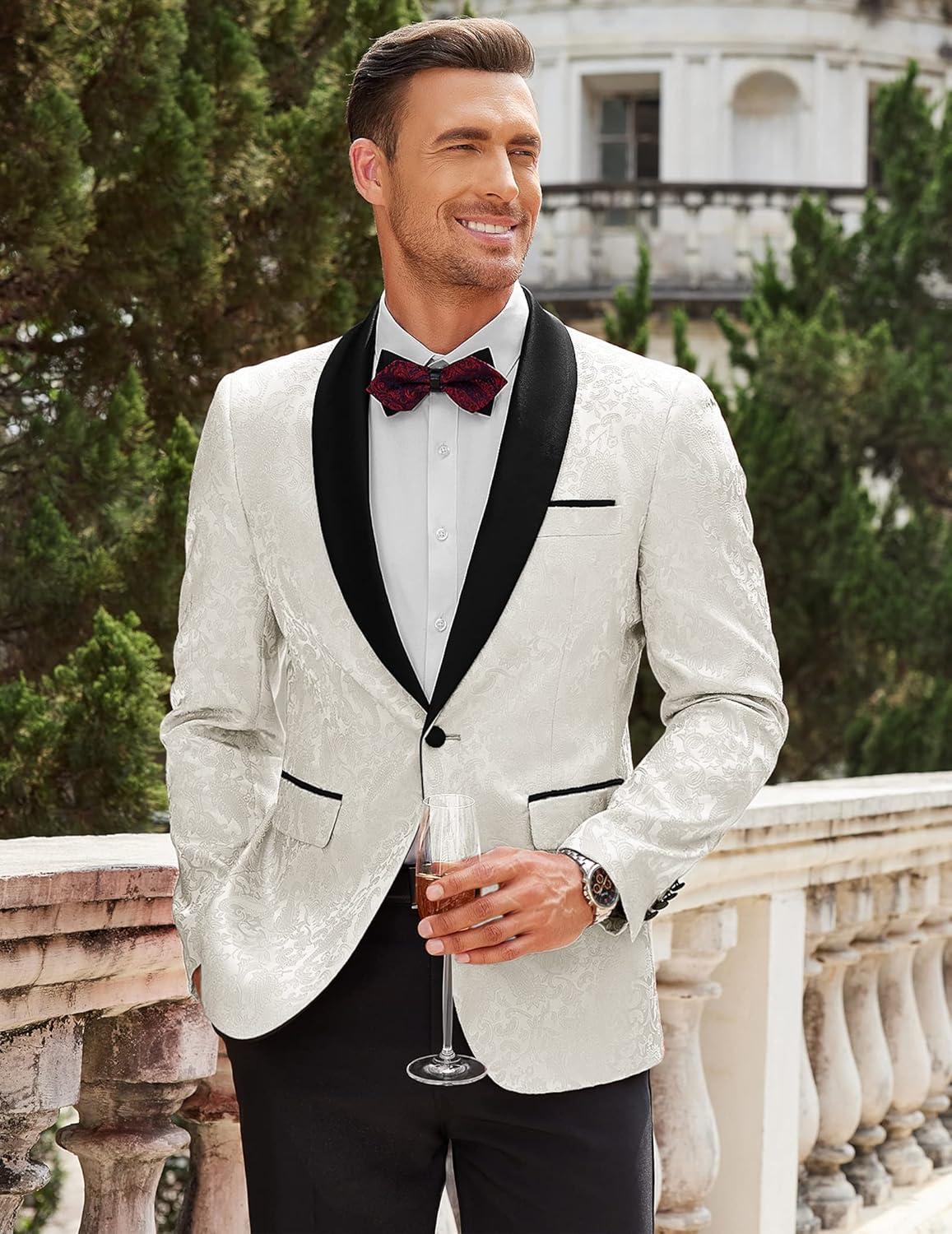 COOFANDY Men’s Floral Tuxedo Jacket Paisley Shawl Lapel Stylish Suit Blazer Jacket for Wedding, Dinner, Party, Prom(White)