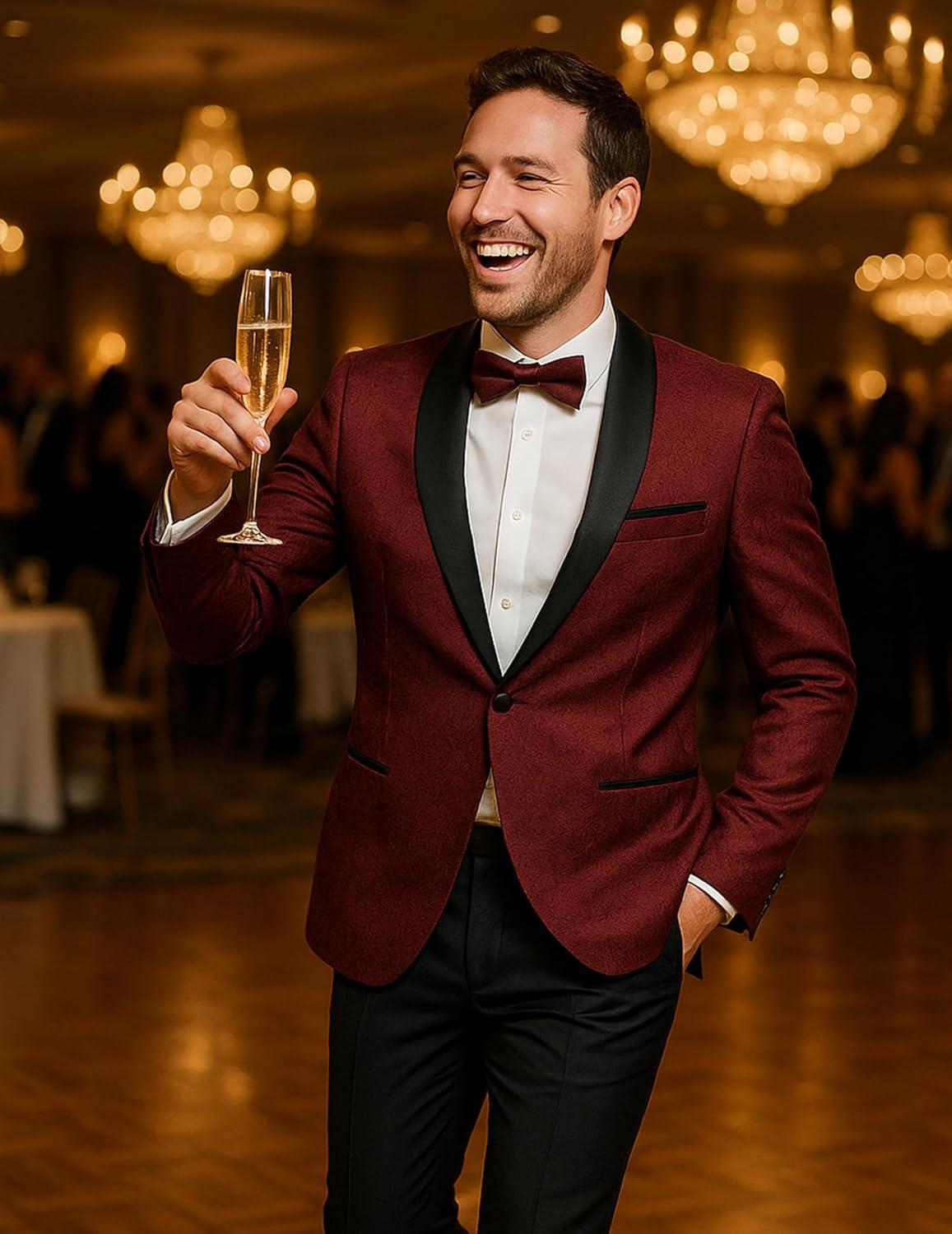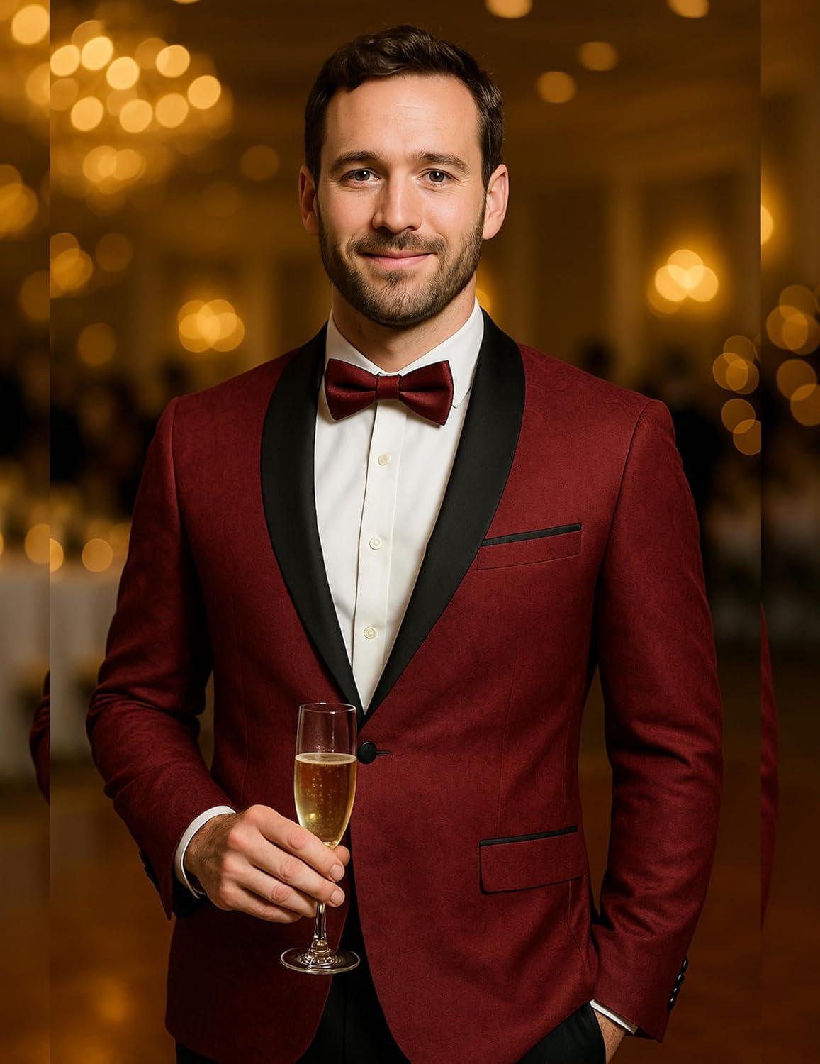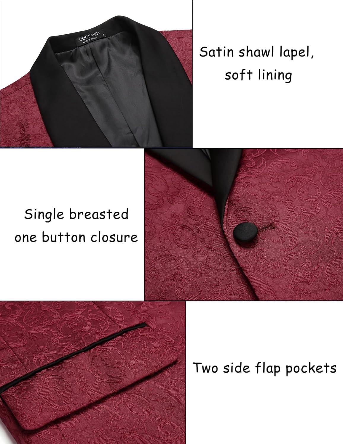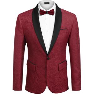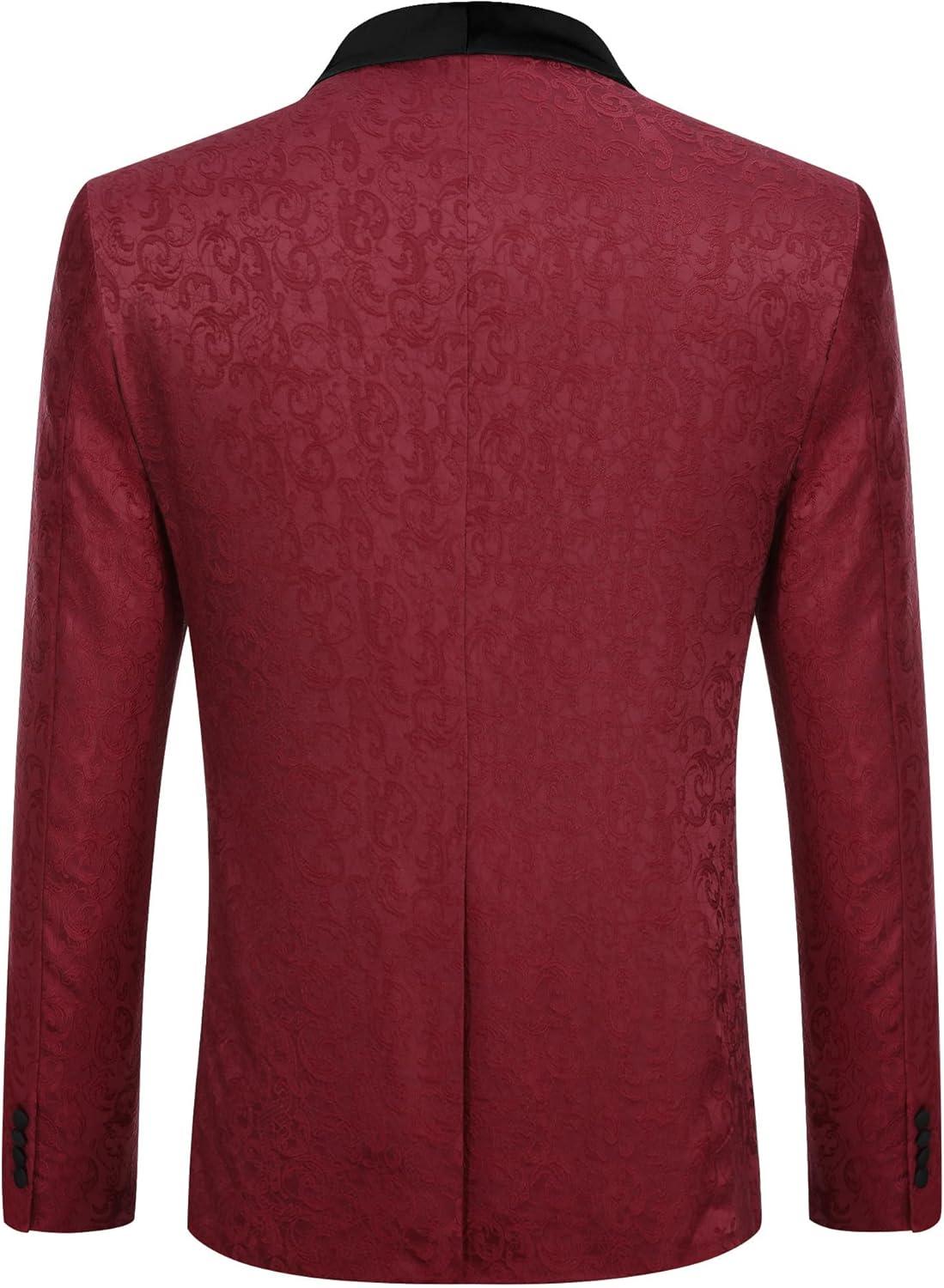COOFANDY Men’s Floral Tuxedo Jacket Paisley Shawl Lapel Stylish Suit Blazer Jacket for Wedding, Dinner, Party, Prom(Wine Red)