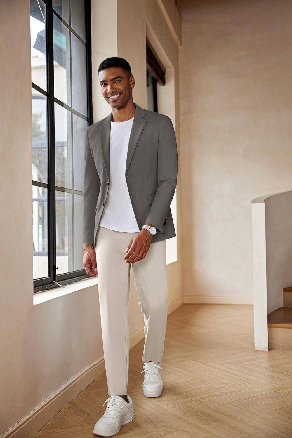 COOFANDY Men’s Casual Blazer Lightweight Slim Fit Suit Jacket Two Button Cotton Sport Coats(Light Grey)