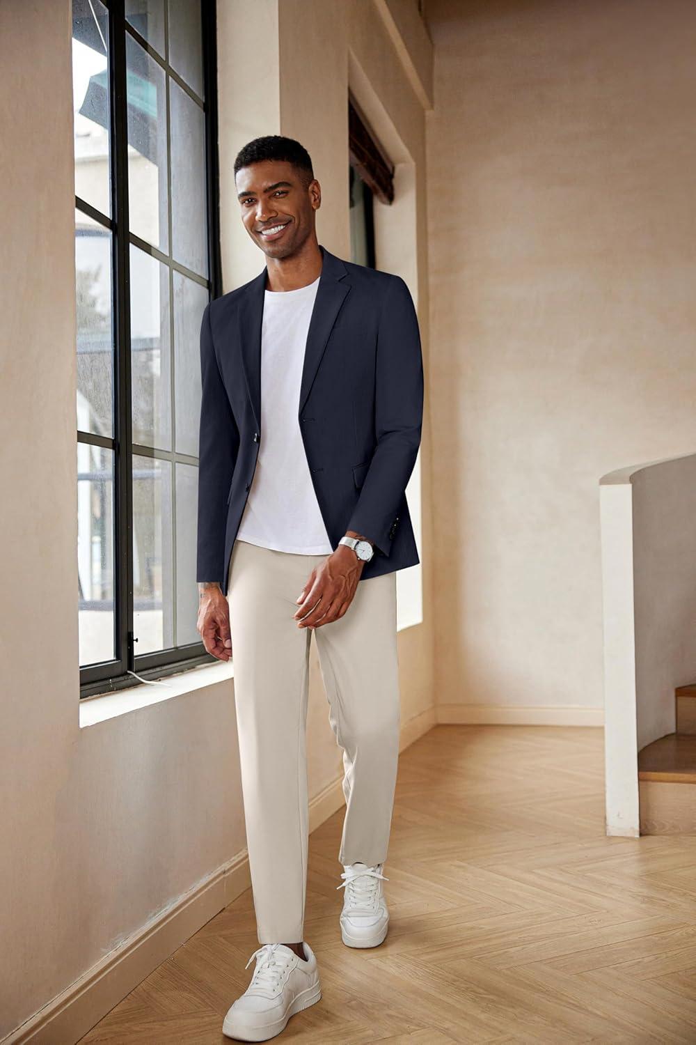 COOFANDY Men’s Casual Blazer Lightweight Slim Fit Suit Jacket Two Button Cotton Sport Coats(Navy Blue)