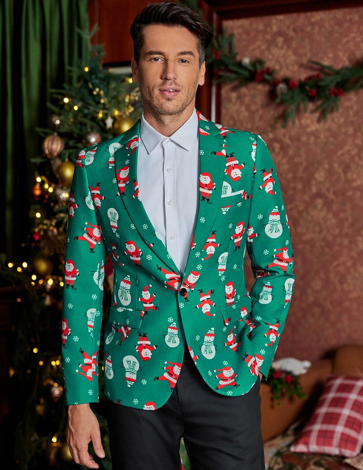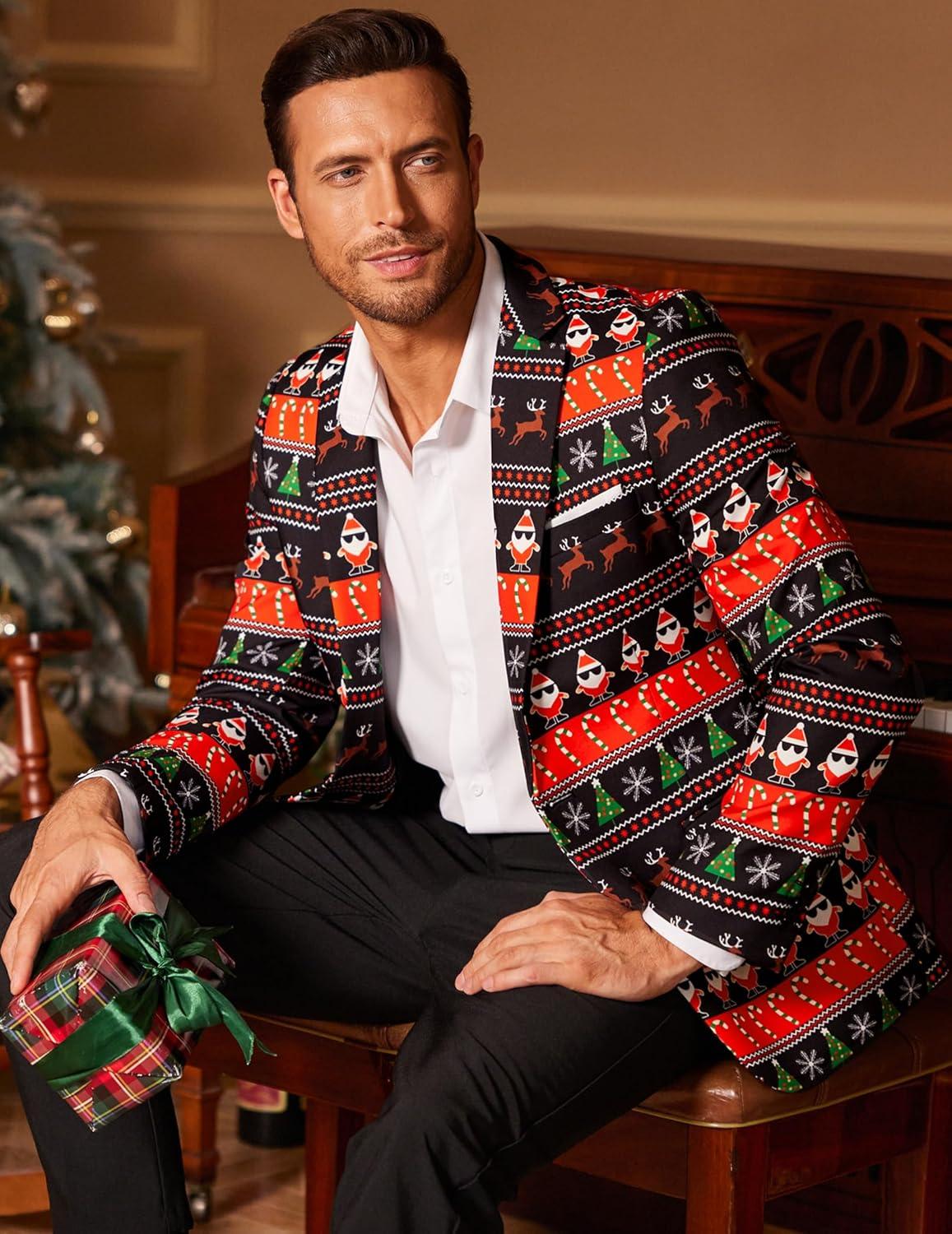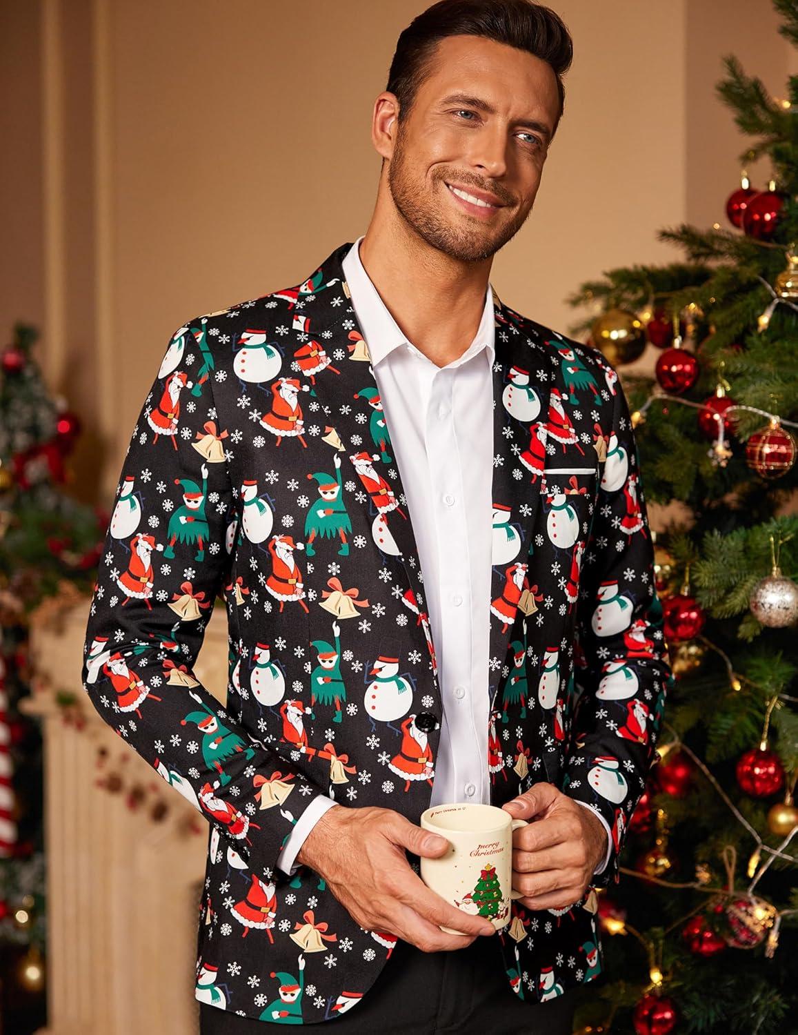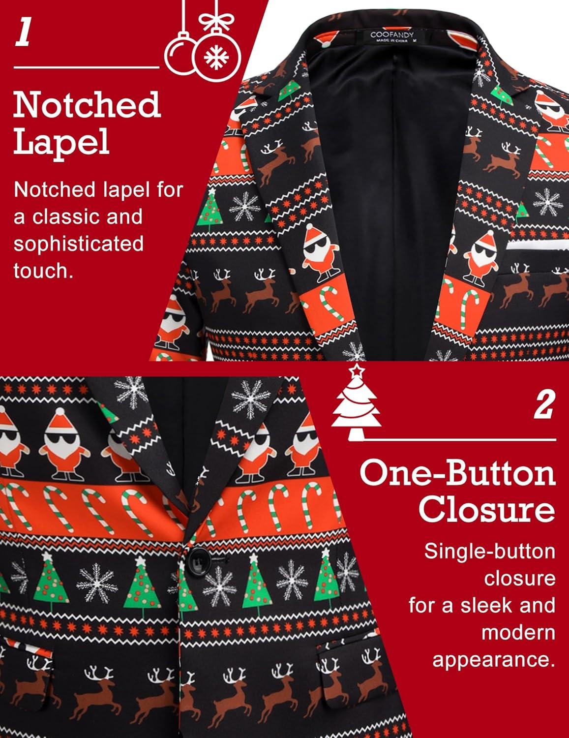 COOFANDY Men’s Christmas Blazer Jacket One Button Halloween Sport Coat Christmas Party Holiday Jacket(Christmas Blazer – Xmas Party)