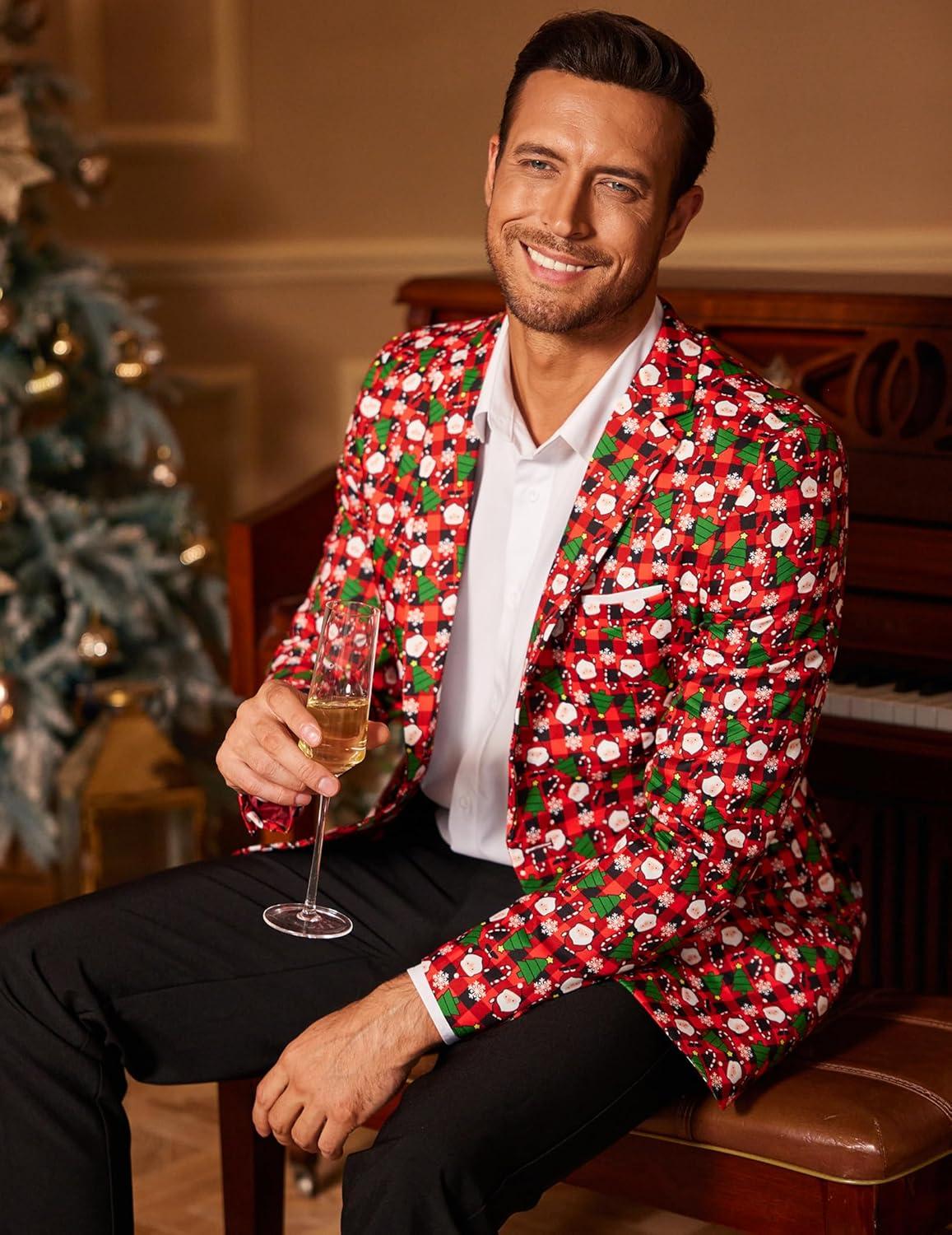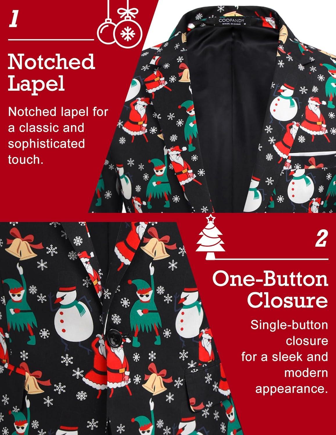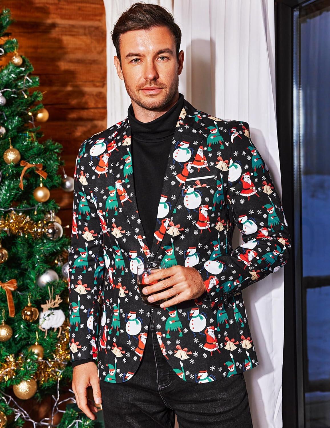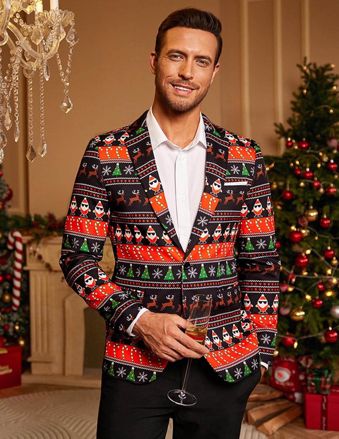 COOFANDY Men’s Christmas Blazer Jacket One Button Halloween Sport Coat Christmas Party Holiday Jacket(Christmas Blazer – Xmas Party)