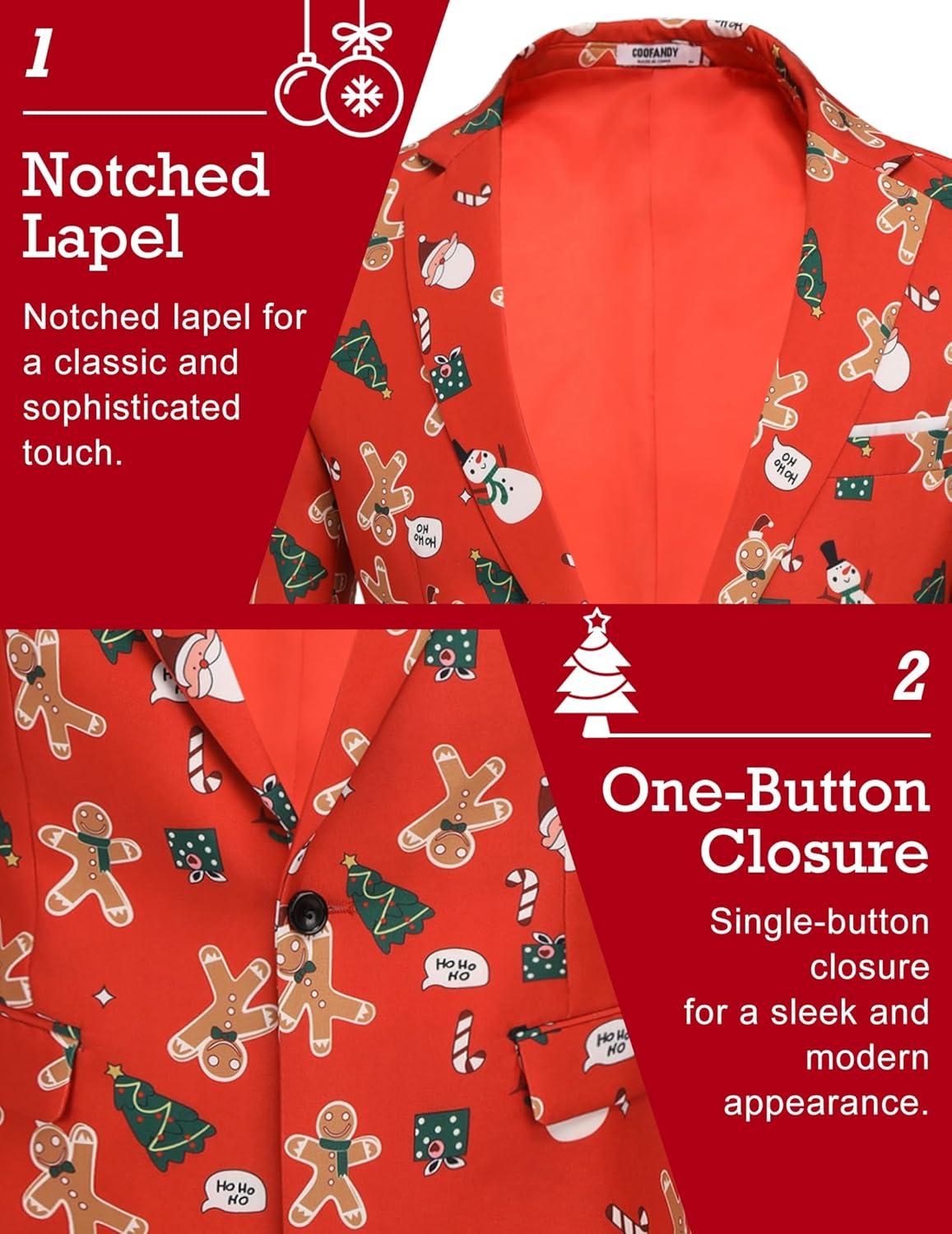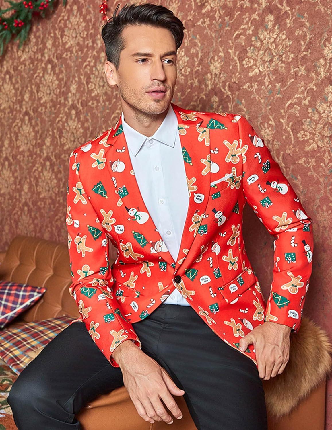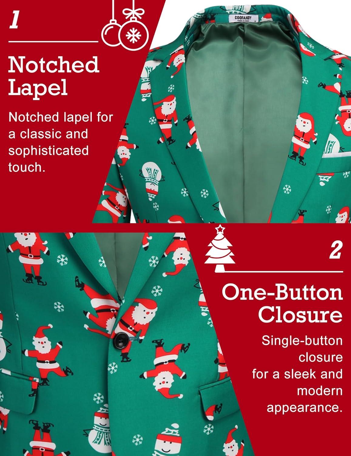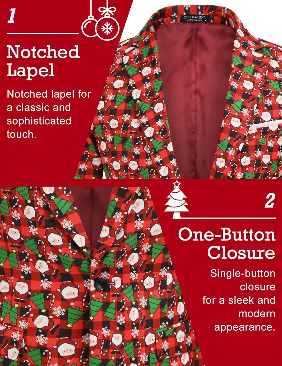 COOFANDY Men’s Christmas Blazer Jacket One Button Halloween Sport Coat Christmas Party Holiday Jacket(Christmas Blazer – Xmas Party)