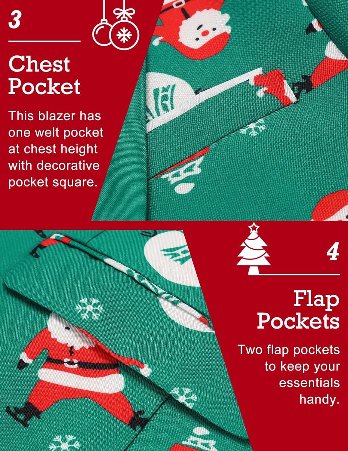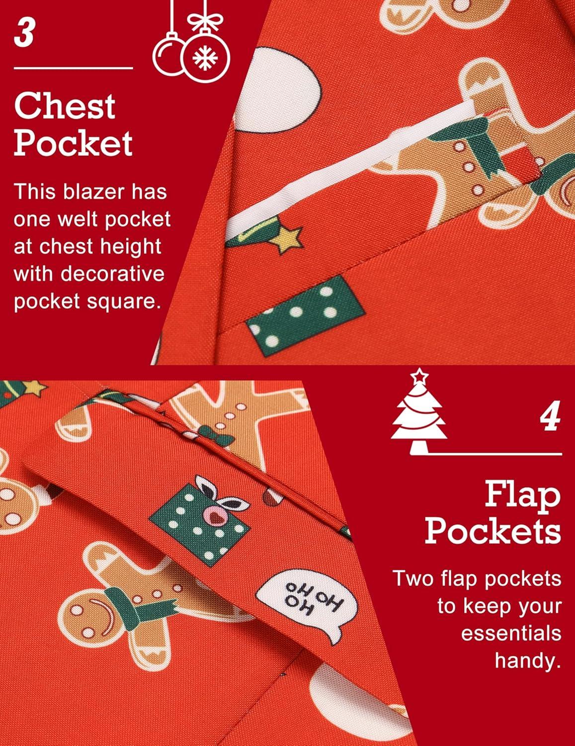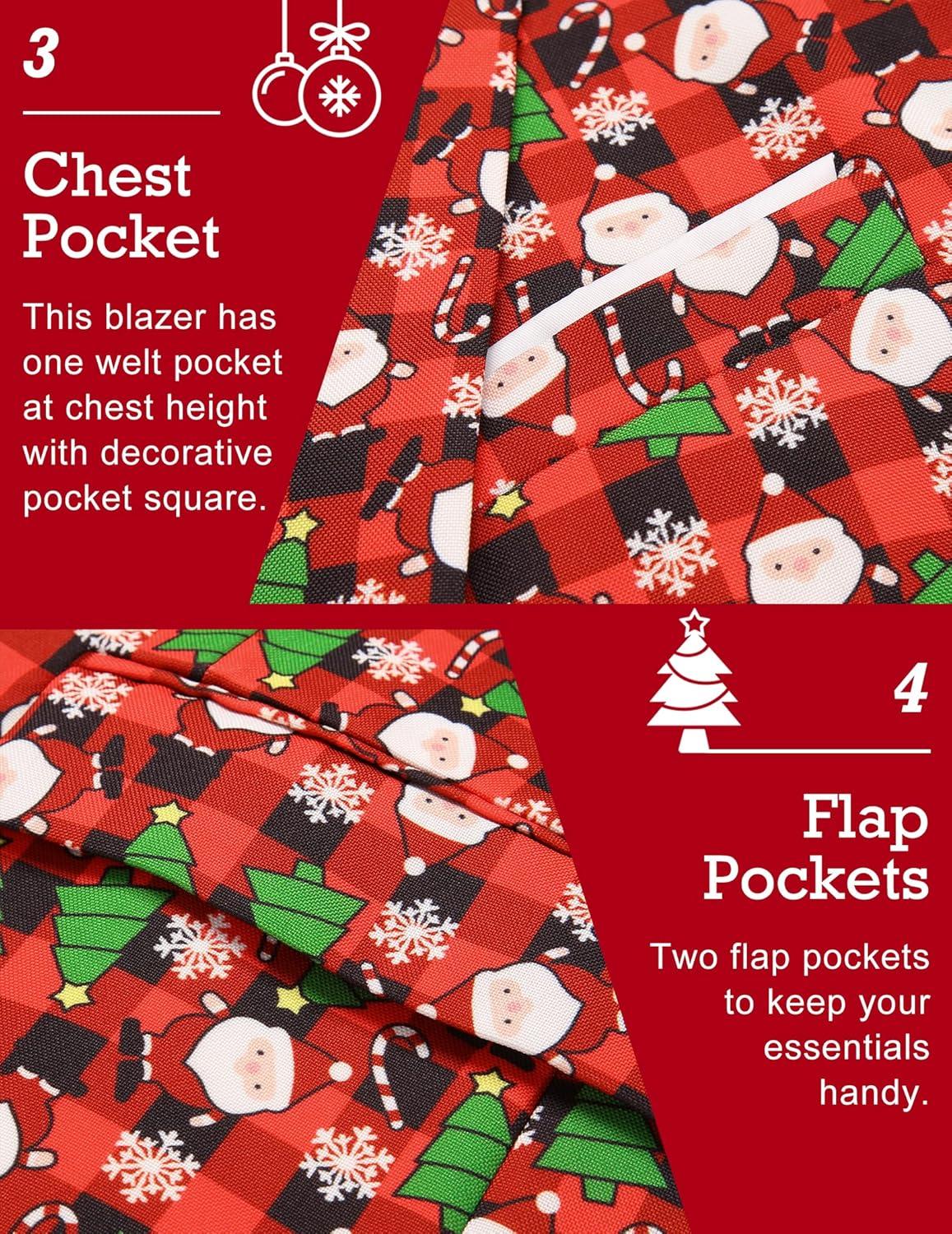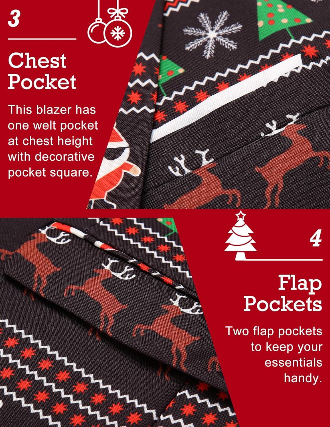 COOFANDY Men’s Christmas Blazer Jacket One Button Halloween Sport Coat Christmas Party Holiday Jacket(Christmas Blazer – Xmas Party)
