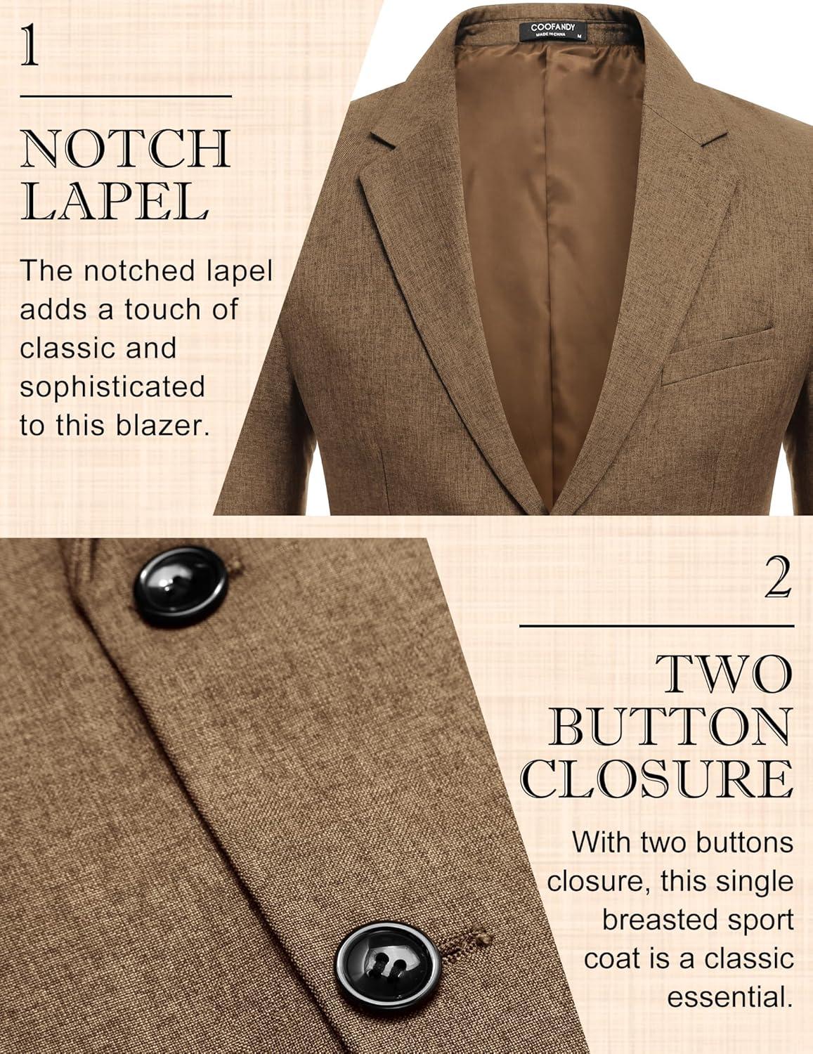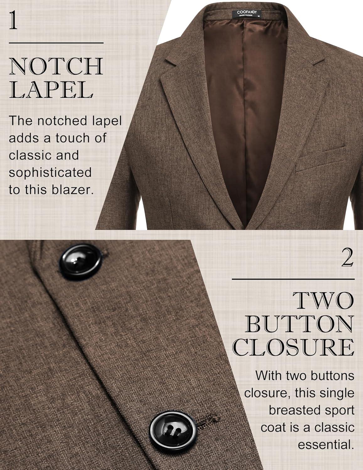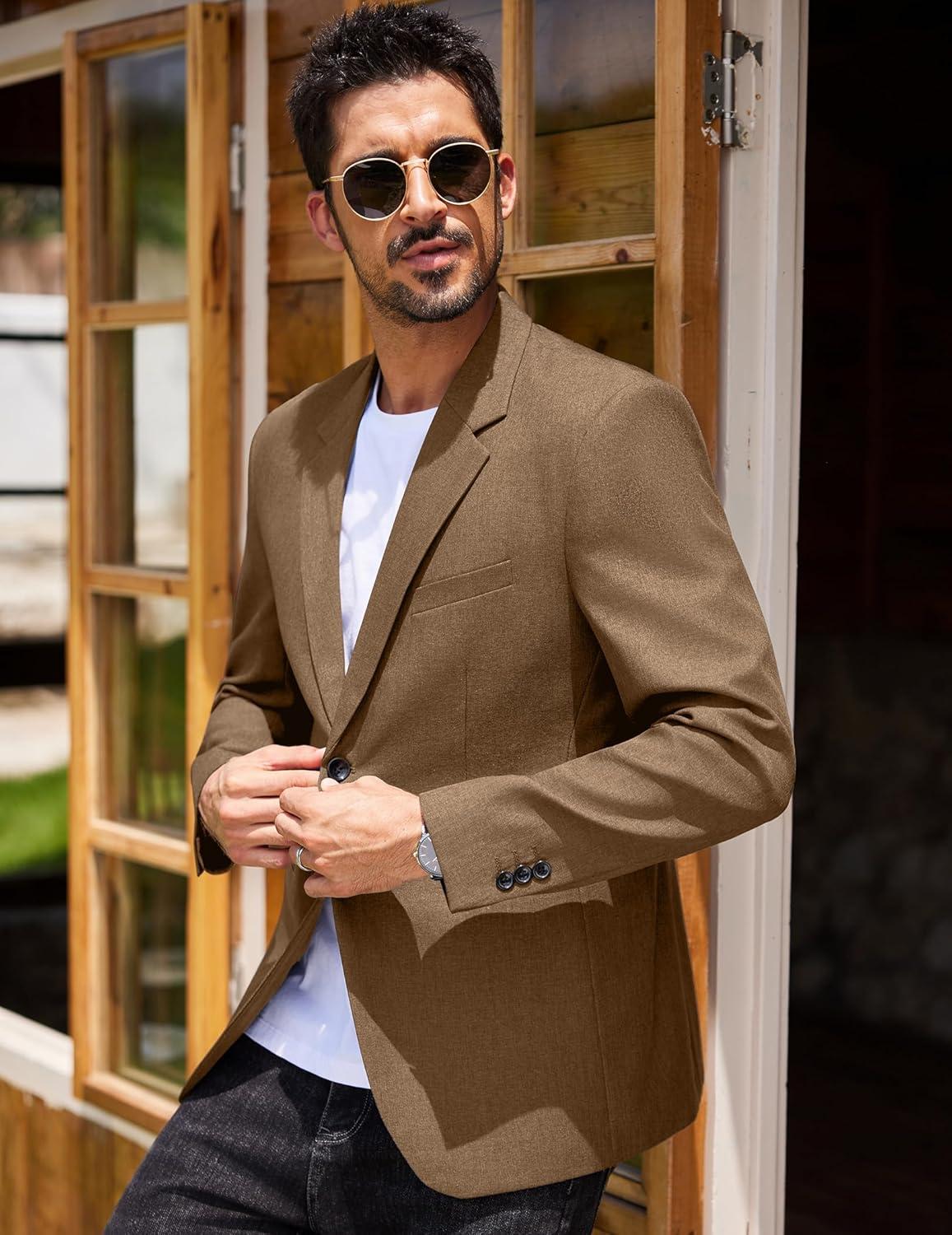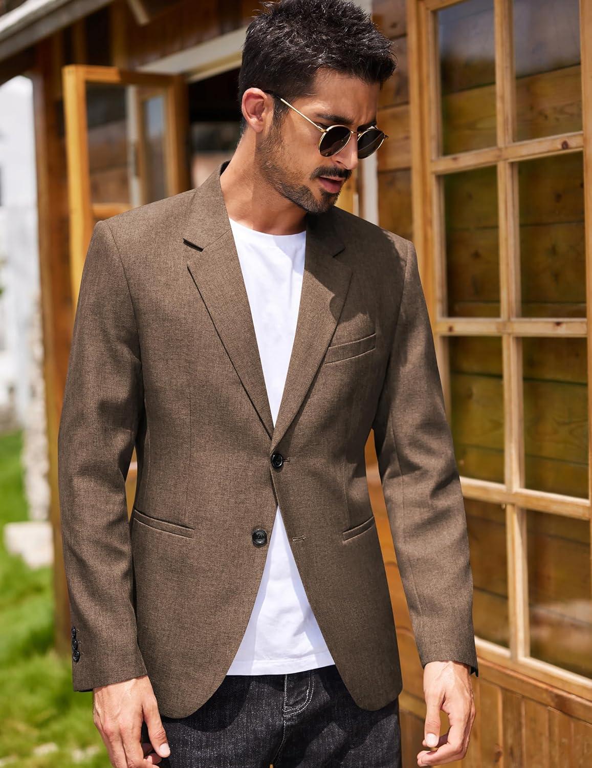 COOFANDY Men’s Blazer Casual Two Buttons Sport Coats Lightweight Suit Jacket(Brown)