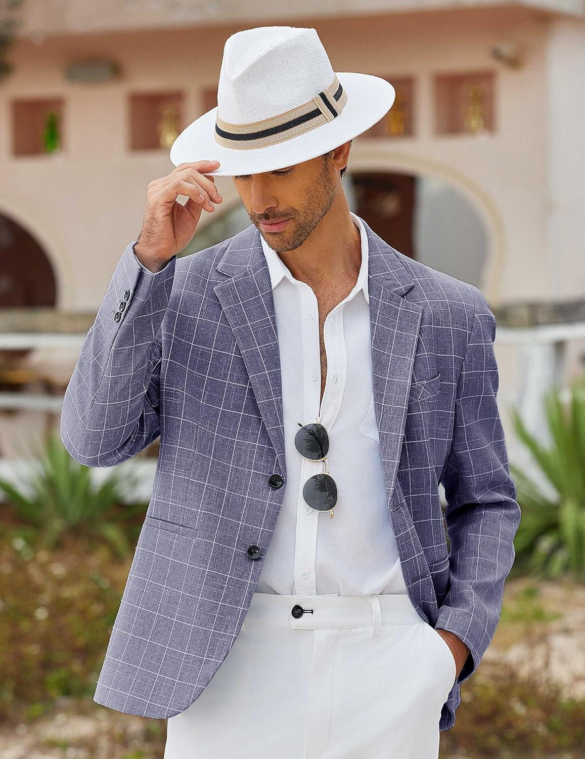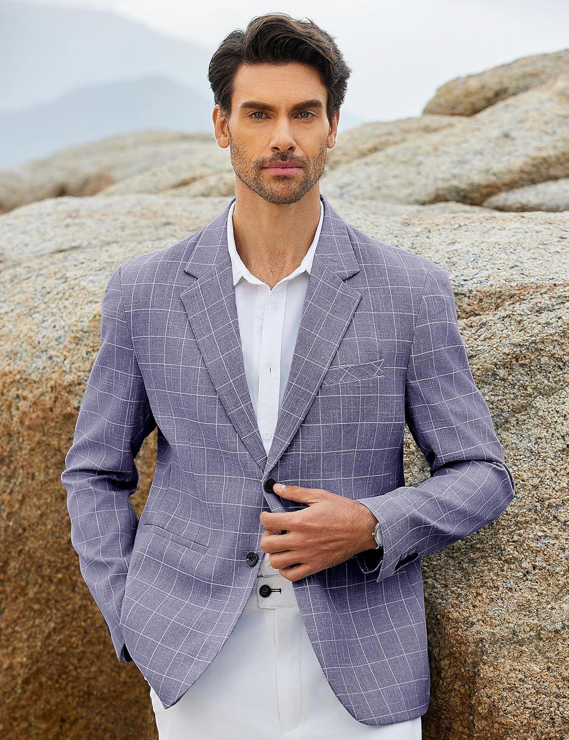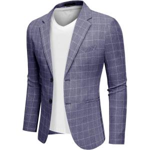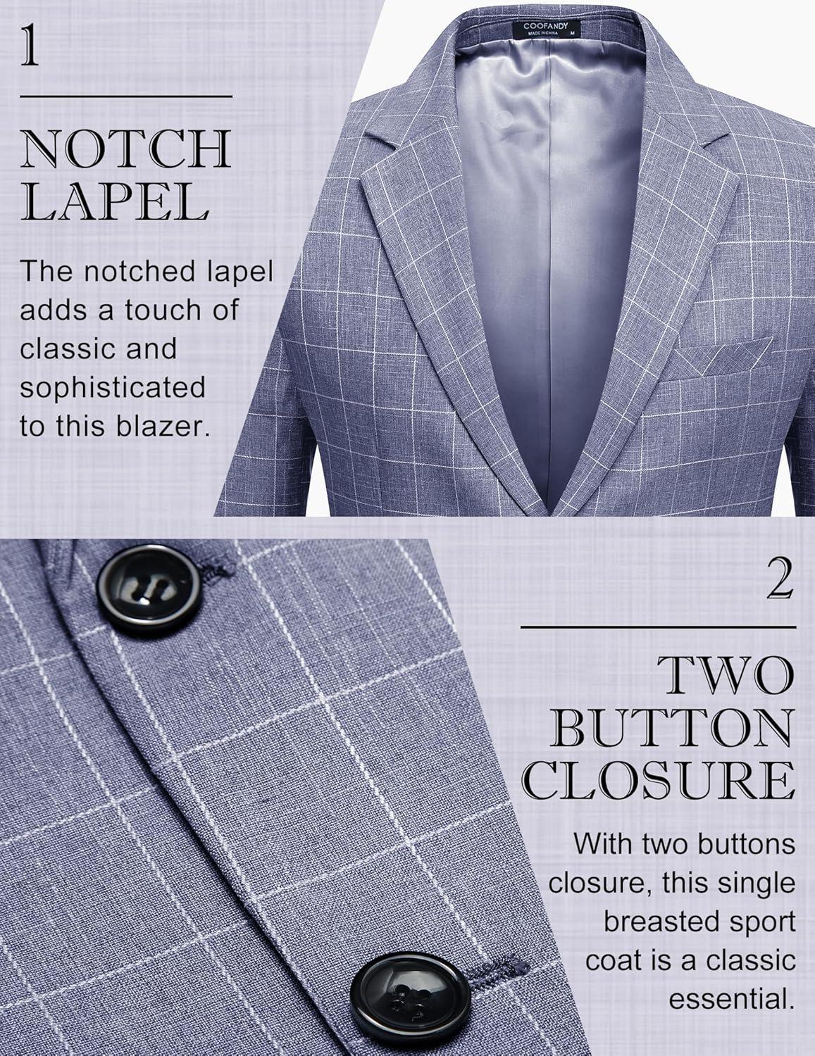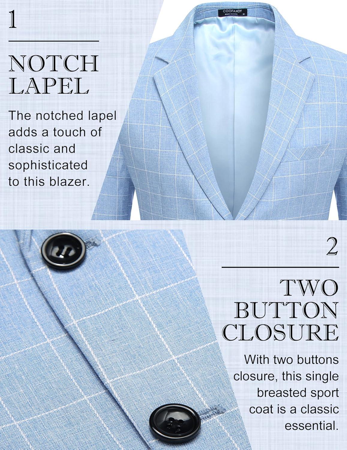 COOFANDY Men’s Blazer Casual Two Buttons Sport Coats Lightweight Suit Jacket(Checkered Blazer – Clear Blue)