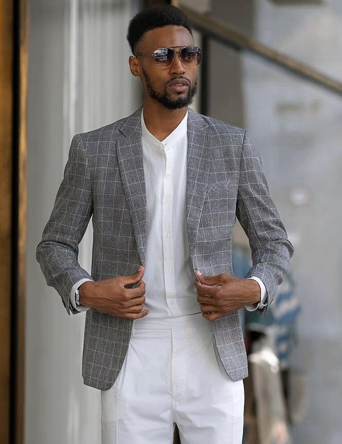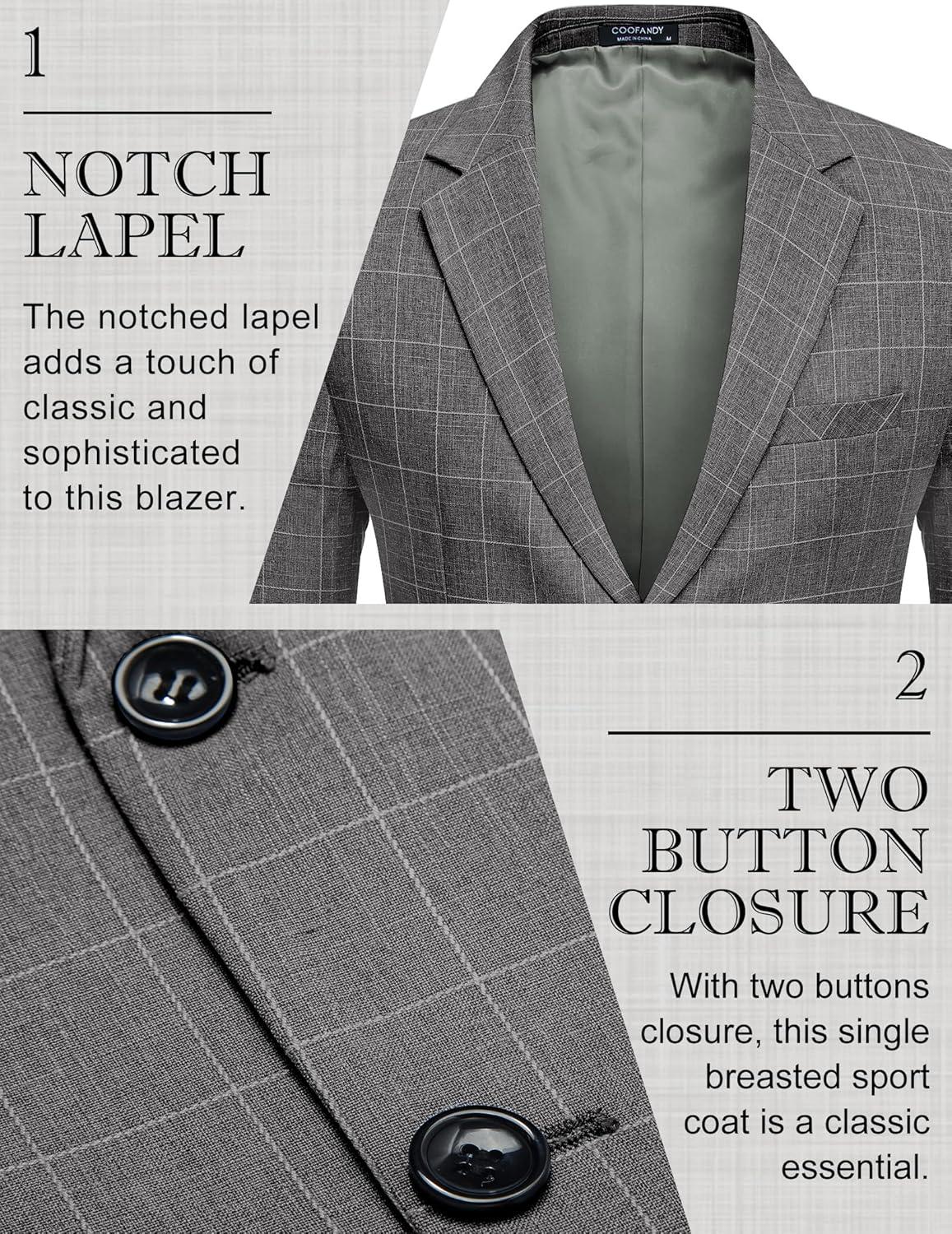COOFANDY Men’s Blazer Casual Two Buttons Sport Coats Lightweight Suit Jacket(Checkered Blazer – Gray)