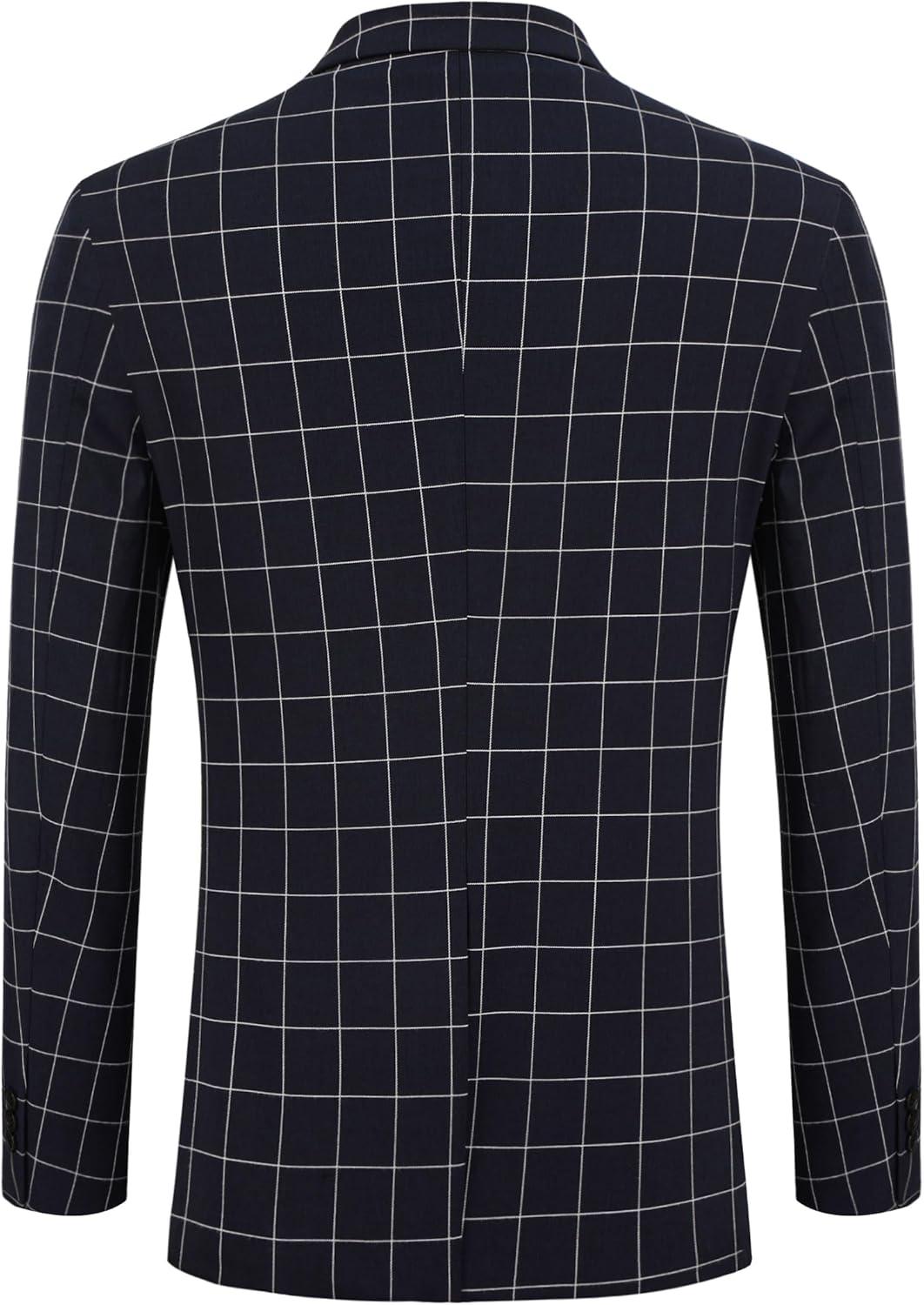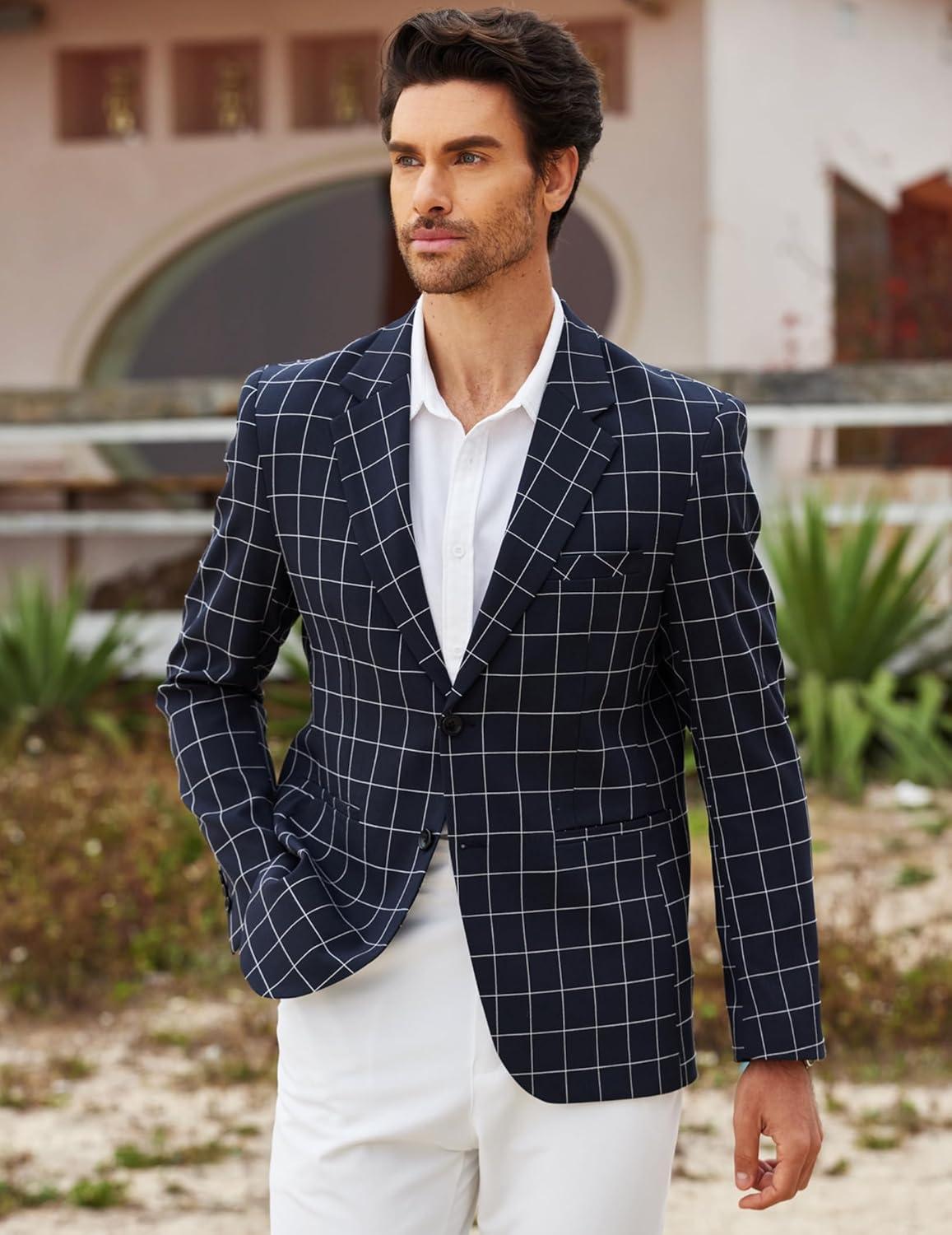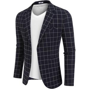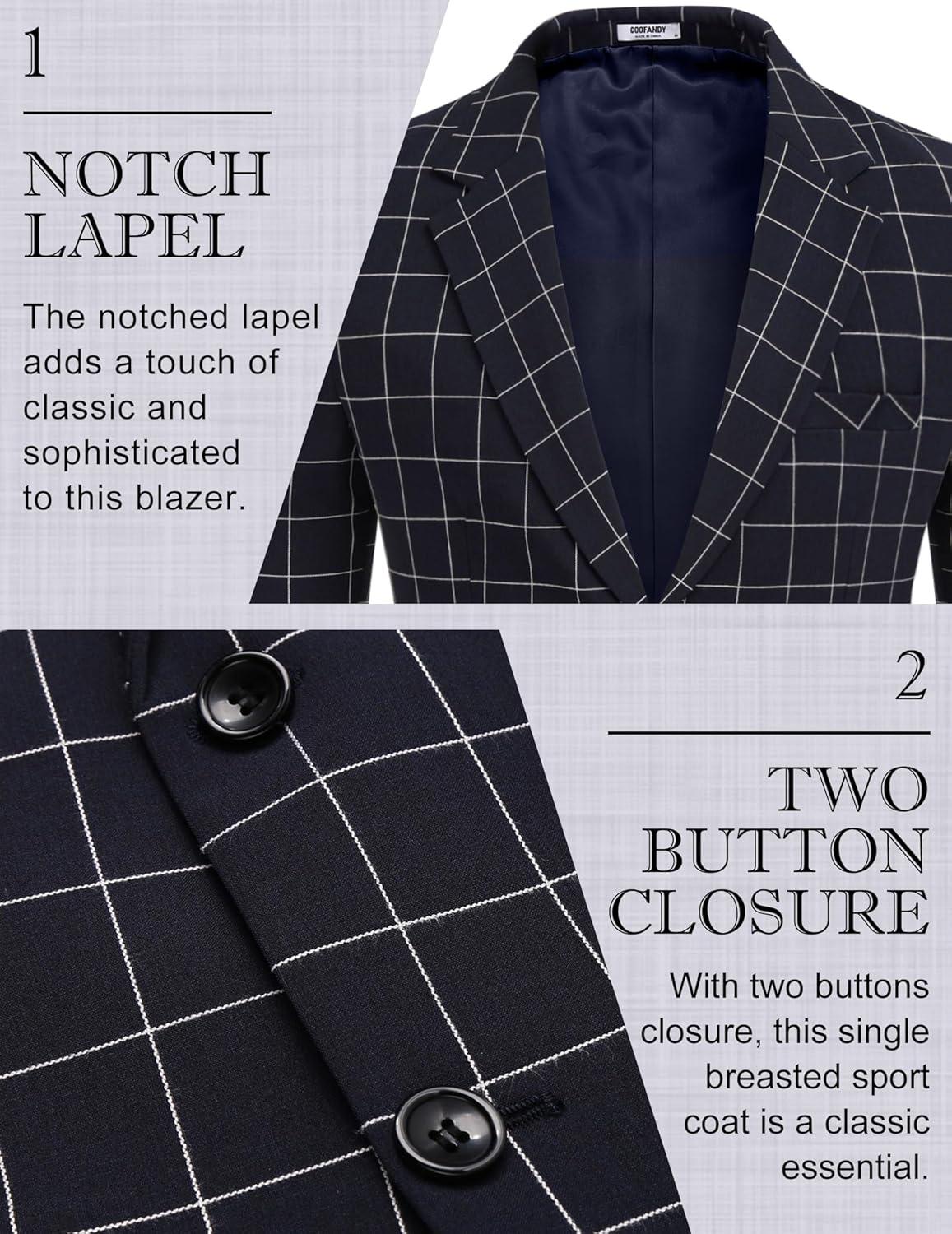 COOFANDY Men’s Blazer Casual Two Buttons Sport Coats Lightweight Suit Jacket(Checkered Blazer – Navy Blue)