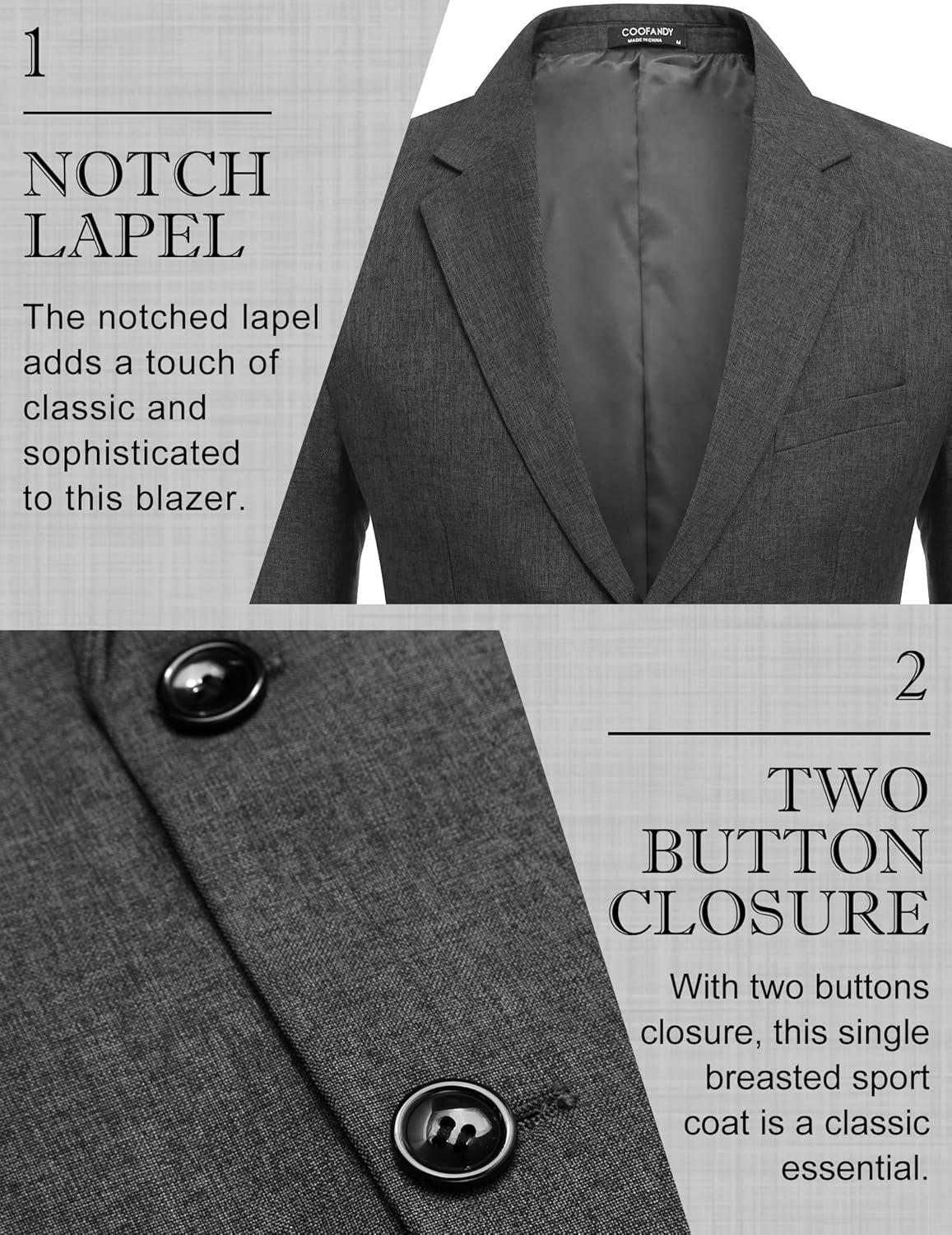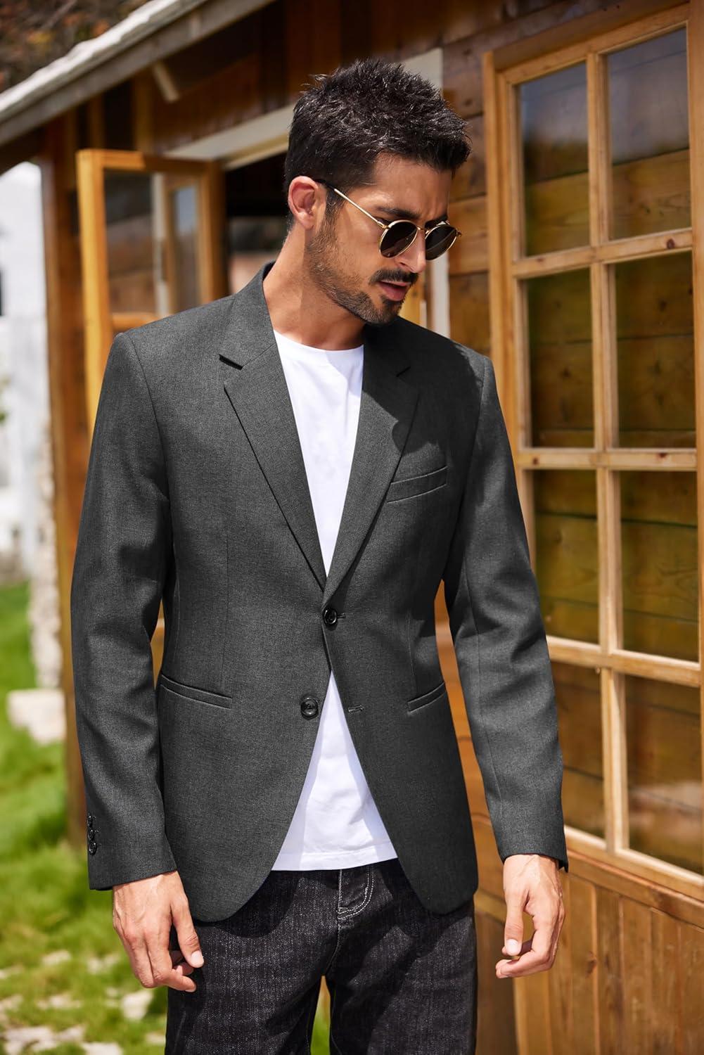 COOFANDY Men Casual Blazer Sport Coats Slim Fit Lightweight Business Two Button Suit Jackets(Dark Grey)