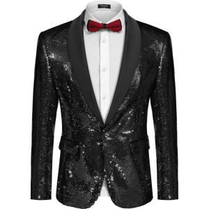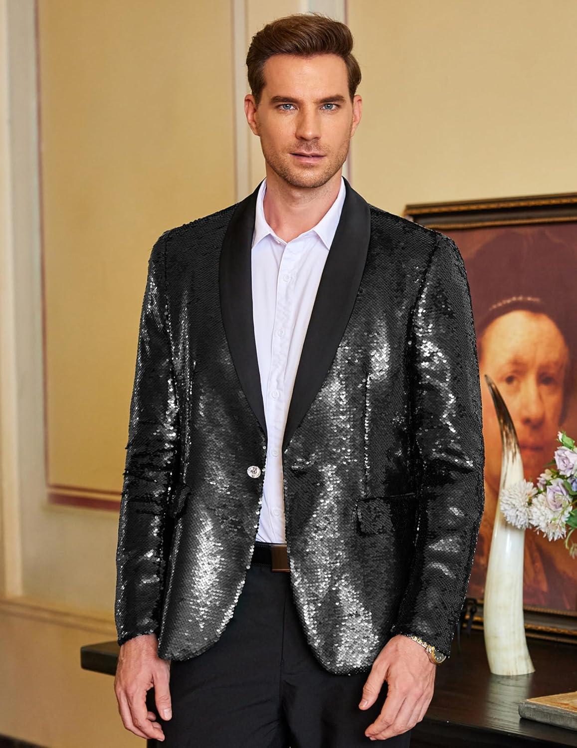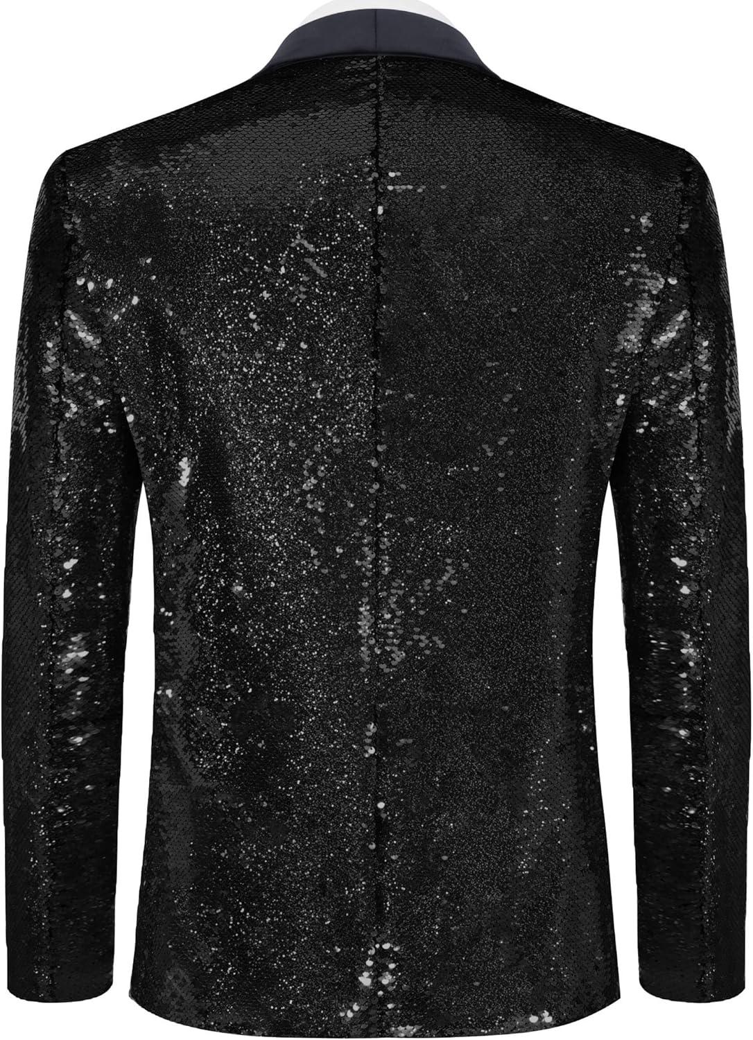 COOFANDY Mens Shiny Sequin Blazer Tuxedo Party Dinner Prom One Button Suit Jacket(Black)